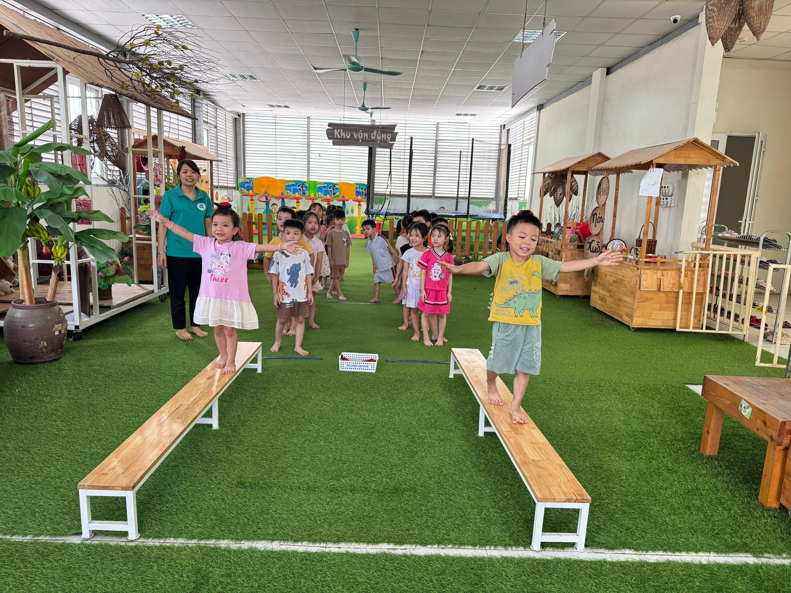 Không khí trên sân chơi luôn rộn ràng, không chỉ bởi những bài học mà còn bởi sự gắn kết. Sau mỗi trò chơi, dù thắng hay thua, các con đều dành cho nhau những cái ôm, những lời động viên. Cô giáo không chỉ là người hướng dẫn mà còn là người bạn đồng hành, cùng cười, cùng chơi với các con.
