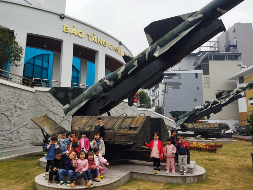 Các con được xem sa bàn và những hình ảnh hào hùng của quân dân Hà Nội trong chiến dịch 12 ngày đêm chống lại máy bay địch.
