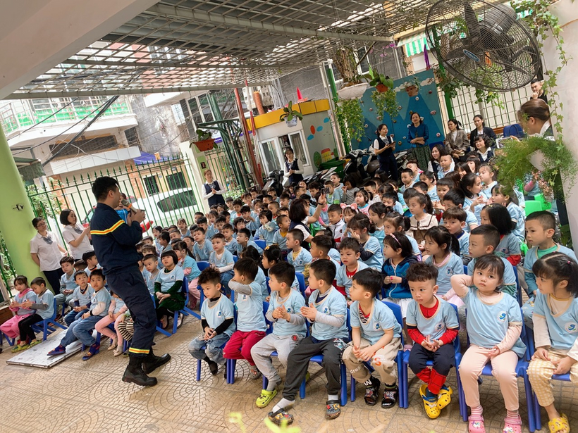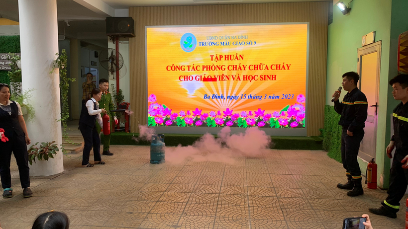 Nhằm thực hiện tốt công tác phòng cháy, chữa cháy trong trường học và nâng cao nhận thức, vai trò, trách nhiệm về công tác PCCC cho mỗi cán bộ, giáo viên, nhân viên, sáng ngày 15/3/2022, Trung tâm bồi dưỡng kỹ năng phòng vệ thông minh phối hợp với Đội PCCC Công an quận Ba Đình và trường Mẫu giáo Số 9 tổ chức tập huấn công tác PCCC cho giáo viên, nhân viên và học sinh trong nhà trường.