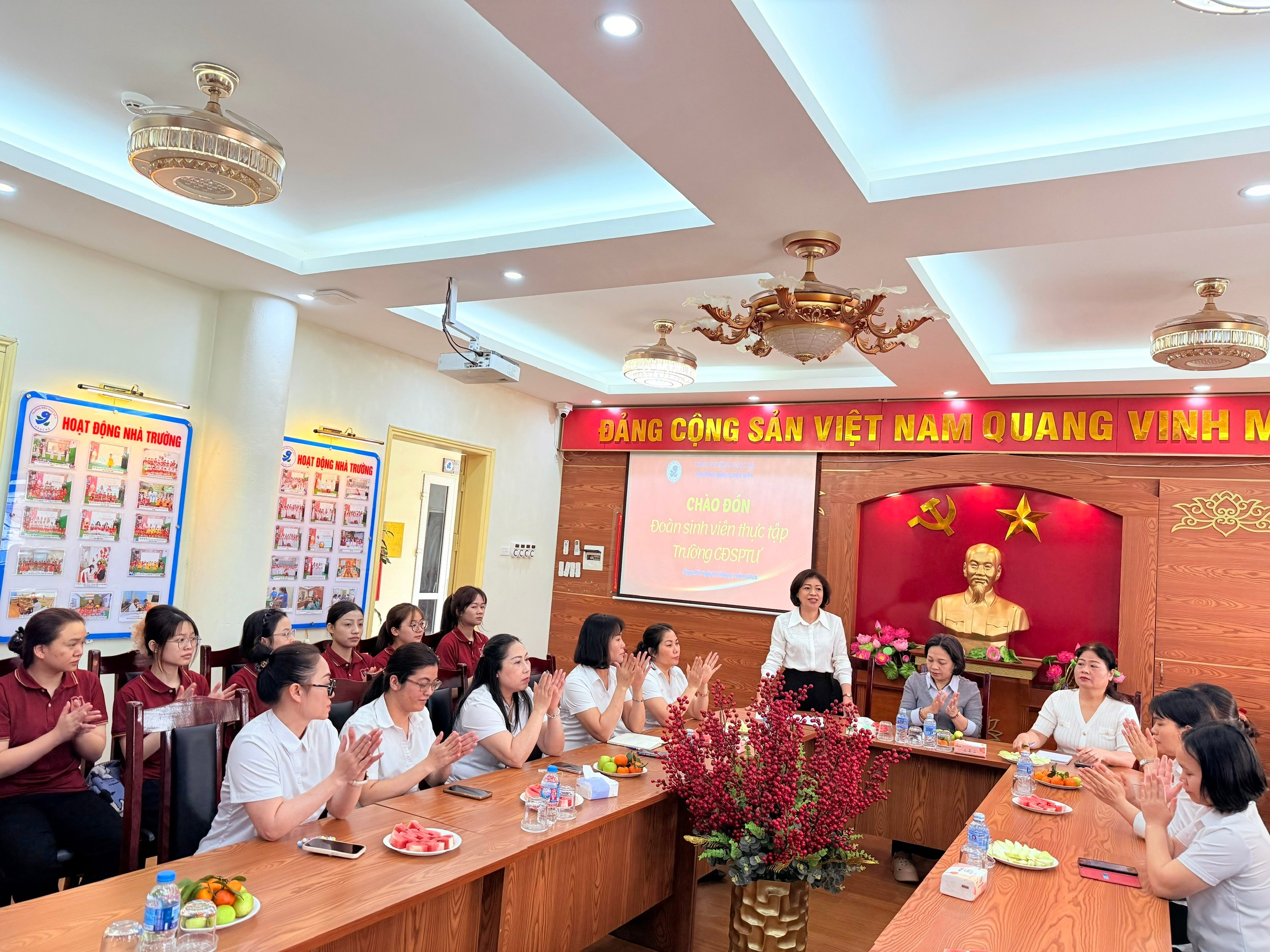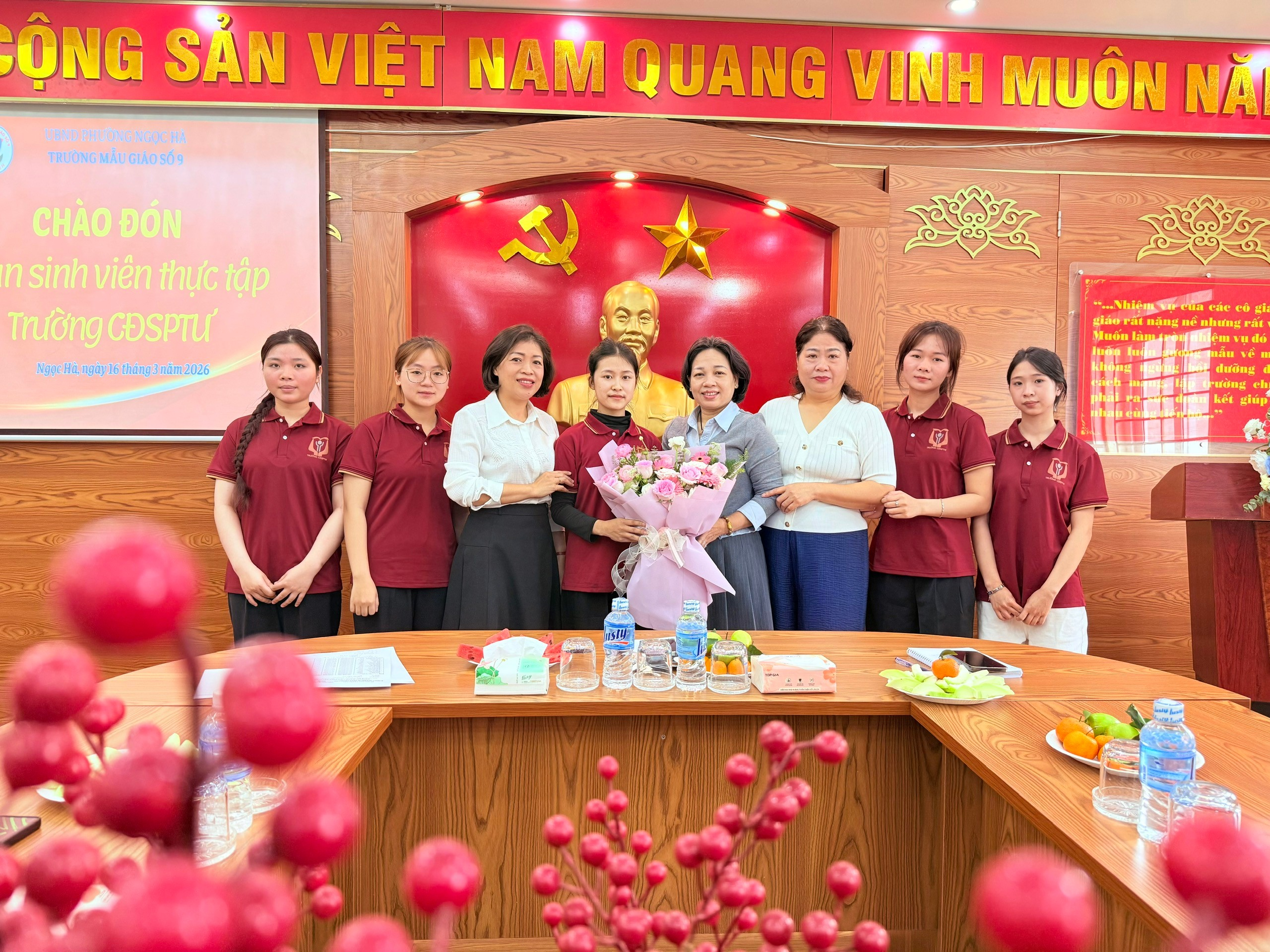 Sáng ngày 16 tháng 3 năm 2026 không khí tại Trường Mẫu giáo Số 9 ngập tràn sự háo hức và niềm vui khi nhà trường tổ chức Lễ đón tiếp và định hướng cho các bạn sinh viên thực tập sư phạm khóa 24 đến từ trường Cao đẳng sư phạm TW. Đây là sự kiện quan trọng, đánh dấu chặng đường đồng hành giữa nhà trường và các "mầm non tương lai" của ngành giáo dục mầm non. Buổi đón tiếp còn mở màn cho chuỗi hoạt động kiến tập đầy giá trị, mang đến những bài học thực tế sâu sắc cho các bạn sinh viên.