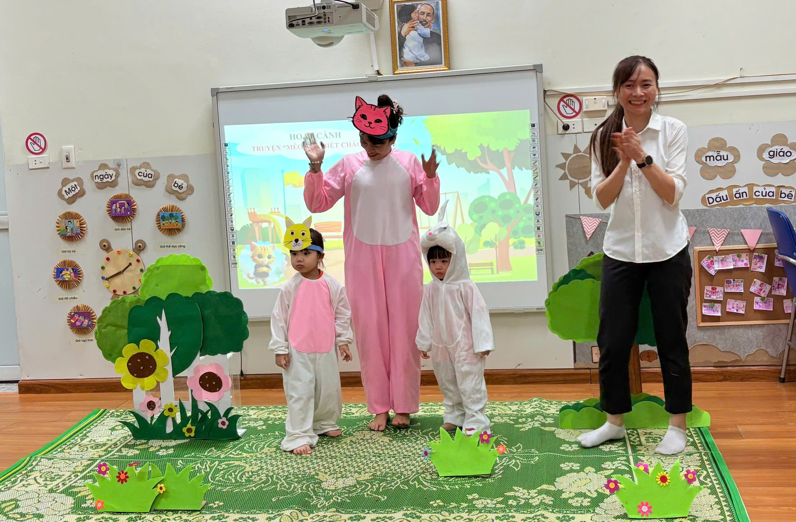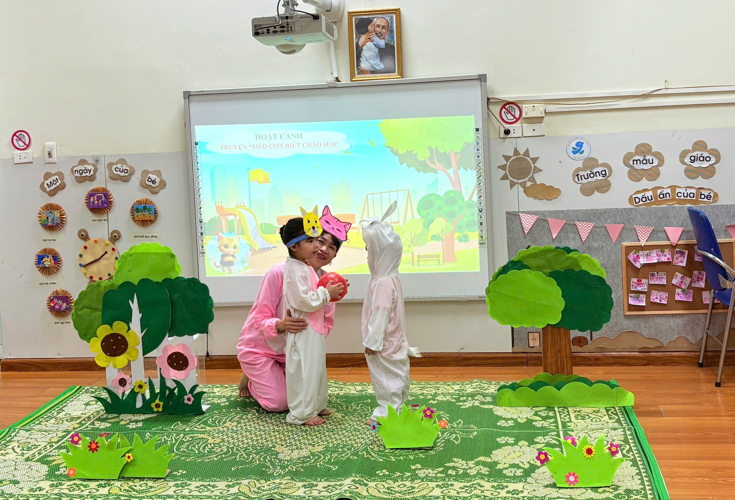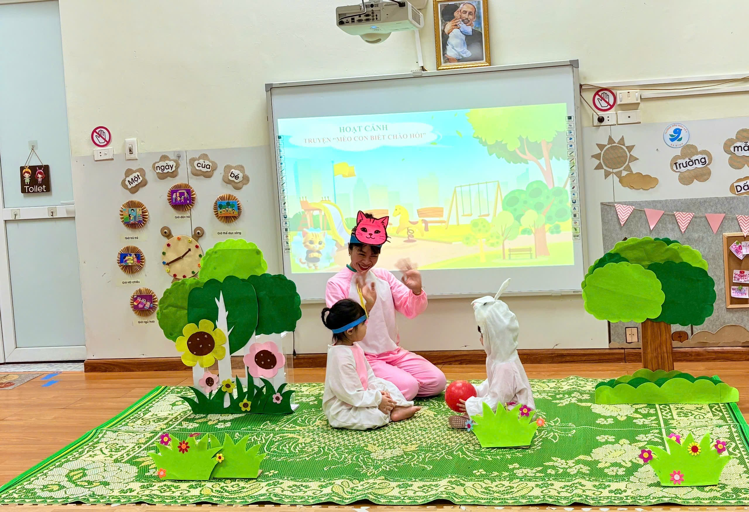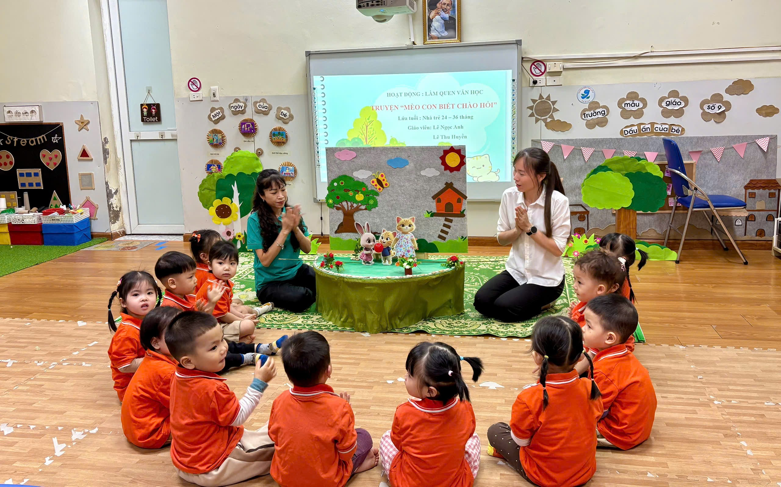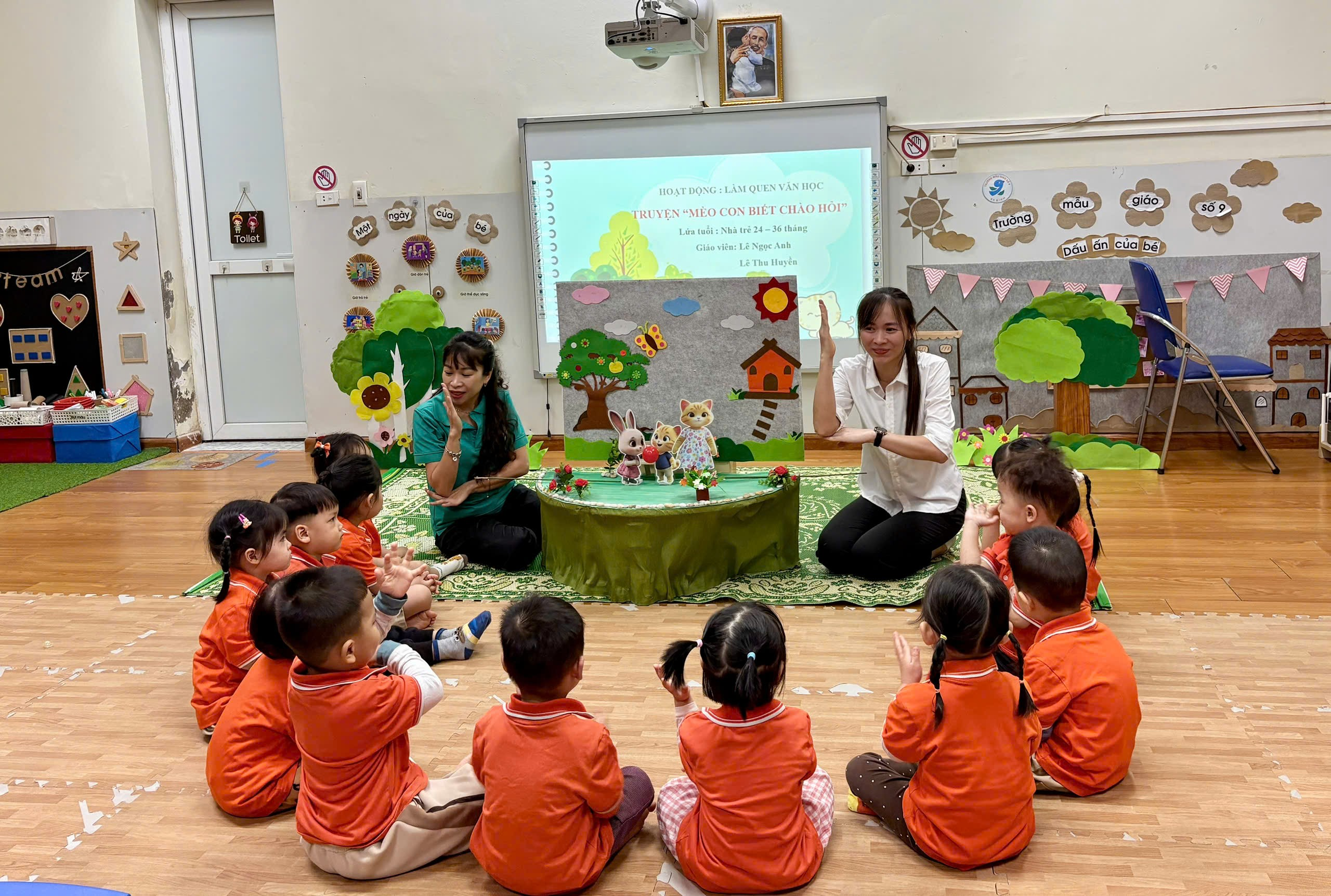 Lớp Nhà trẻ D2 (24-36 tháng): Làm quen Văn học - Kể chuyện "Mèo con biết chào hỏi"