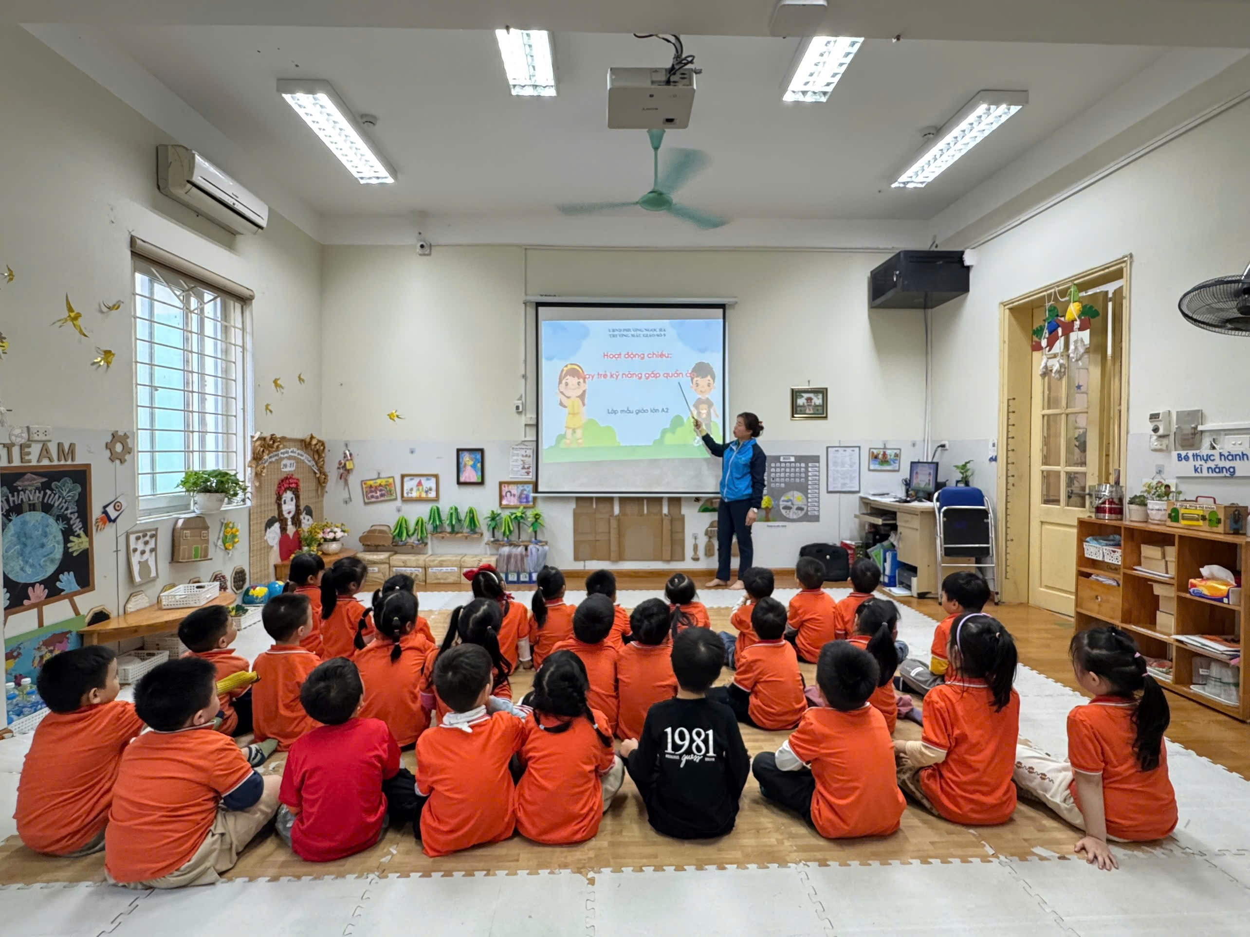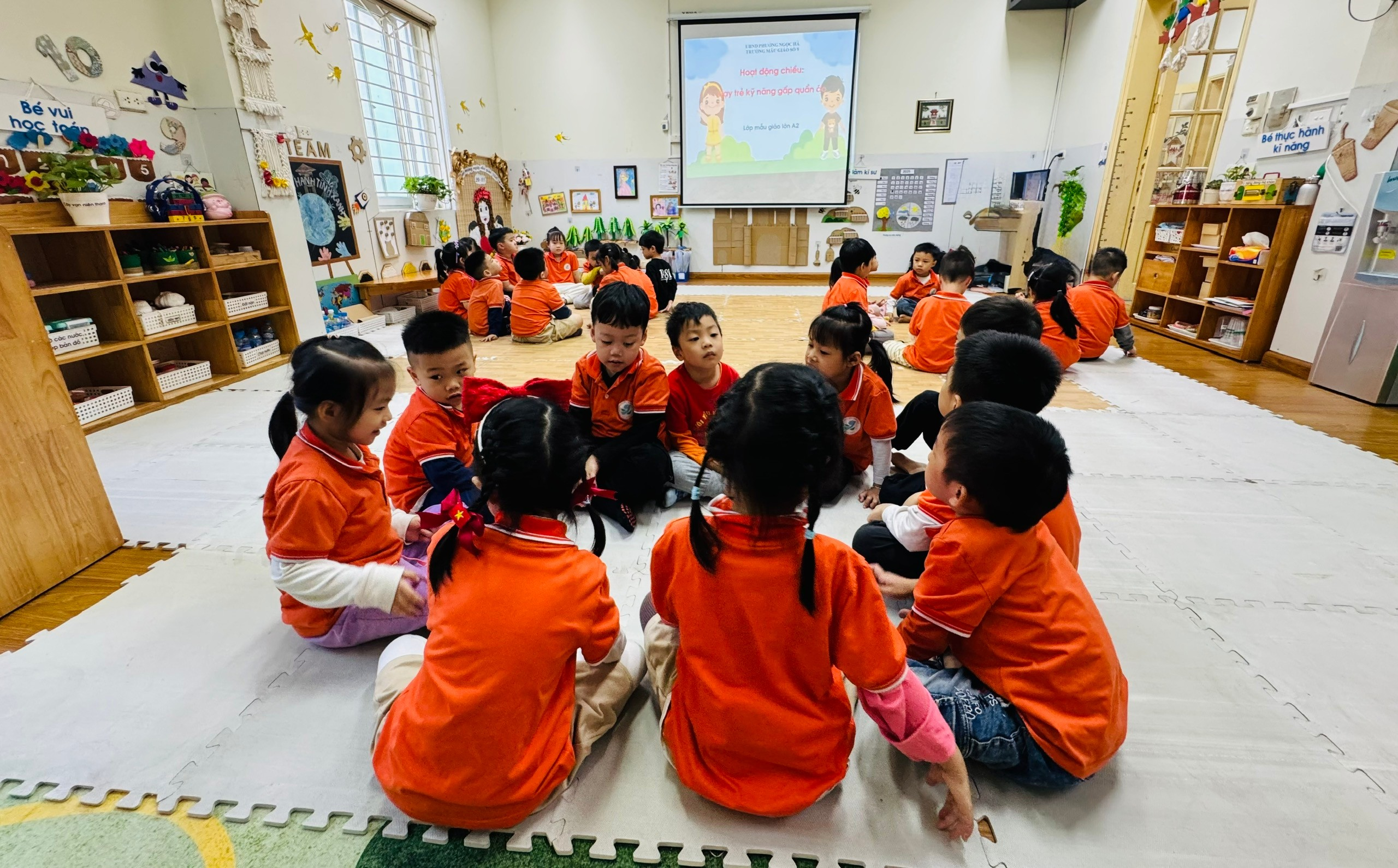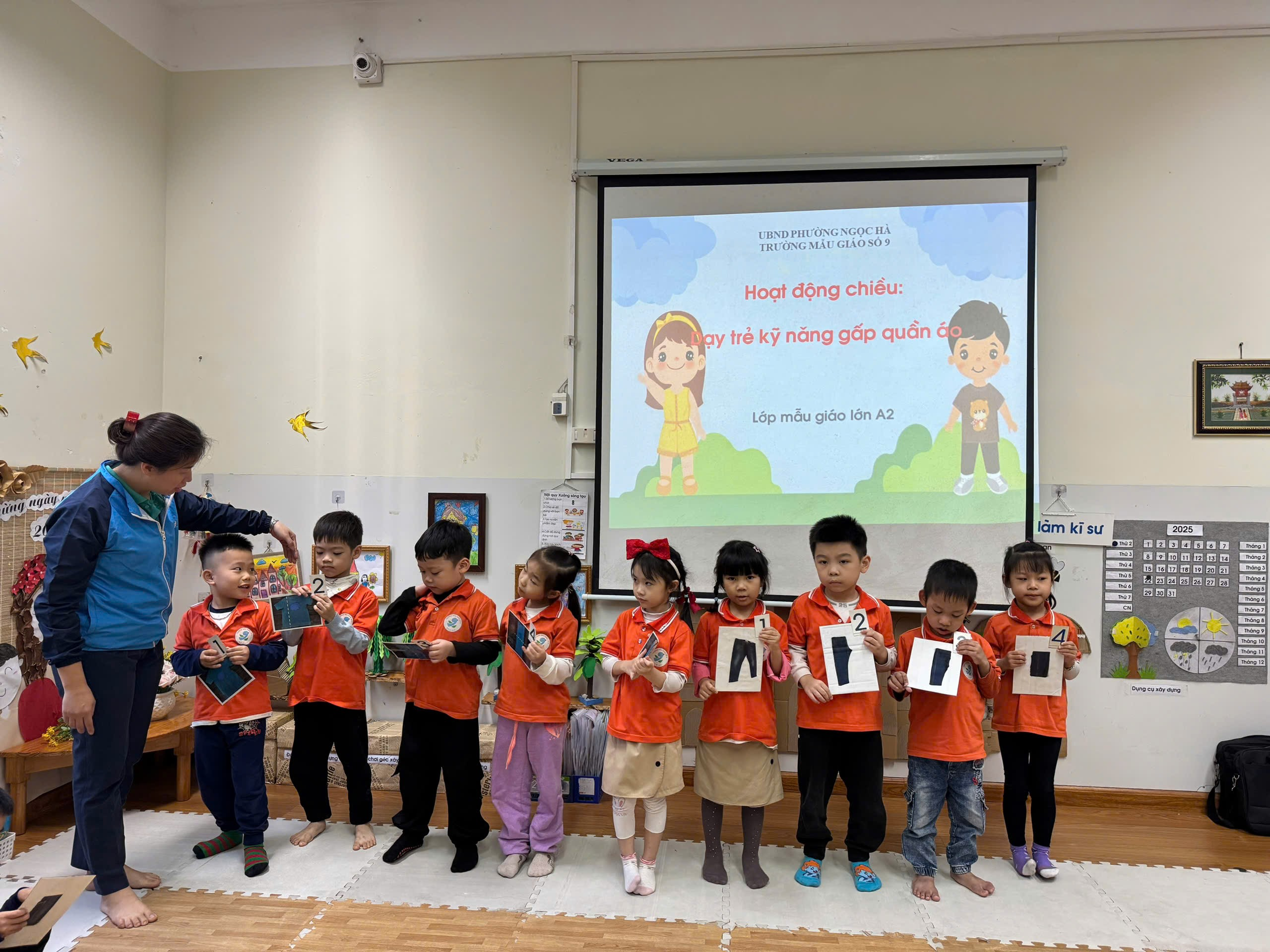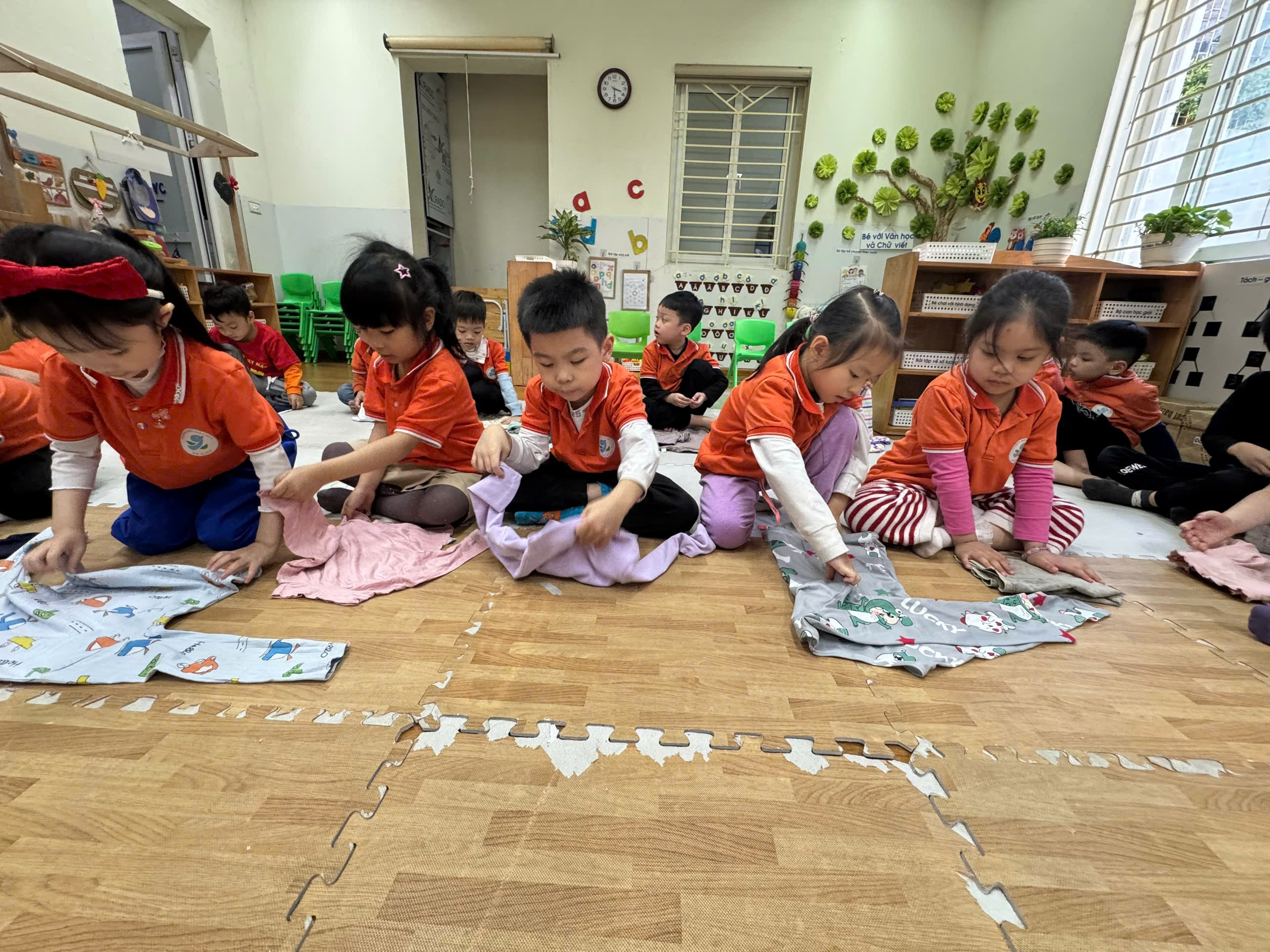 Trong chương trình giáo dục kỹ năng sống cho trẻ mẫu giáo lớn, hoạt động “Dạy kỹ năng gấp quần áo” được các cô giáo lớp A2 rất chú trọng. Đây là một trong những hoạt động thiết thực trong cuộc sống hàng ngày, giúp trẻ hình thành kỹ năng tự phục vụ bản thân, chuẩn bị hành trang vững vàng để tự tin bước vào lớp 1.