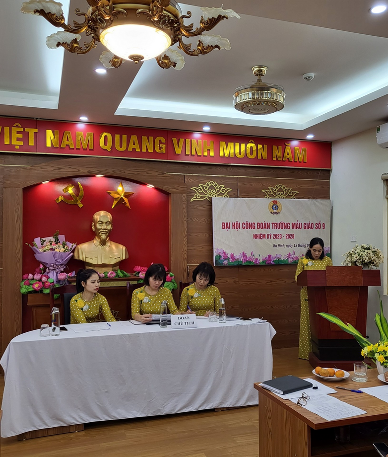 Sau thời gian làm việc khẩn trương, nghiêm túc, trách nhiệm, đúng quy định, Đại hội Công đoàn Trường Mẫu giáo Số 9 nhiệm kỳ 2023-2028 đã thành công tốt đẹp và bầu 5 đồng chí tham gia Ban chấp hành Công đoàn nhà trường.