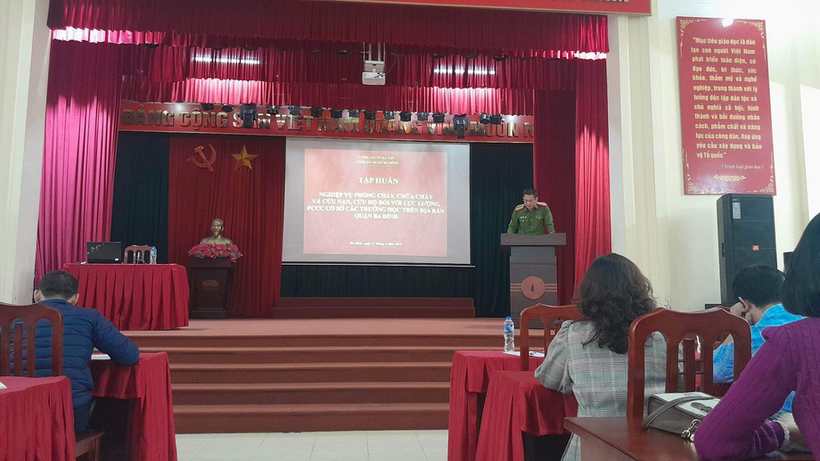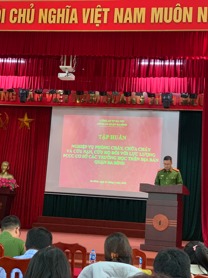 Nhằm nâng cao hiểu biết pháp luật, kiến thức về Phòng cháy chữa cháy và cứu hộ cứu nạn (PCCC&CNCH), phát huy tốt vai trò trách nhiệm trong công tác PCCC&CNCH, tích cực và chủ động phòng ngừa, phát hiện, xử lí kịp thời các tình huống khi có cháy xảy ra, Ban chỉ đạo PCCC & CNCH quận Ba Đình tổ chức Hội nghị tập huấn, bồi dưỡng nghiệp vụ phòng cháy chữa cháy và cứu nạn cứu hộ cho các thành viên Đội PCCC&CNCH tại chỗ của các trường học trên địa bàn quận.