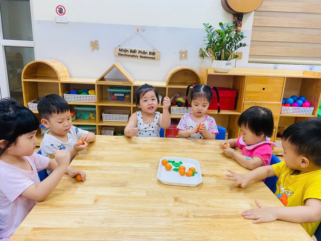 Buổi hoạt động "Nặn quả cam" tại lớp Nhà trẻ D1 không chỉ mang đến những sản phẩm ngộ nghĩnh mà còn là những khoảnh khắc đáng nhớ. Các bé được vui chơi, học hỏi và tương tác với bạn bè, tạo nên một không khí học tập thật ấm áp và gần gũi: