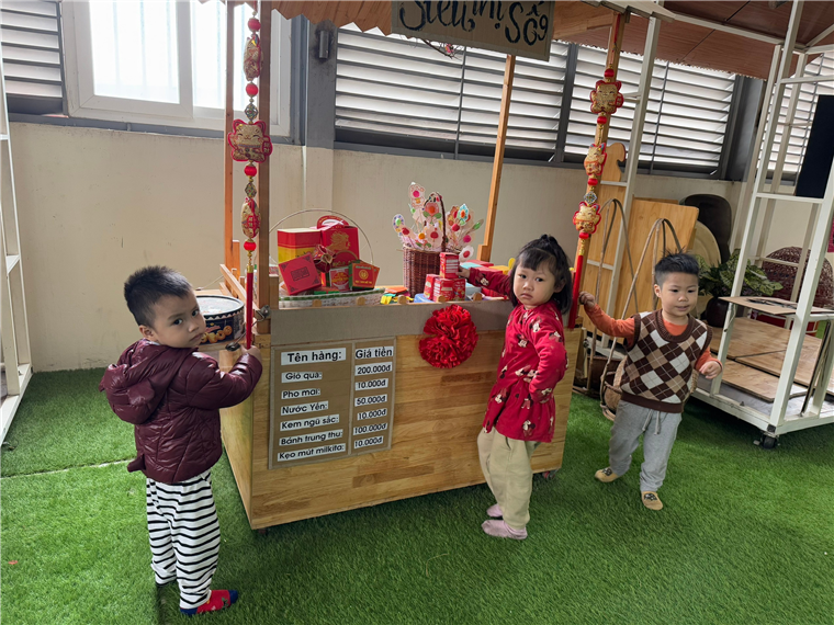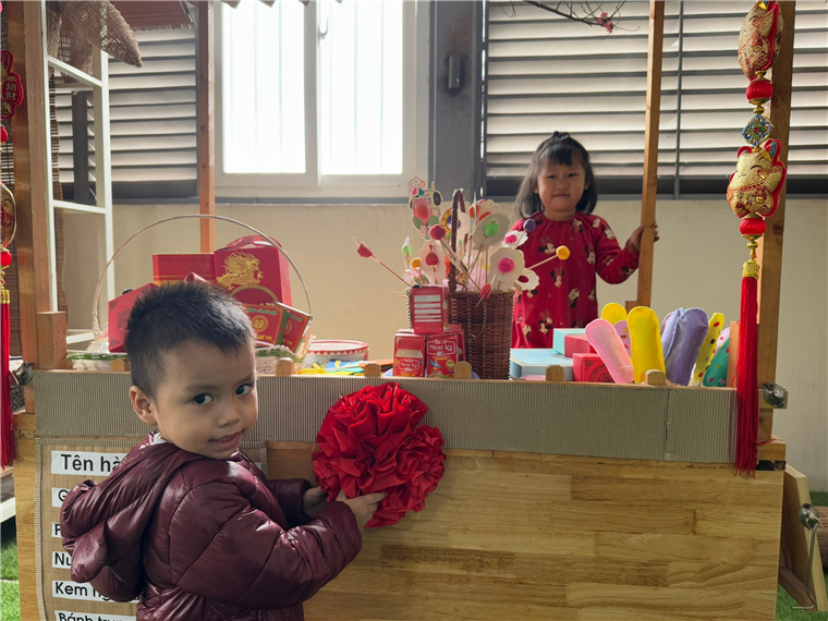 Cùng các bạn nhỏ mang pháo trang trí Tết nhé