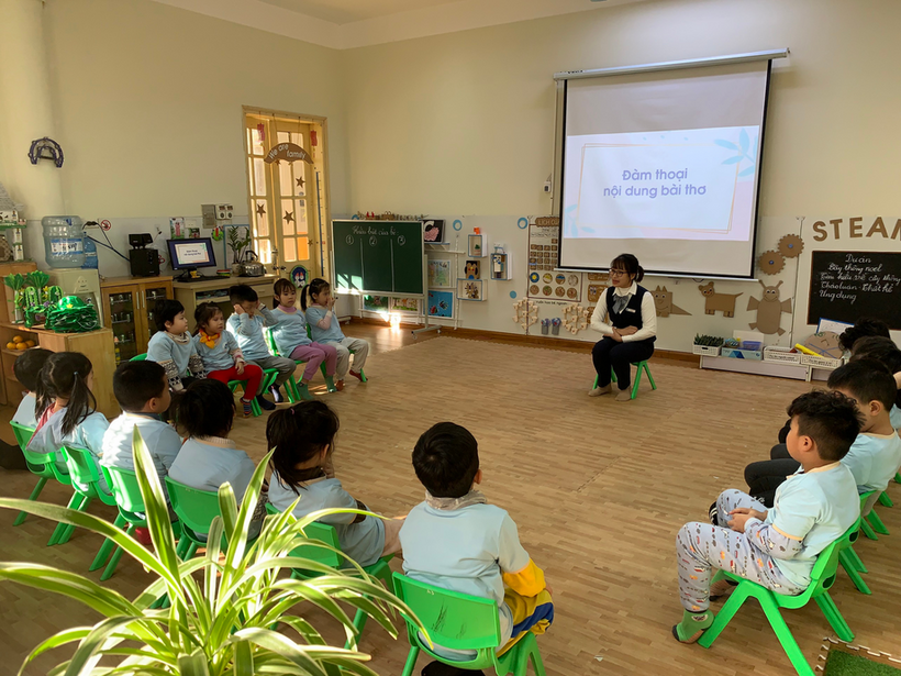 Hoạt động làm quen văn học giúp trẻ mầm non phát triển ngôn ngữ, phát triển lời nói mạch lạc, rõ ràng. Ngoài ra còn giúp trẻ phát triển một cách toàn diện bao gồm về đạo đức và các chuẩn mực về hành vi văn hóa cho trẻ. Qua giờ học các bạn lớp A1 tự tin, thể hiện đọc những dòng thơ nói về những chú bộ bộ hành quân ngày đêm gian khổ trong gian khó để ra mặt trận chiến đấu vì tổ quốc Việt Nam.