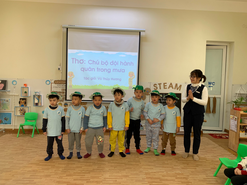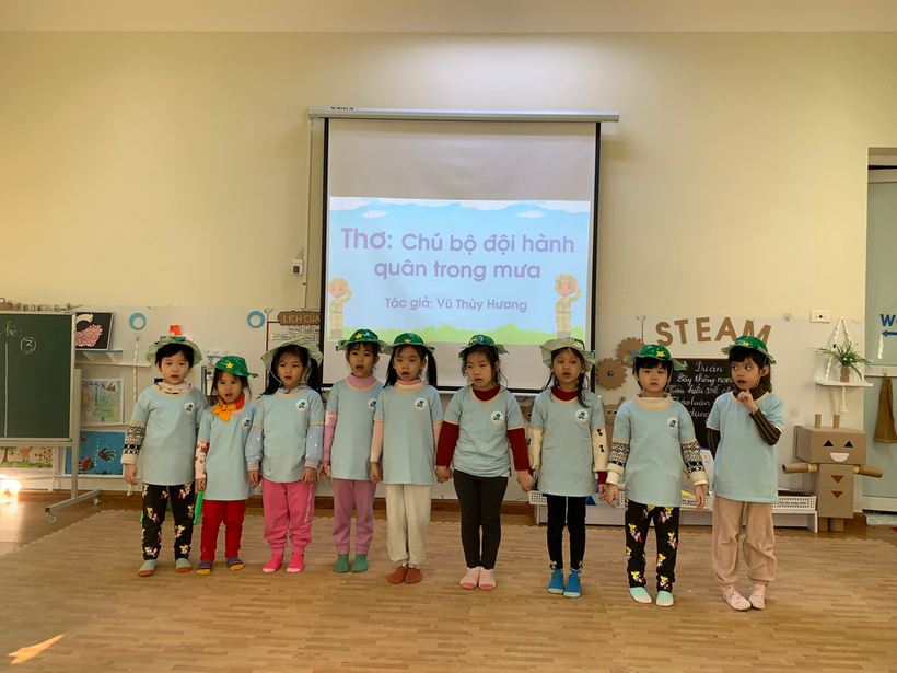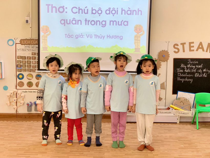 Hình ảnh trẻ đọc thơ “Chú bộ đội hành quân trong mưa”
