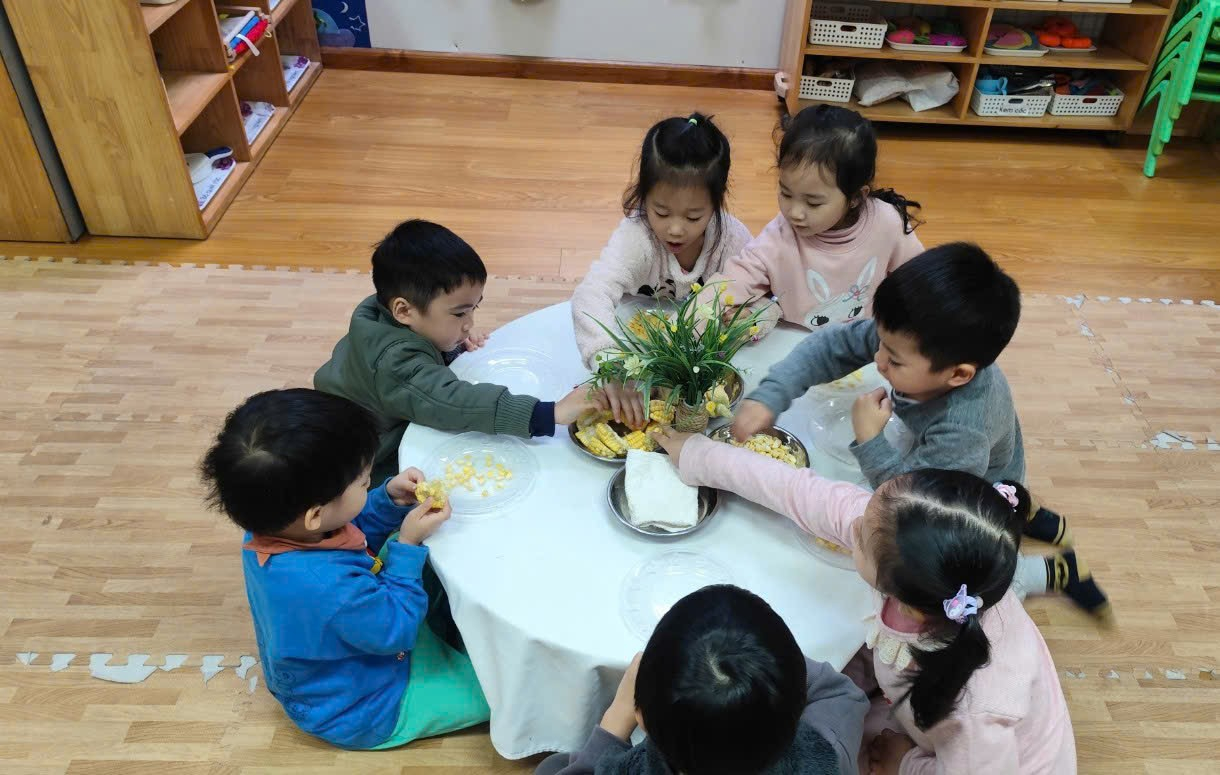 Hôm nay, các bé lớp Mẫu giáo Nhỡ B1 đã có một buổi trải nghiệm vô cùng thú vị với hoạt động bóc tẽ hạt ngô. Dưới sự hướng dẫn của cô giáo, các bé hào hứng cầm trên tay những bắp ngô vàng ươm, tỉ mỉ tách từng hạt ngô để bỏ vào đĩa.