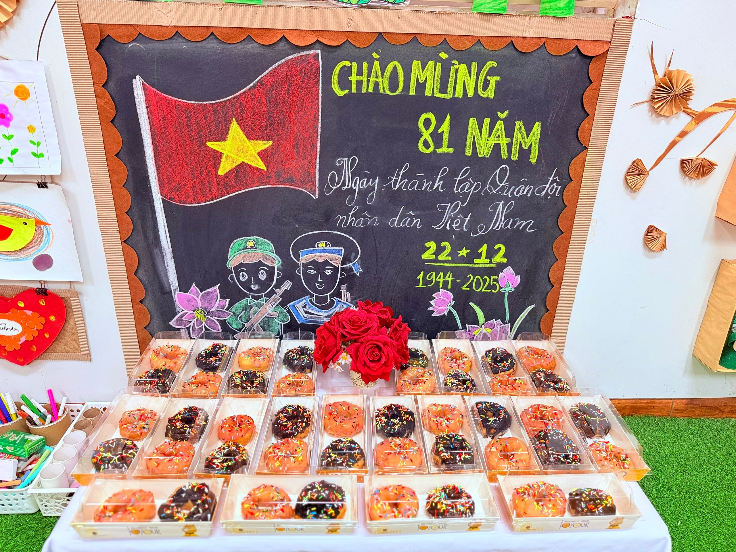 Khép lại chuỗi hoạt động là buổi liên hoan chào năm mới thân mật và vui tươi. Các bé cùng nhau thưởng thức bánh ngon, sữa ngọt, hòa mình trong không khí rộn ràng, ấm cúng, đánh dấu một năm với thật nhiều trải nghiệm đáng nhớ.
