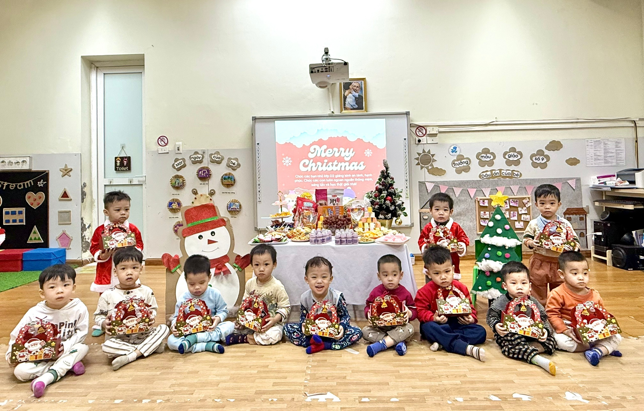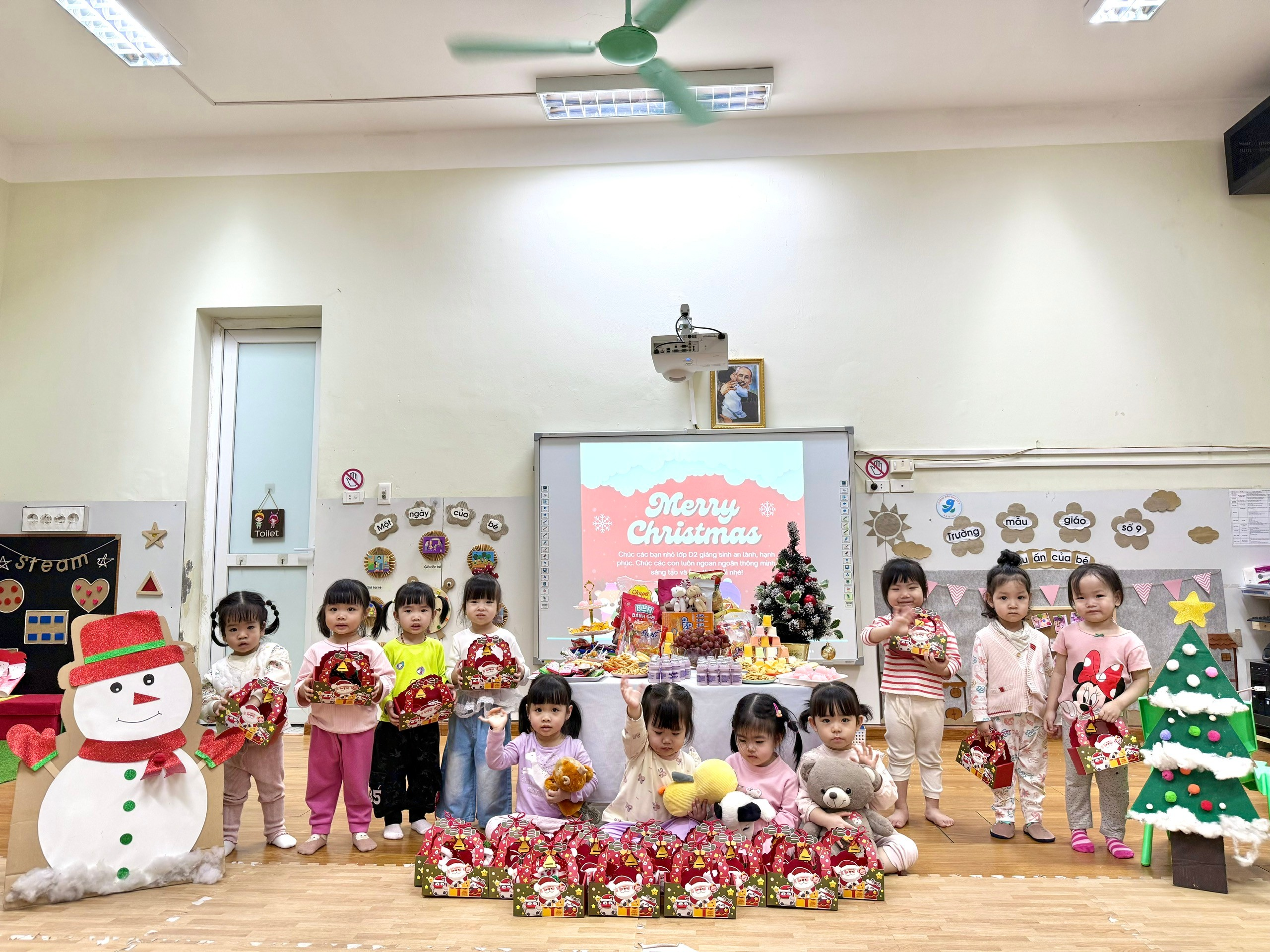 Trong không gian lung linh sắc màu Noel, các bé còn được nhận những món quà xinh xắn từ cô giáo. Những nụ cười hồn nhiên, ánh mắt háo hức của các con khi nhận quà đã tạo nên khoảnh khắc thật ấm áp, góp phần giúp trẻ cảm nhận được niềm vui, sự yêu thương và gắn kết trong ngôi nhà chung D2.