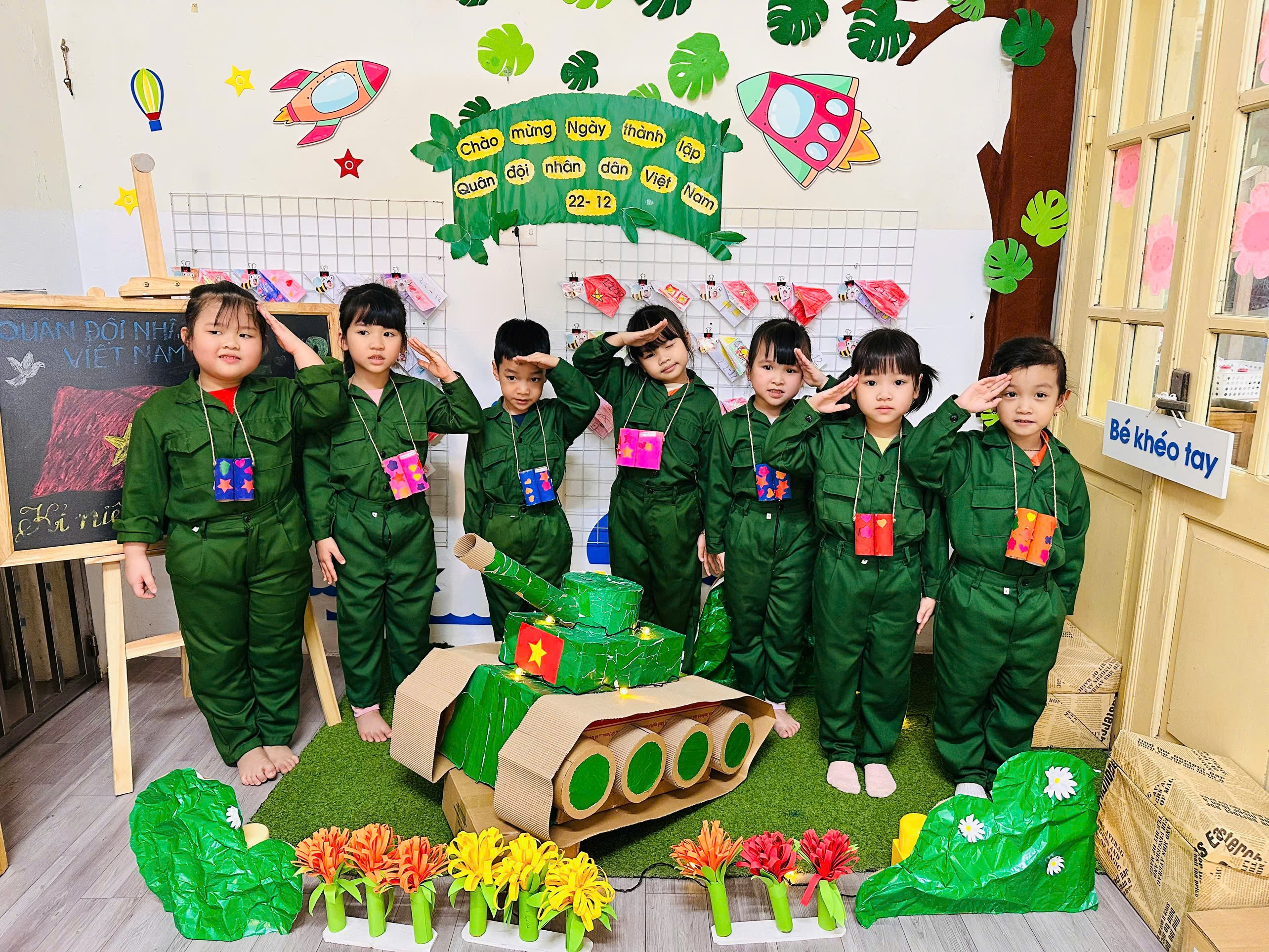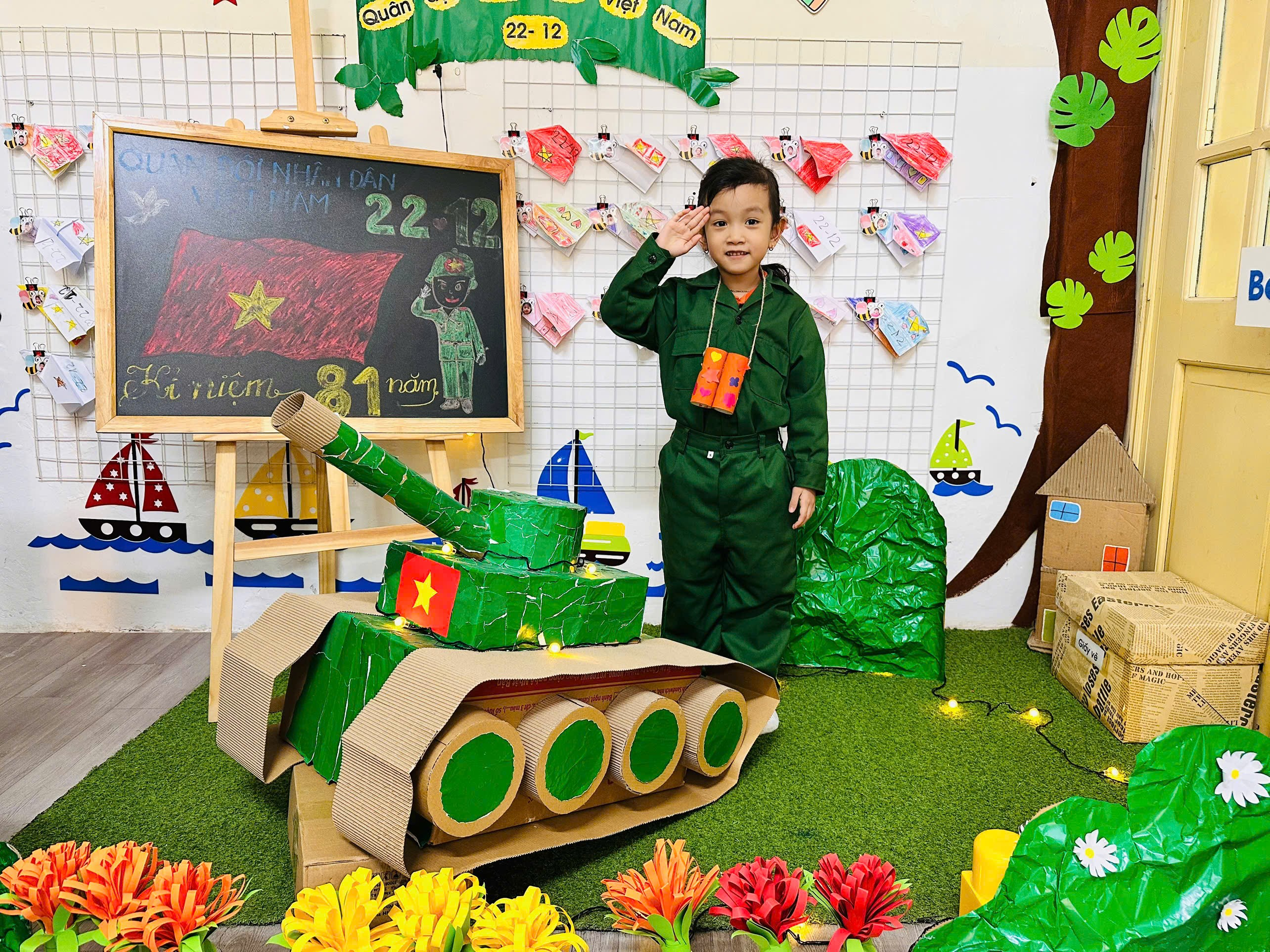 Hoạt động còn góp phần giáo dục trẻ biết trân trọng, yêu quý và tự hào về truyền thống Quân đội Nhân dân Việt Nam, đồng thời hình thành ý thức tái sử dụng vật liệu, bảo vệ môi trường ngay từ những năm đầu đời. Buổi hoạt động diễn ra trong không khí vui tươi, hào hứng, để lại nhiều niềm vui và ấn tượng đẹp cho các bé lớp mẫu giáo lớn A1, góp phần làm phong phú thêm chuỗi hoạt động giáo dục ý nghĩa chào mừng ngày 22/12 tại trường Mẫu giáo Số 9.