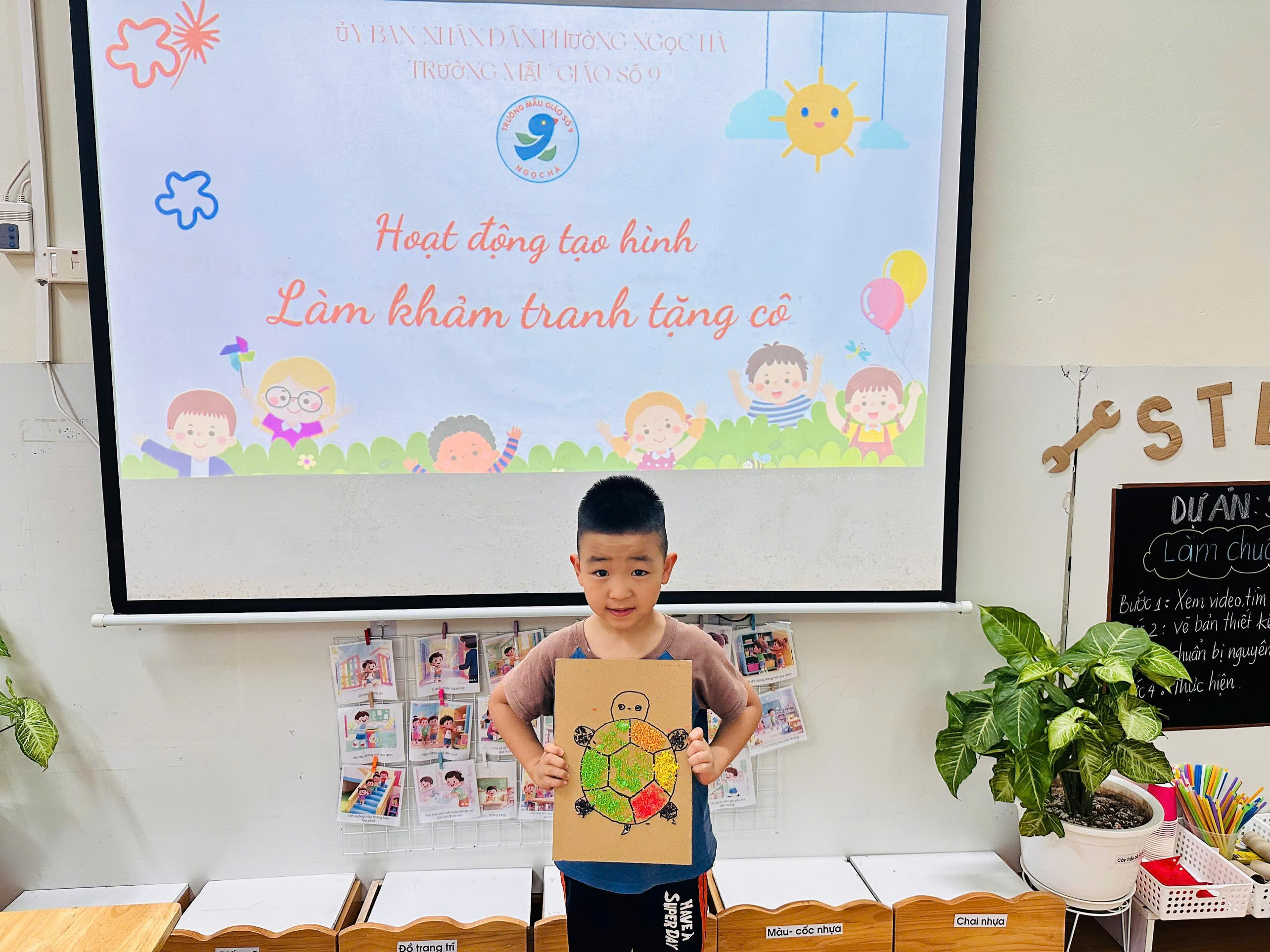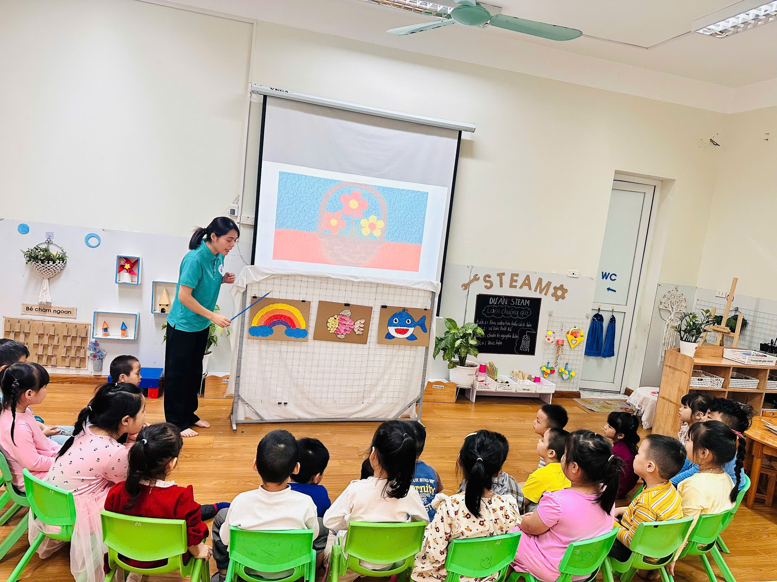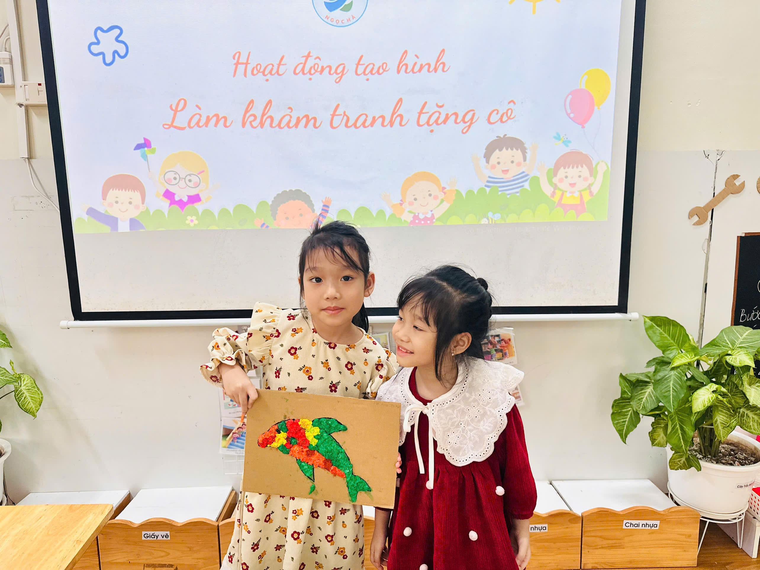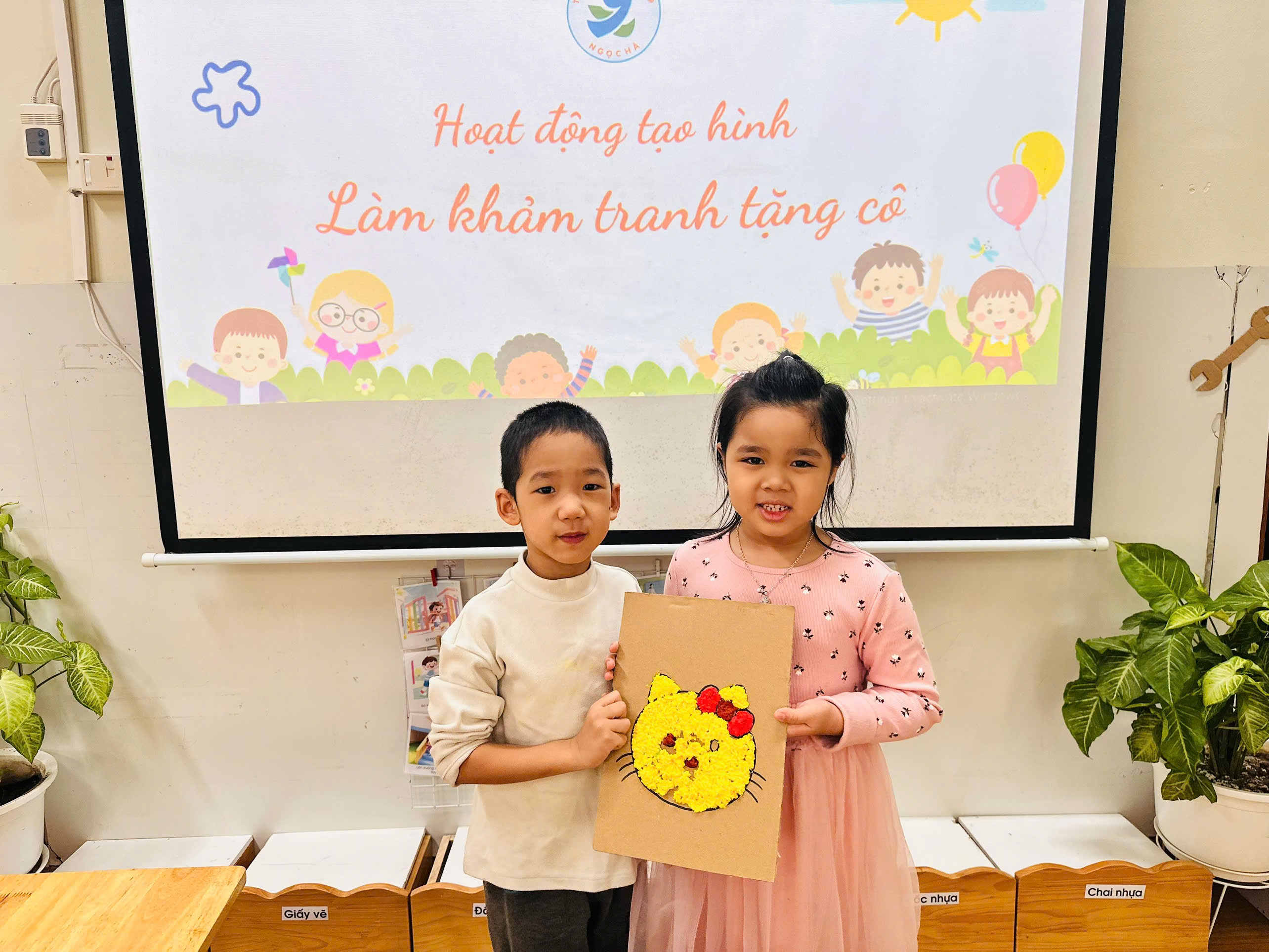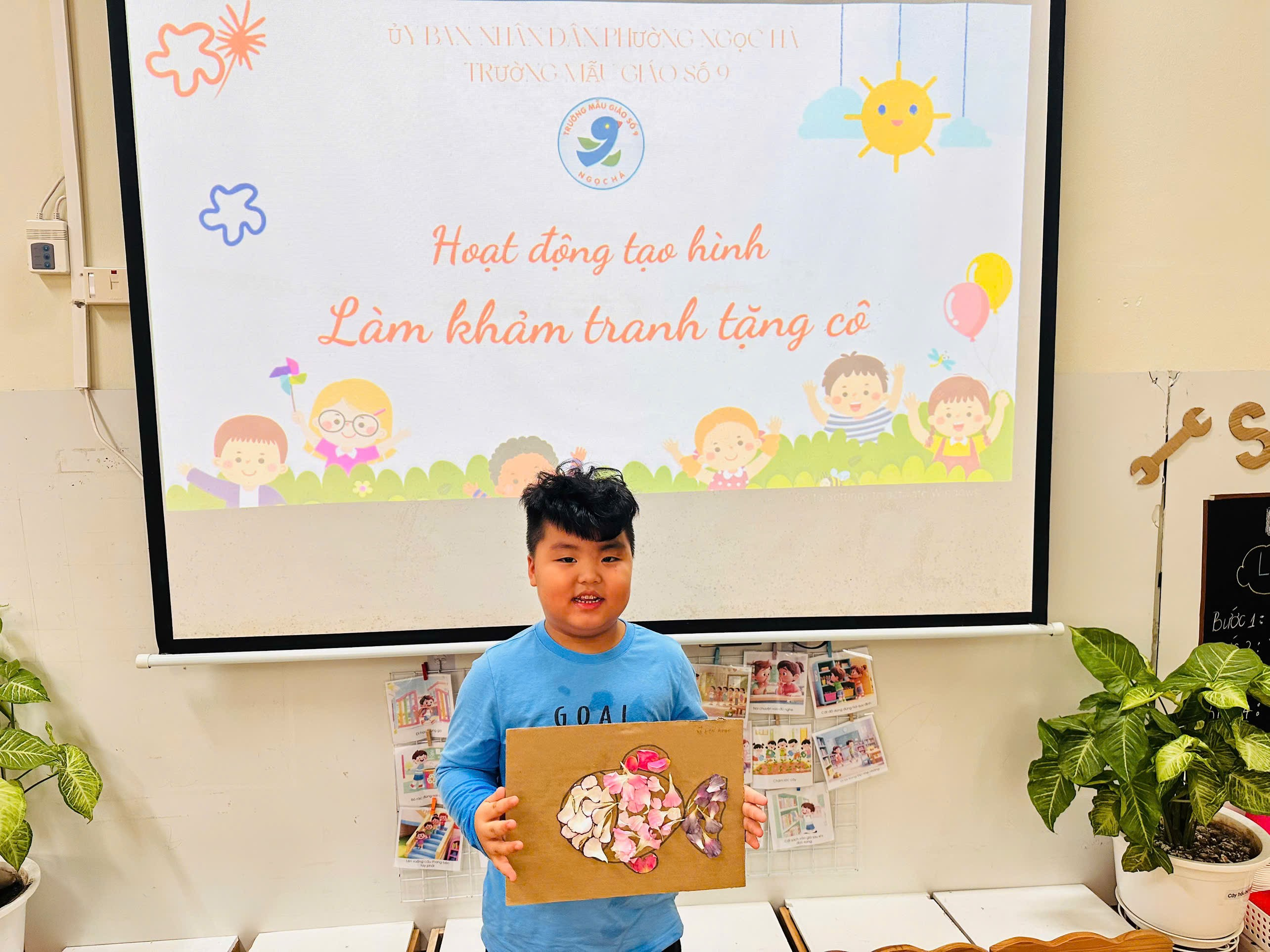 Hoạt động không chỉ giúp trẻ phát triển thẩm mỹ, rèn kỹ năng khéo léo mà còn là dịp để các con gửi gắm tình cảm yêu thương tới cô giáo của mình.