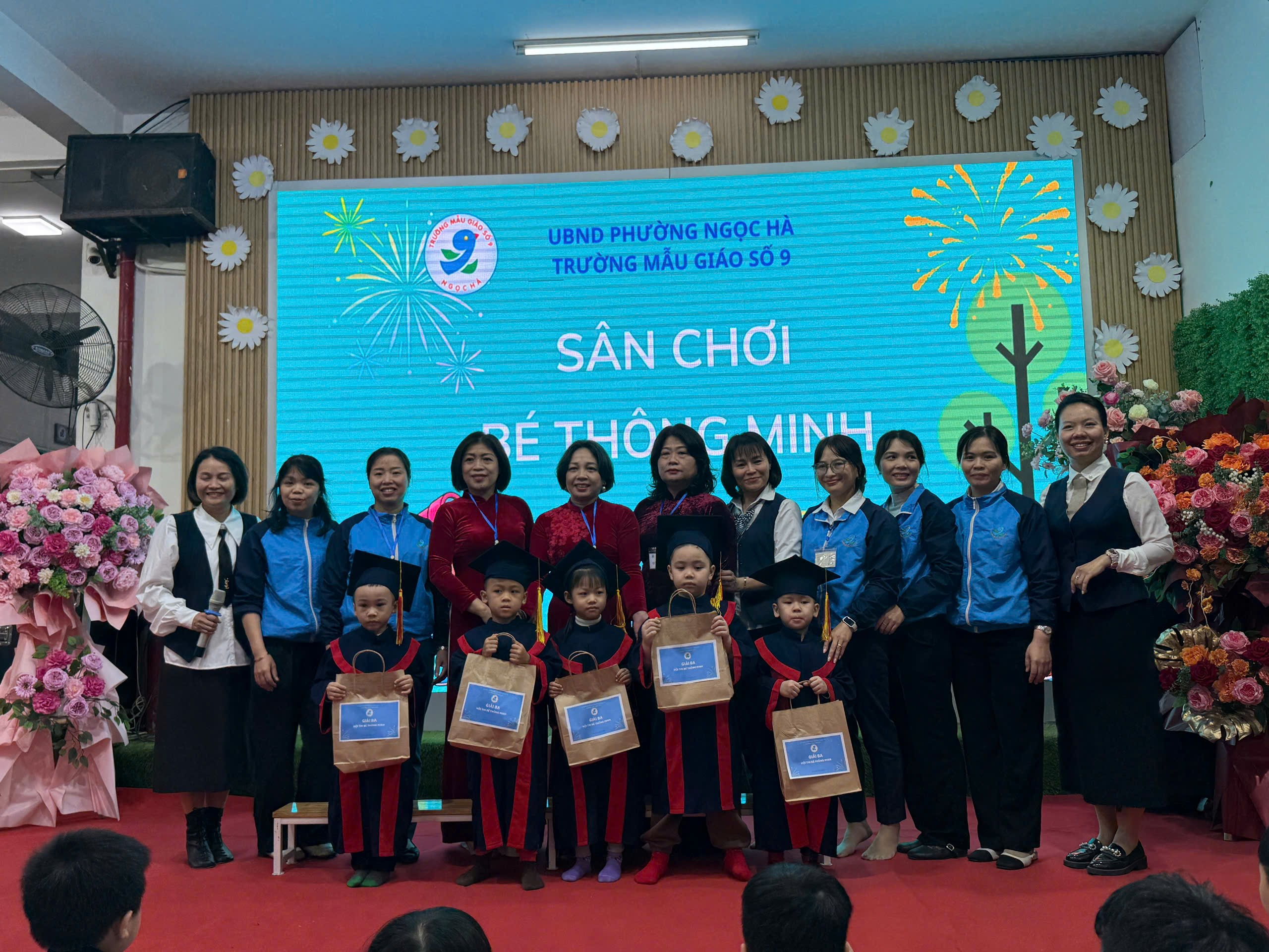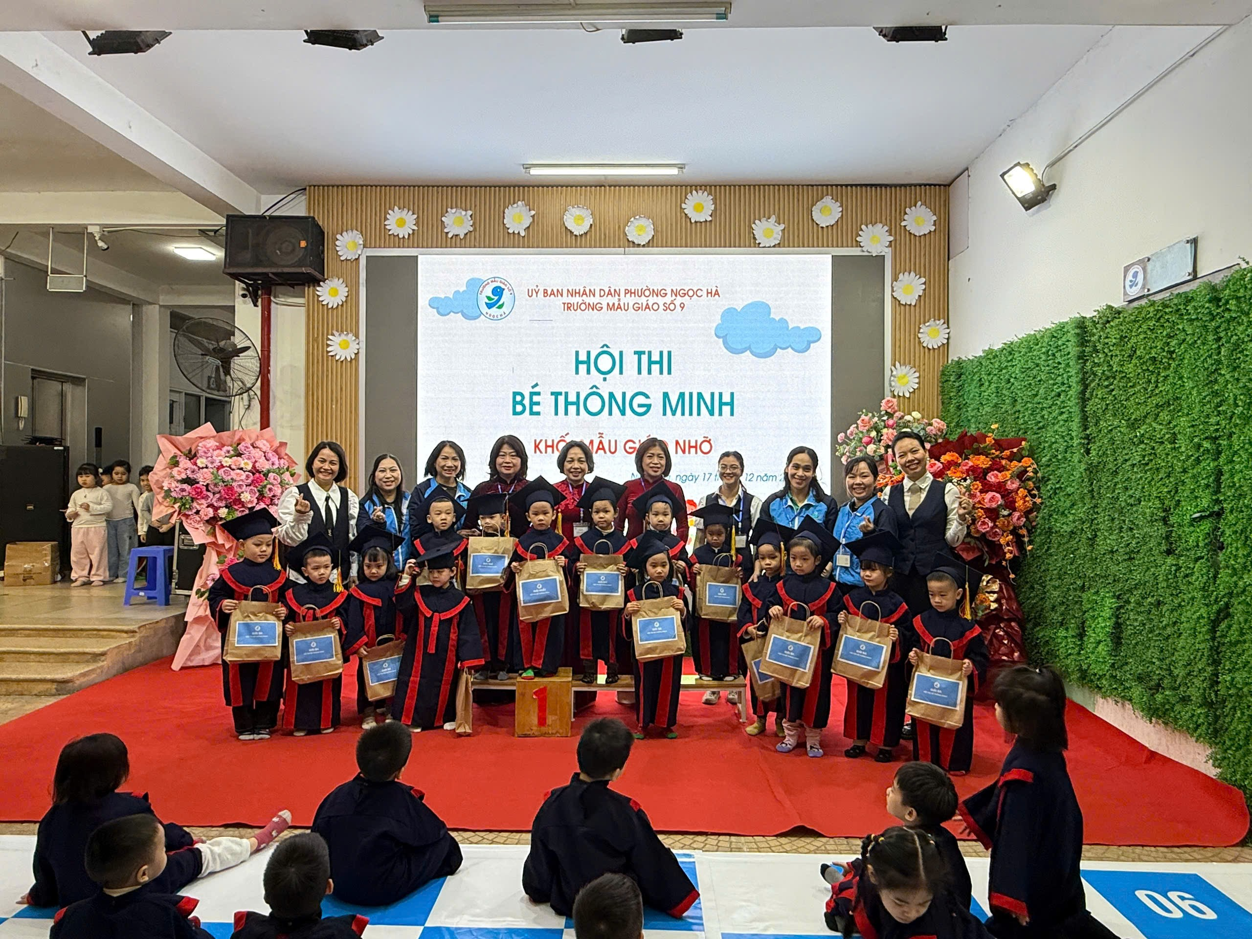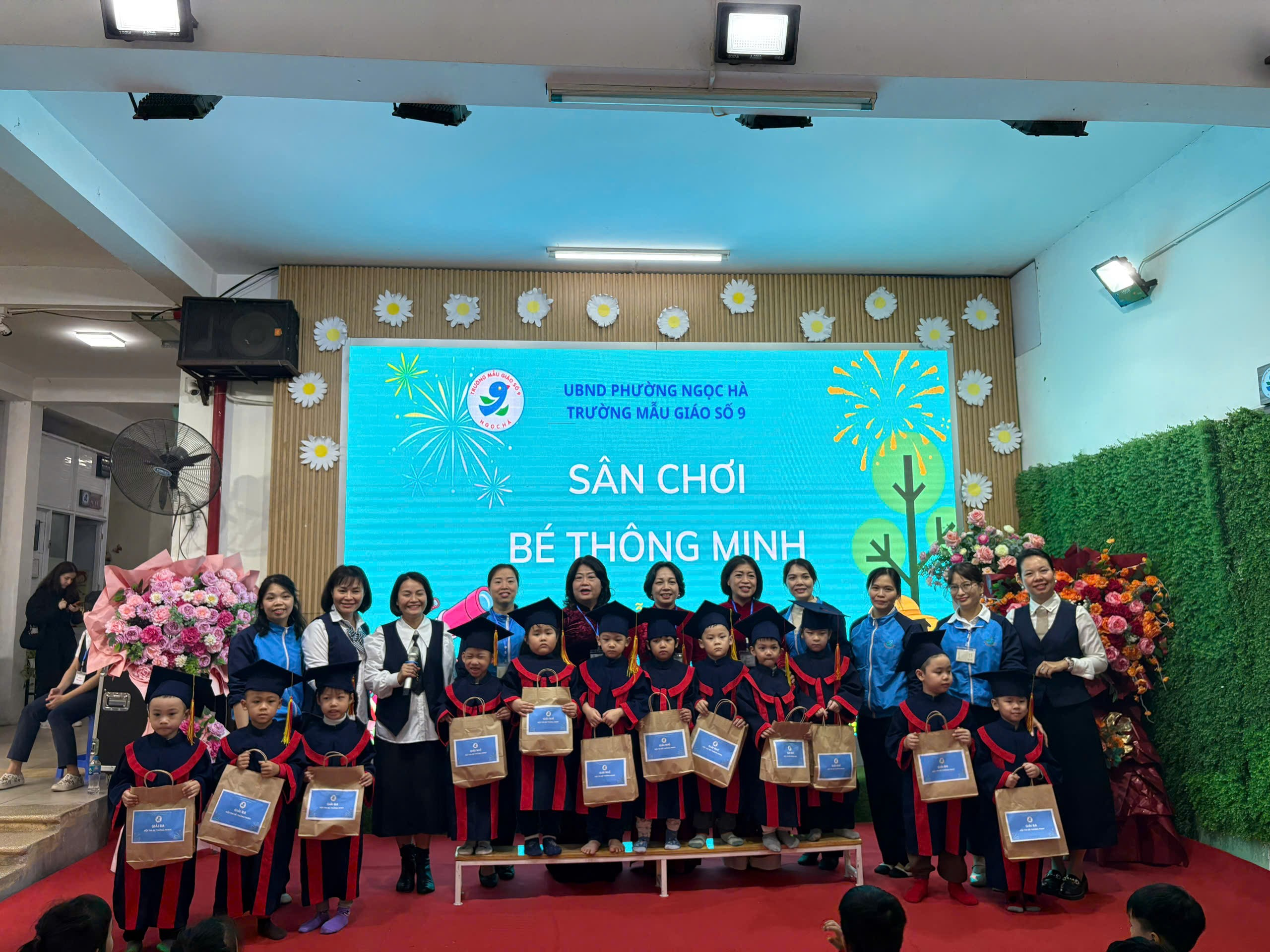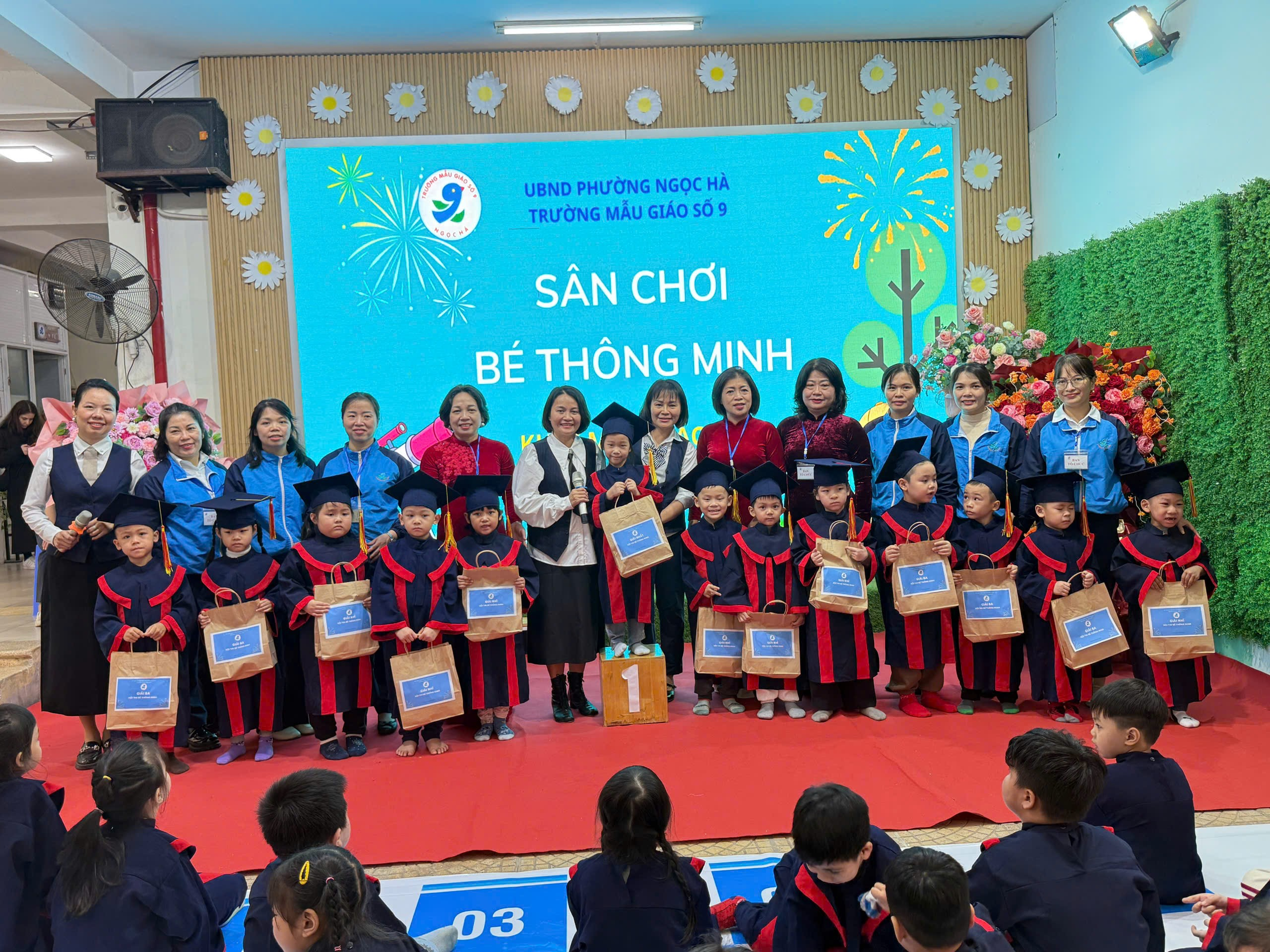 Ngày 17/12/2025, Trường Mẫu giáo số 9 đã tổ chức thành công sân chơi “Bé thông minh” dành cho học sinh khối Mẫu giáo Nhỡ và Mẫu giáo Lớn. Chương trình diễn ra trong không khí vui tươi – hào hứng – bổ ích, thu hút sự tham gia của Ban Giám hiệu nhà trường, các cô giáo, đại diện phụ huynh và toàn thể các con học sinh.