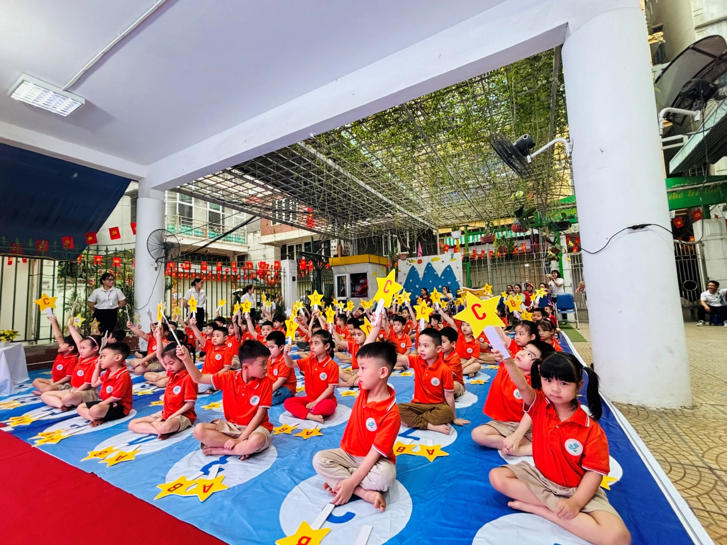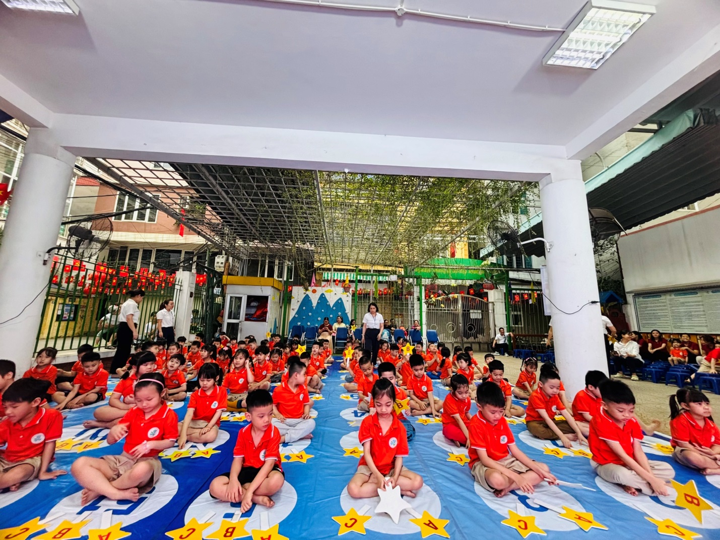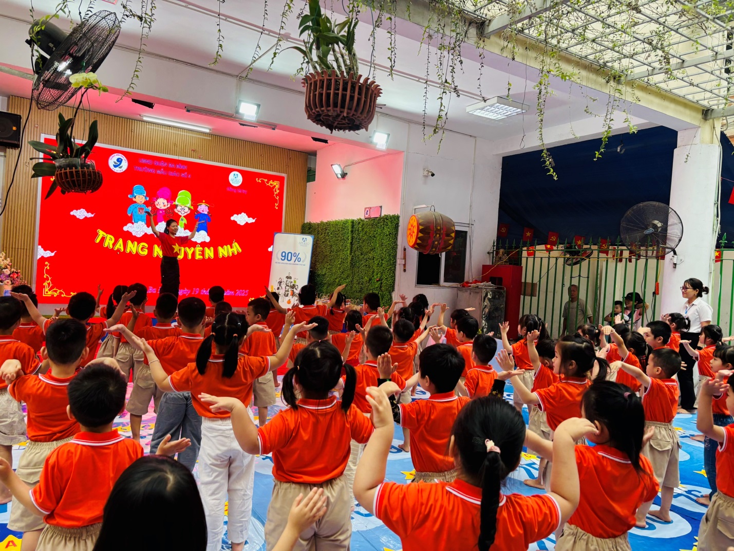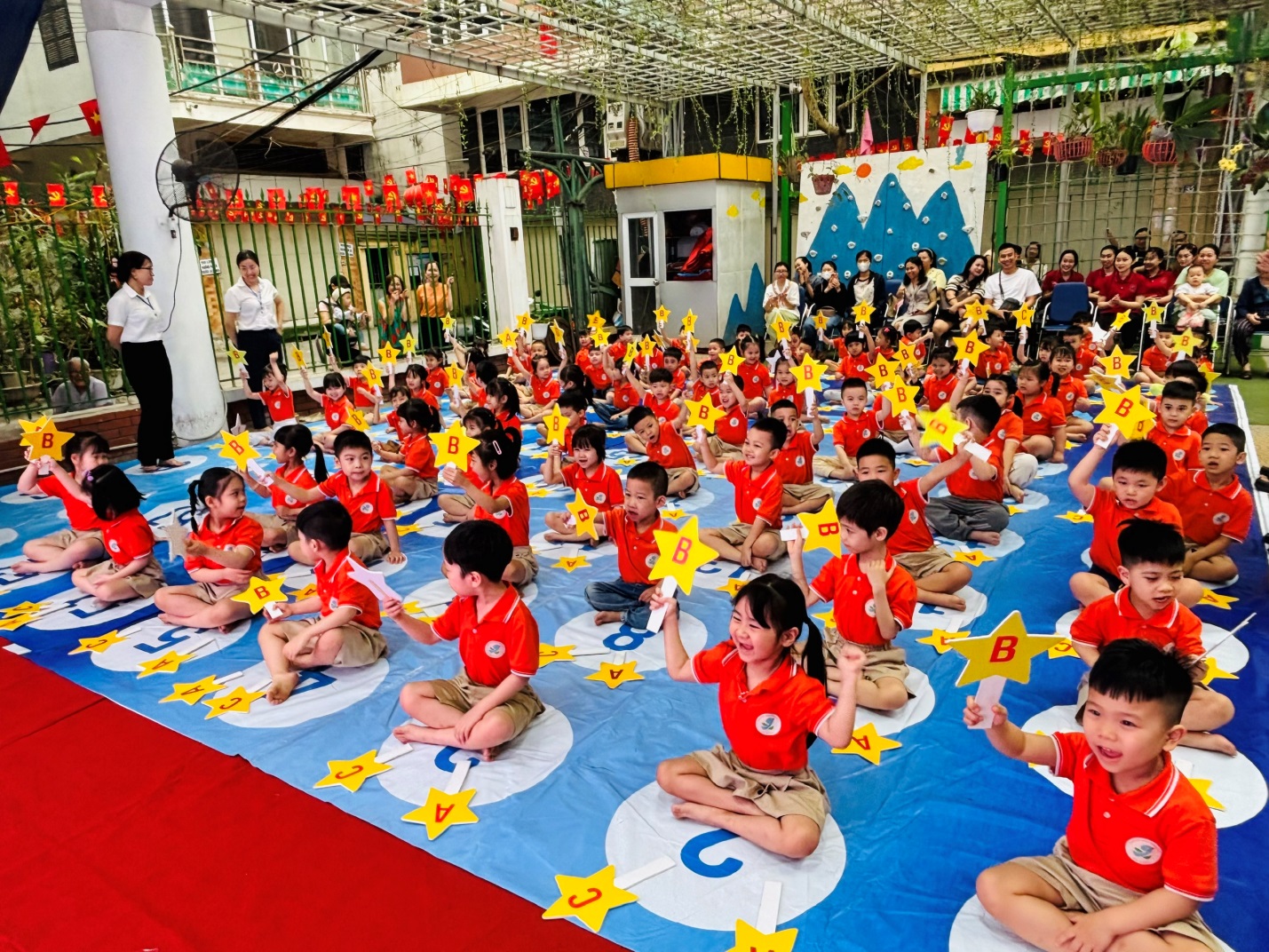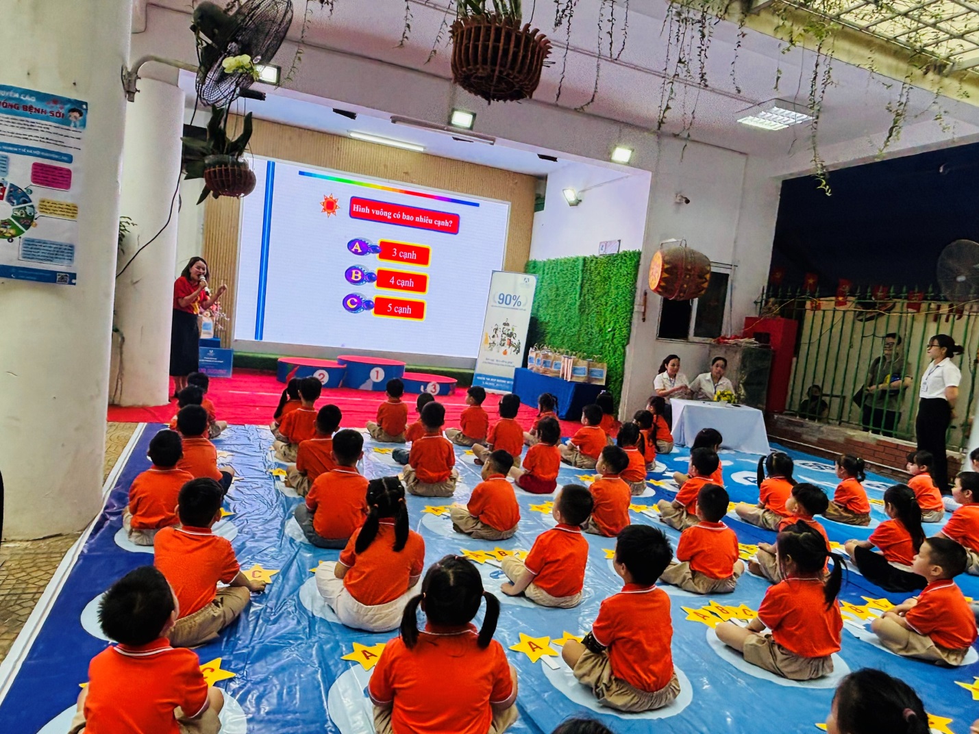 Hội thi là sân chơi bổ ích, giúp trẻ ôn lại các kiến thức đã học một cách sinh động và tự nhiên. Từ chữ cái, con số, đến các câu đố vui về hiện tượng thiên nhiên, trẻ đều thể hiện sự thông minh và nhạy bén. Các câu hỏi thi khiến cả sân trường vang dậy tiếng cổ vũ, thể hiện tinh thần đoàn kết và hào hứng của các con học sinh.