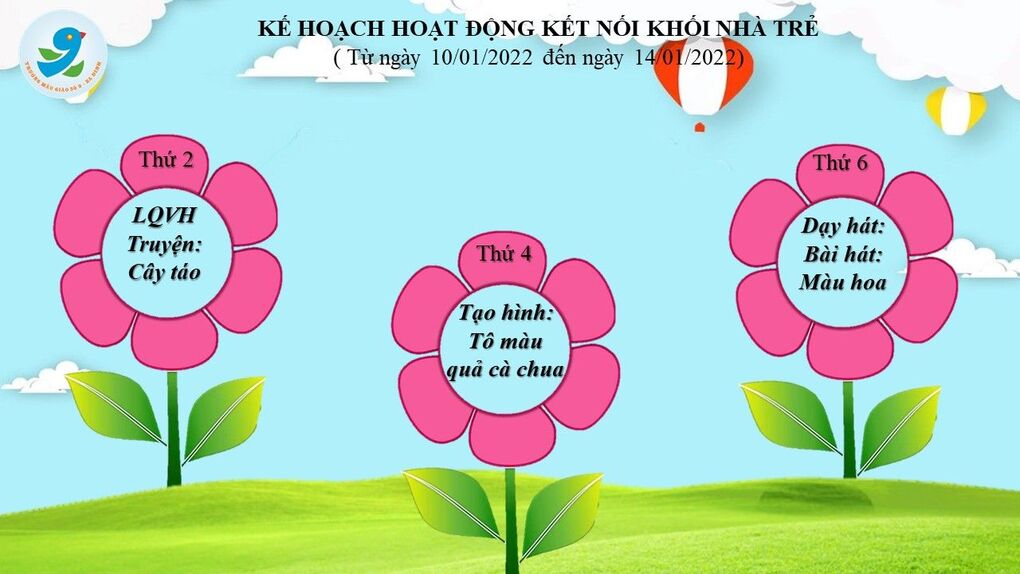 Kính gửi tới Quý phụ huynh kế hoạch giáo dục kết nối giữa giáo viên và học sinh tuần 2 tháng 1 từ ngày 10/01/2022 đến 14/01/2022. Nhà trường rất mong nhận được sự hợp tác từ phía gia đình trong hoạt động chăm sóc giáo dục trẻ. Trân trọng!