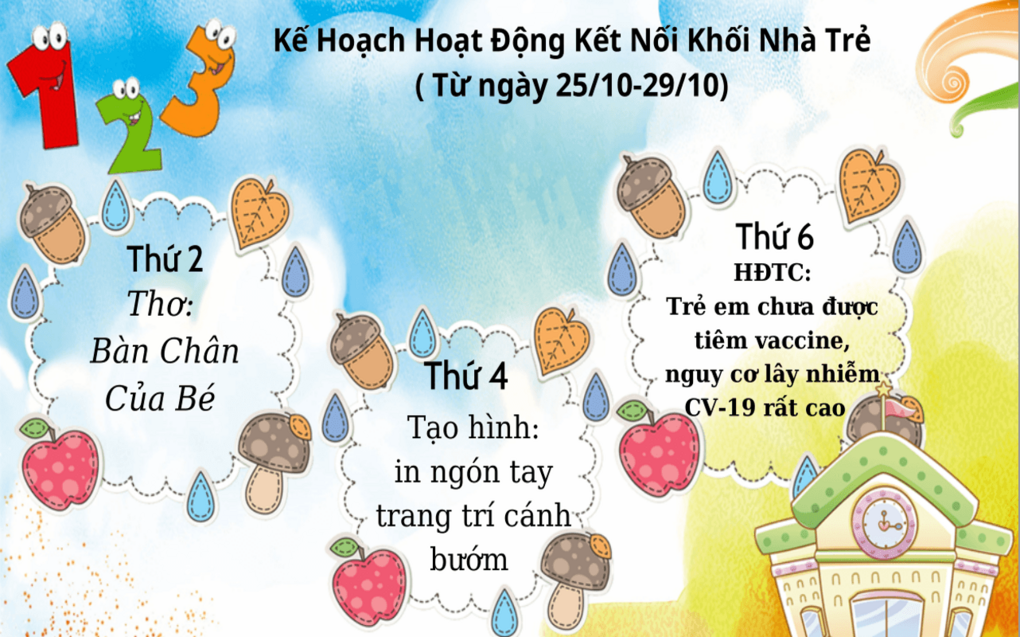 Vậy là tuần cuối của tháng 10 đã đến, cô trò mình cùng gặp nhau trong những hoạt động mới đầy bổ ích và hấp dẫn nhé.