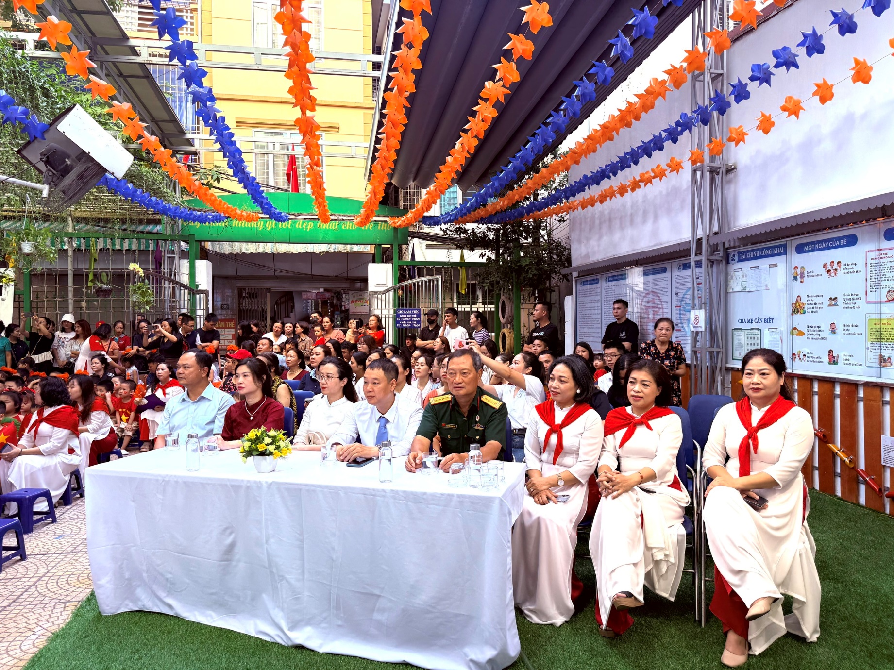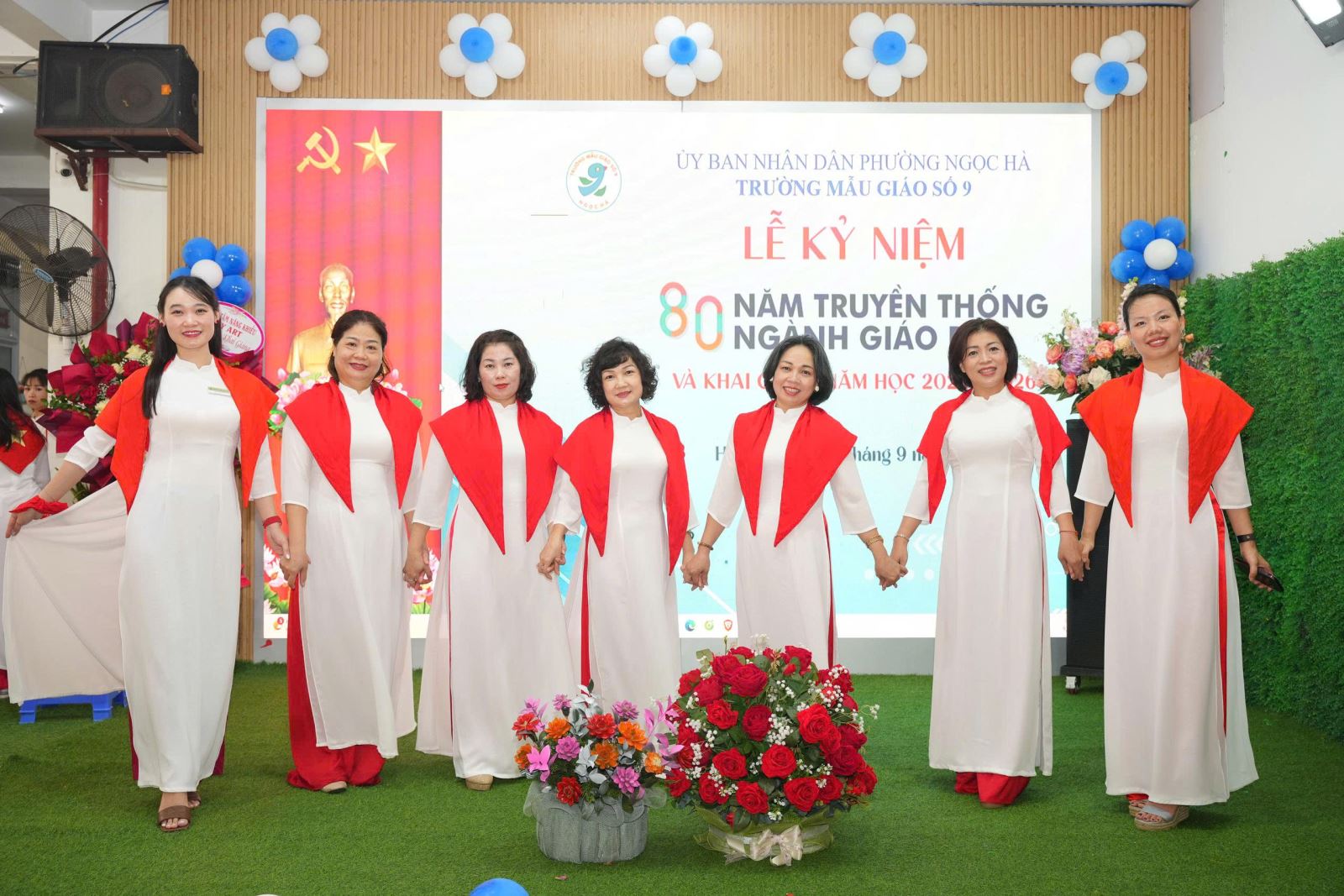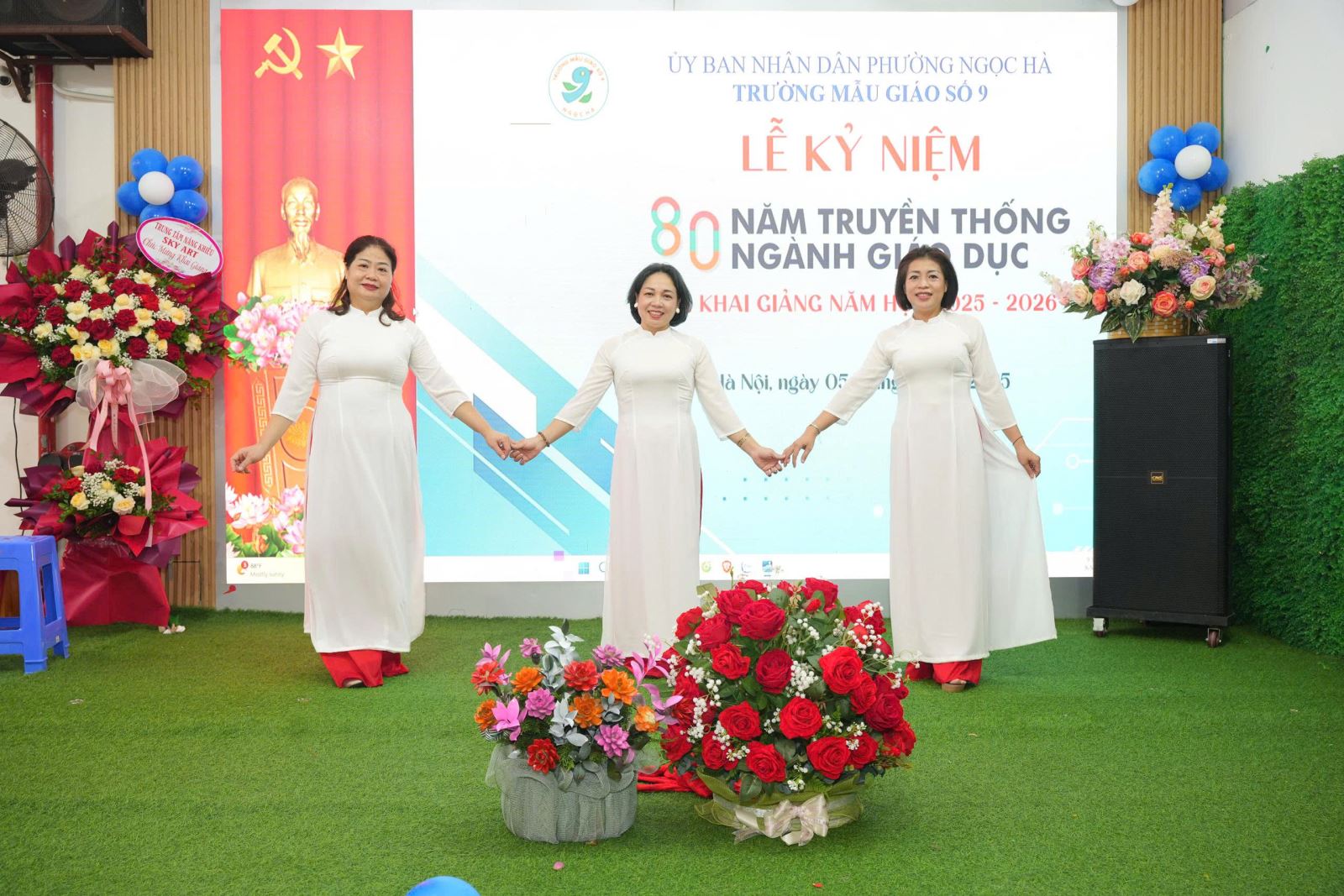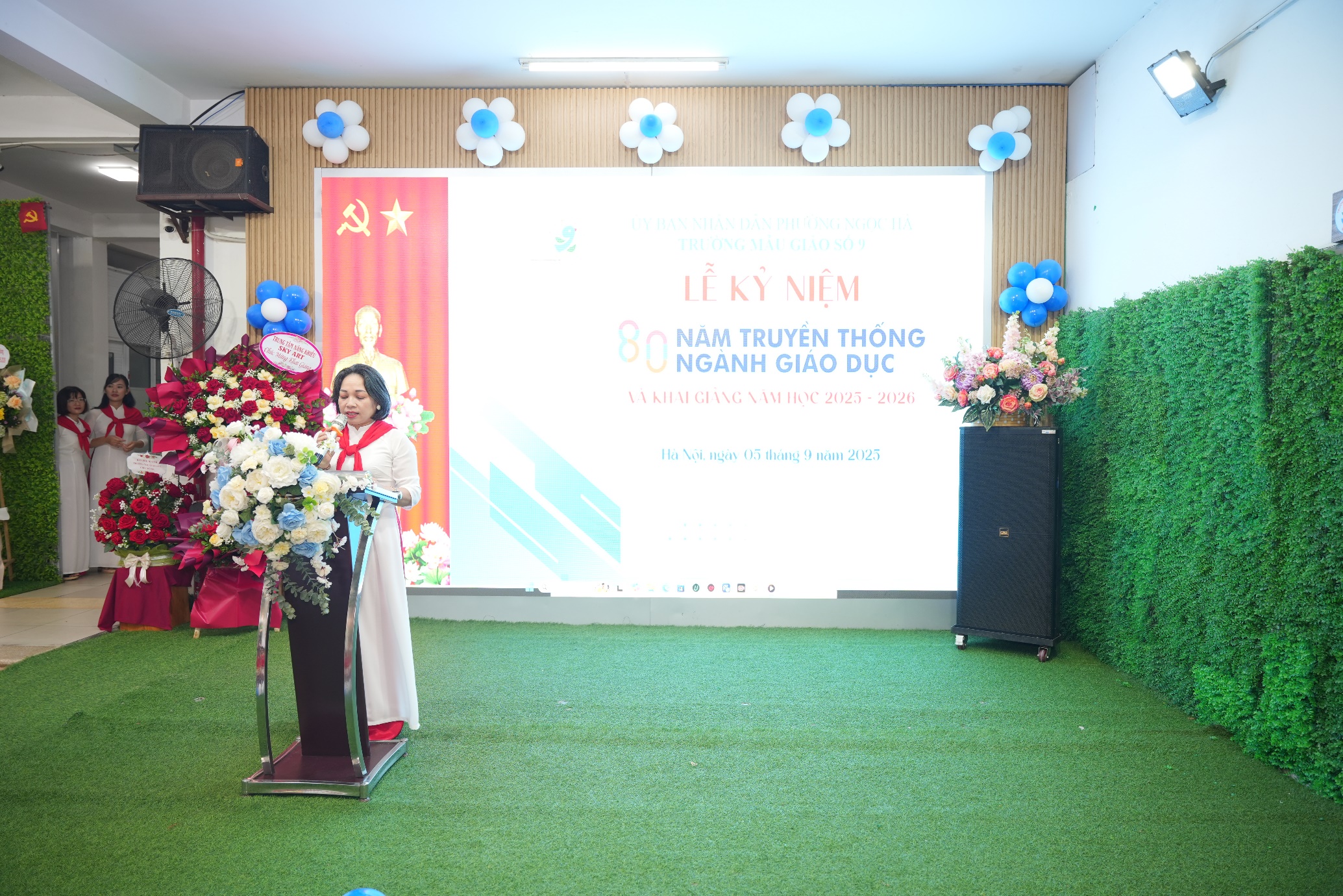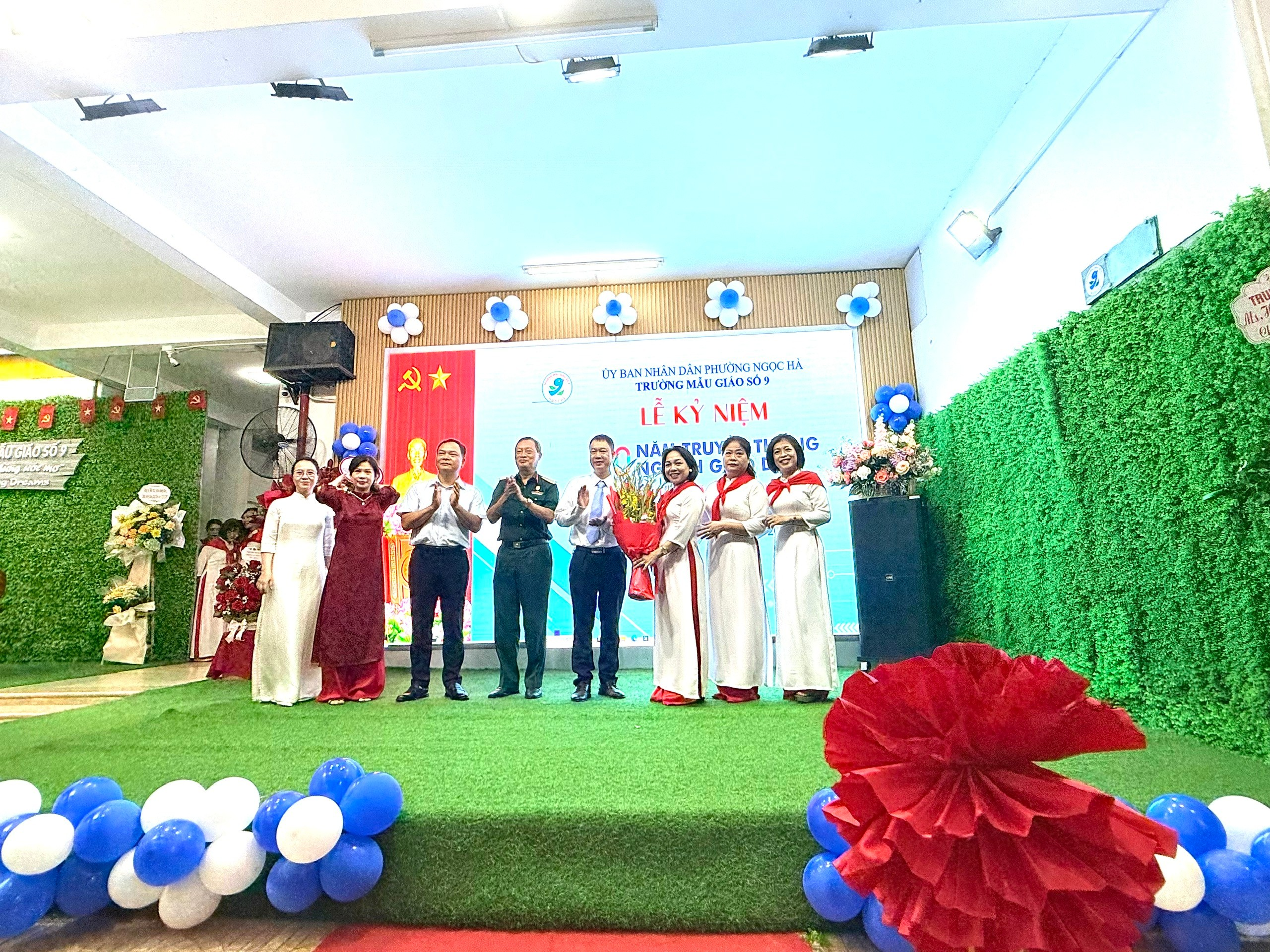 Buổi lễ càng thêm ý nghĩa khi nhà trường vinh dự được đón tiếp các vị đại biểu từ lãnh đạo phường Ngọc Hà và Ban phụ huynh học sinh. Những lẵng hoa tươi thắm, những lời chúc mừng chân thành là nguồn động viên to lớn, tiếp thêm sức mạnh để thầy và trò Trường Mẫu giáo Số 9 hoàn thành xuất sắc nhiệm vụ của năm học mới.
