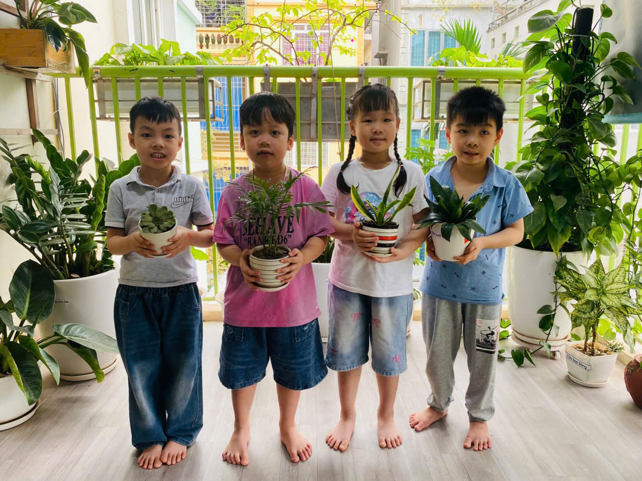 Những chậu cây nhỏ xinh ngoài ban công lớp học đã được các con tự tay chăm sóc, tưới mát đang lớn lên mỗi ngày chính là minh chứng đẹp nhất cho sự gắn kết giữa trẻ thơ và thiên nhiên với niềm tin mỗi mầm xanh lớn lên sẽ giúp Trái đất thêm khỏe mạnh. Mỗi hành động nhỏ hôm nay là một hạt giống hy vọng cho một hành tinh xanh tươi mai sau.