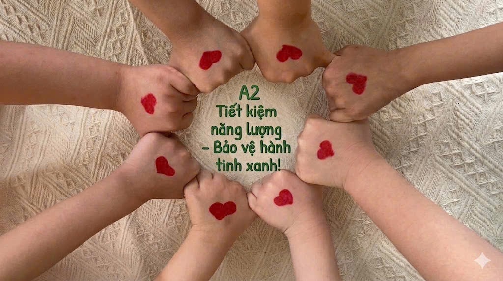 Hoạt động kết thúc đầy cảm xúc khi các con cùng nhau tô điểm những trái tim đỏ thắm lên bàn tay. Mỗi trái tim là một lời hứa, một sự cam kết bảo vệ môi trường. Những bàn tay nhỏ bé xếp thành vòng tròn, cùng nhau truyền đi thông điệp mạnh mẽ "Tiết kiệm năng lượng - Bảo vệ hành tinh xanh"
