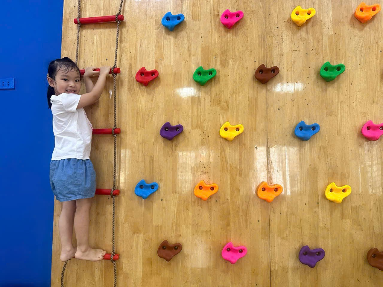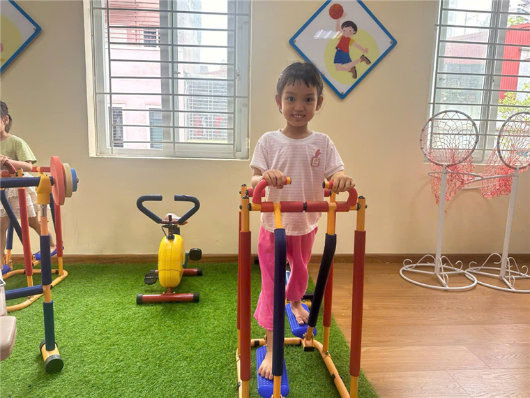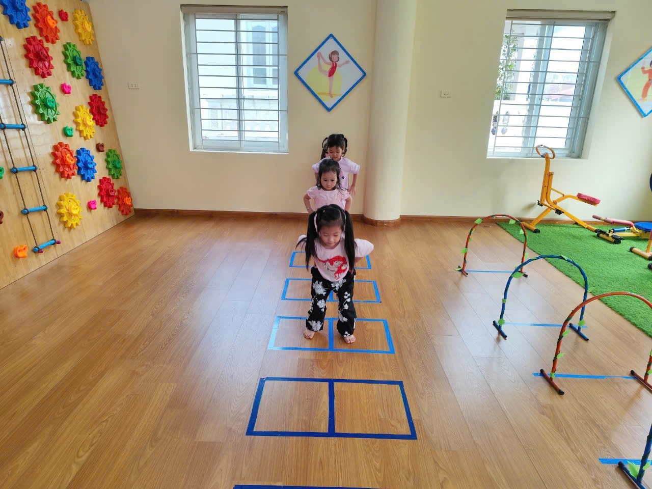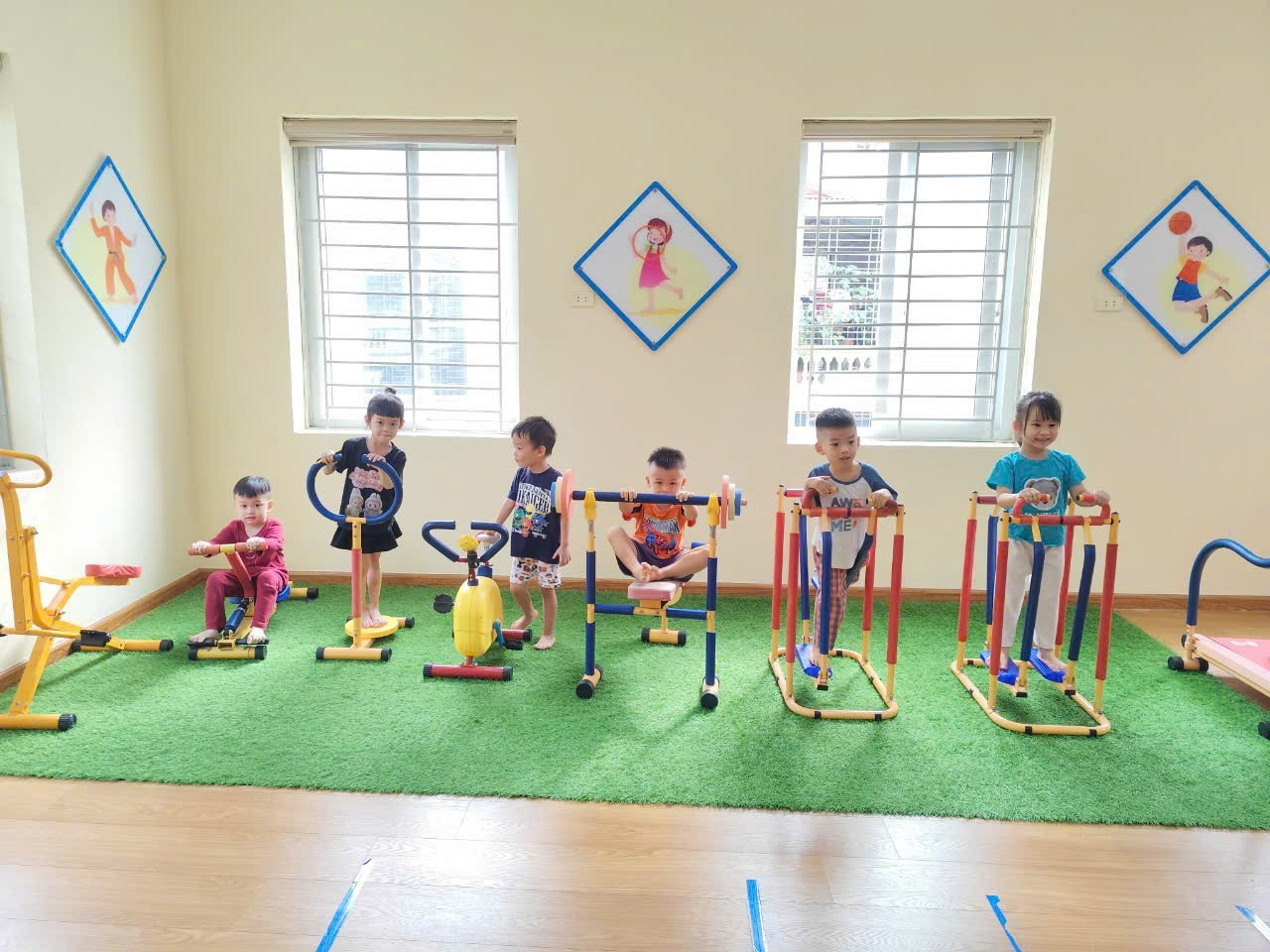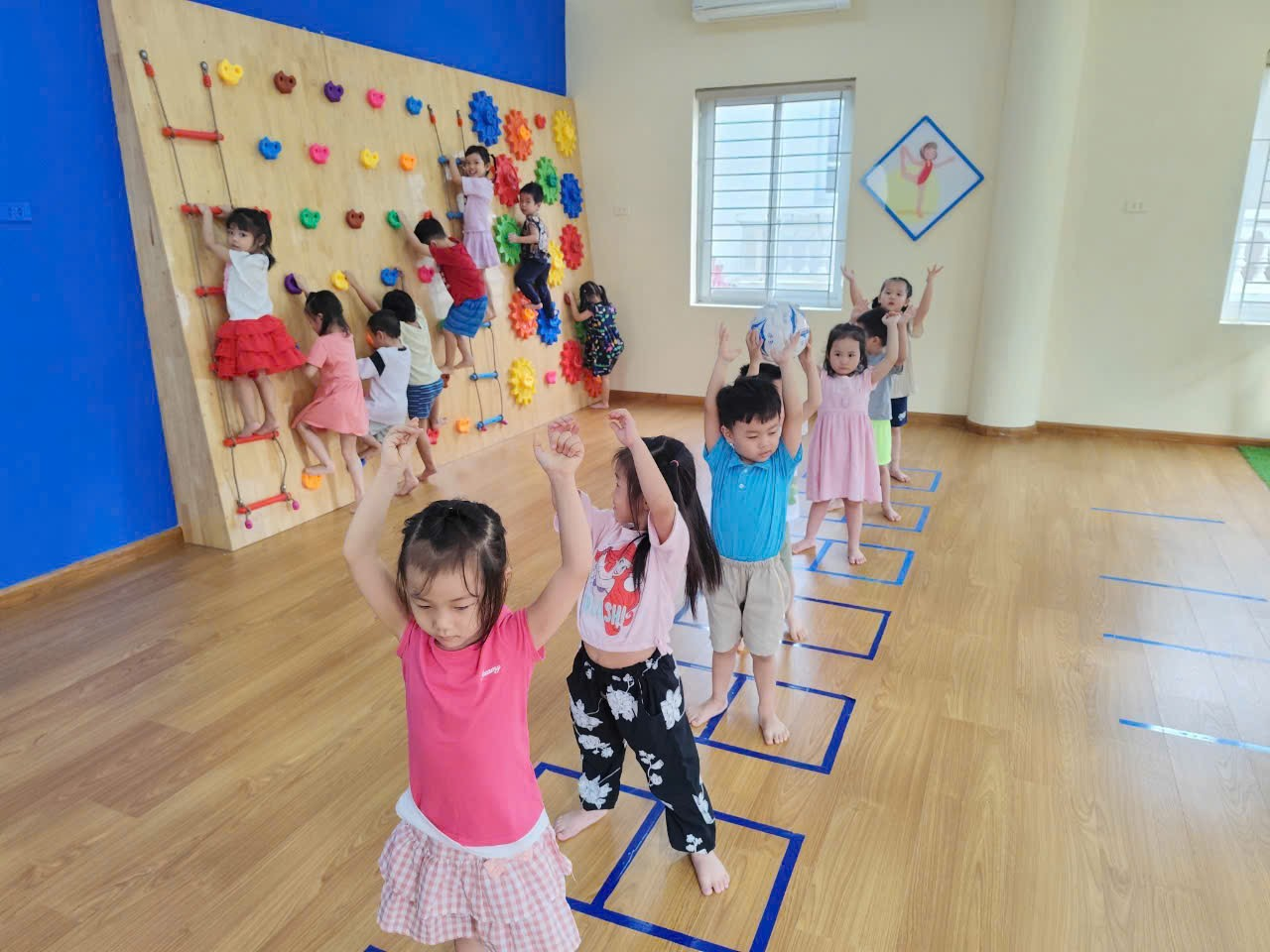 Sau những giờ hoạt động nghệ thuật đầy màu sắc, các bé lớp MGN B1 lại hào hứng chuyển sang phòng chức năng Thể chất. Không gian rộng rãi với nhiều trang thiết bị vận động an toàn và hấp dẫn như leo núi, ném bóng, chui qua cổng, bóng, vòng... tạo điều kiện cho các bé thỏa sức vận động và rèn luyện sức khỏe.
