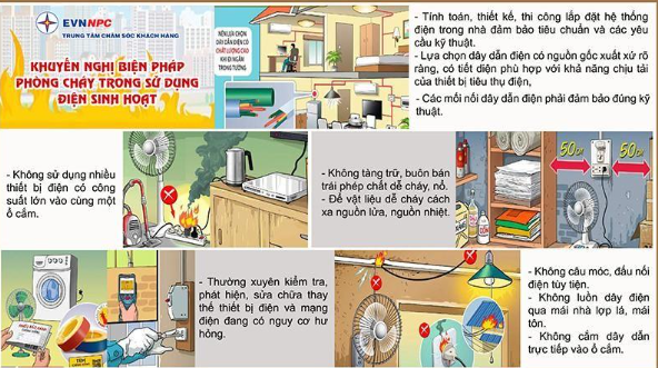 2. Không câu móc điện tùy tiện; không để hàng hóa, vật dụng dễ cháy gần các thiết bị điện sinh nhiệt; thường xuyên kiểm tra, sửa chữa, thay thế thiết bị điện và mạng điện hư hỏng;