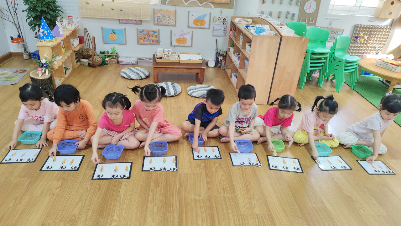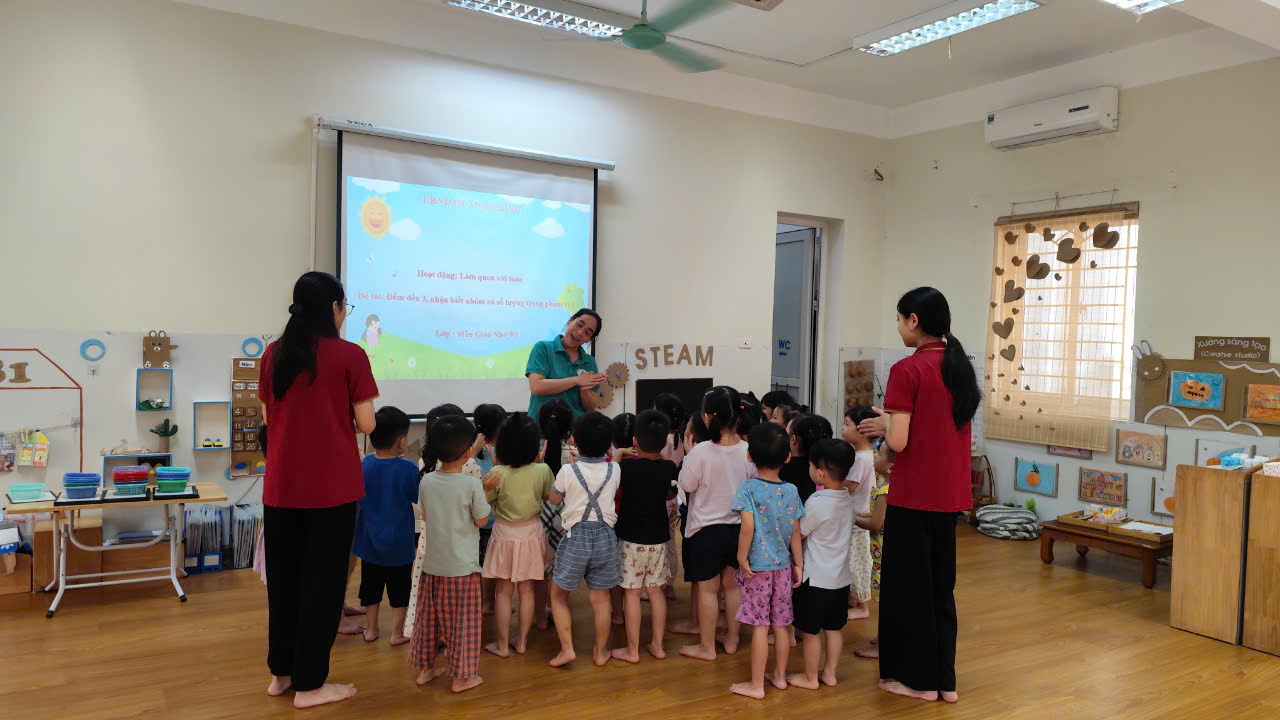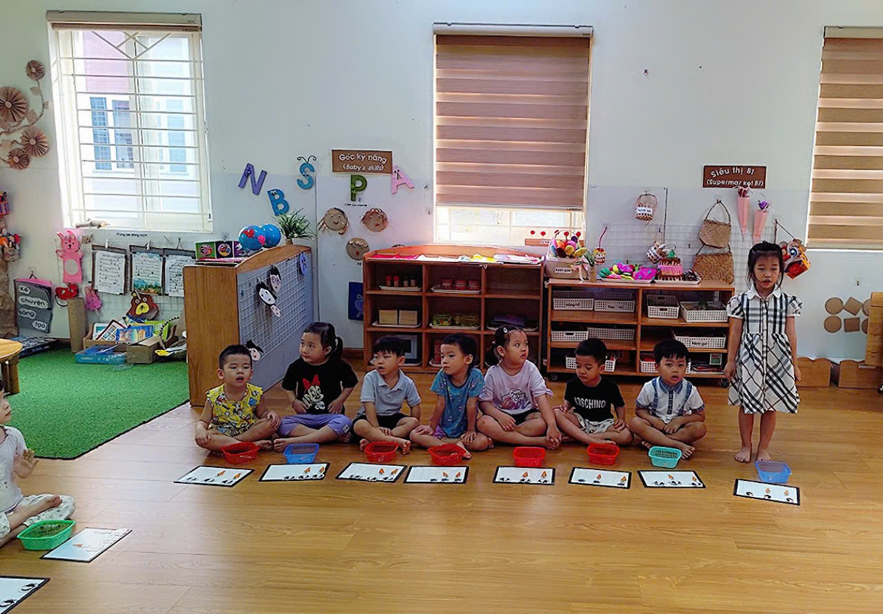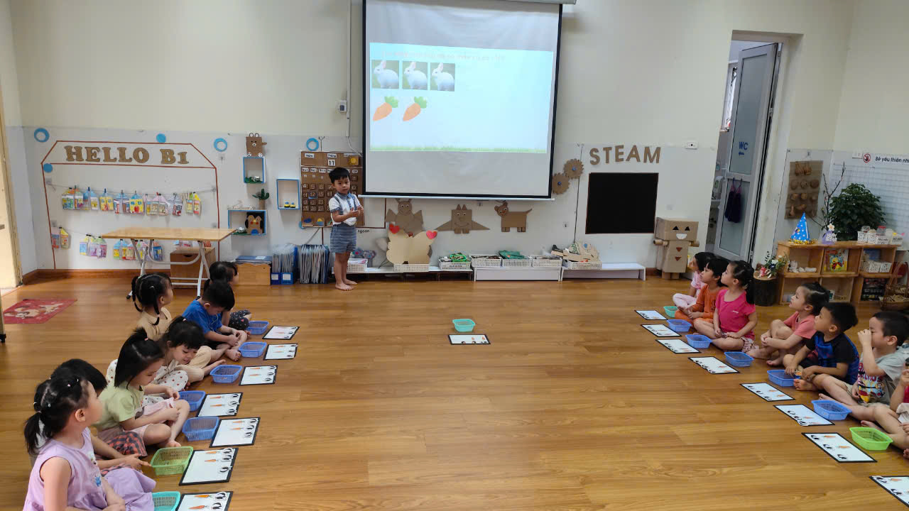 Trong giờ học, trẻ được cô giáo hướng dẫn cụ thể, chính xác về cách đếm, số lượng, chữ số hay nhận biết các hình dạng hay nhận biết về không gian thời gian. Sau đó, trẻ còn được tham gia vào các trò chơi vui nhộn, bằng phương pháp học bằng chơi, chơi mà học như vậy trẻ tiếp thu kiến thức một cách tự nhiên, không gò bó, làm tăng thêm vốn hiểu biết của trẻ, đồng thời trẻ thể hiện vốn hiểu biết giúp giáo viên lựa chọn nội dung, củng cố kiến thức phù hợp với khả năng của trẻ.