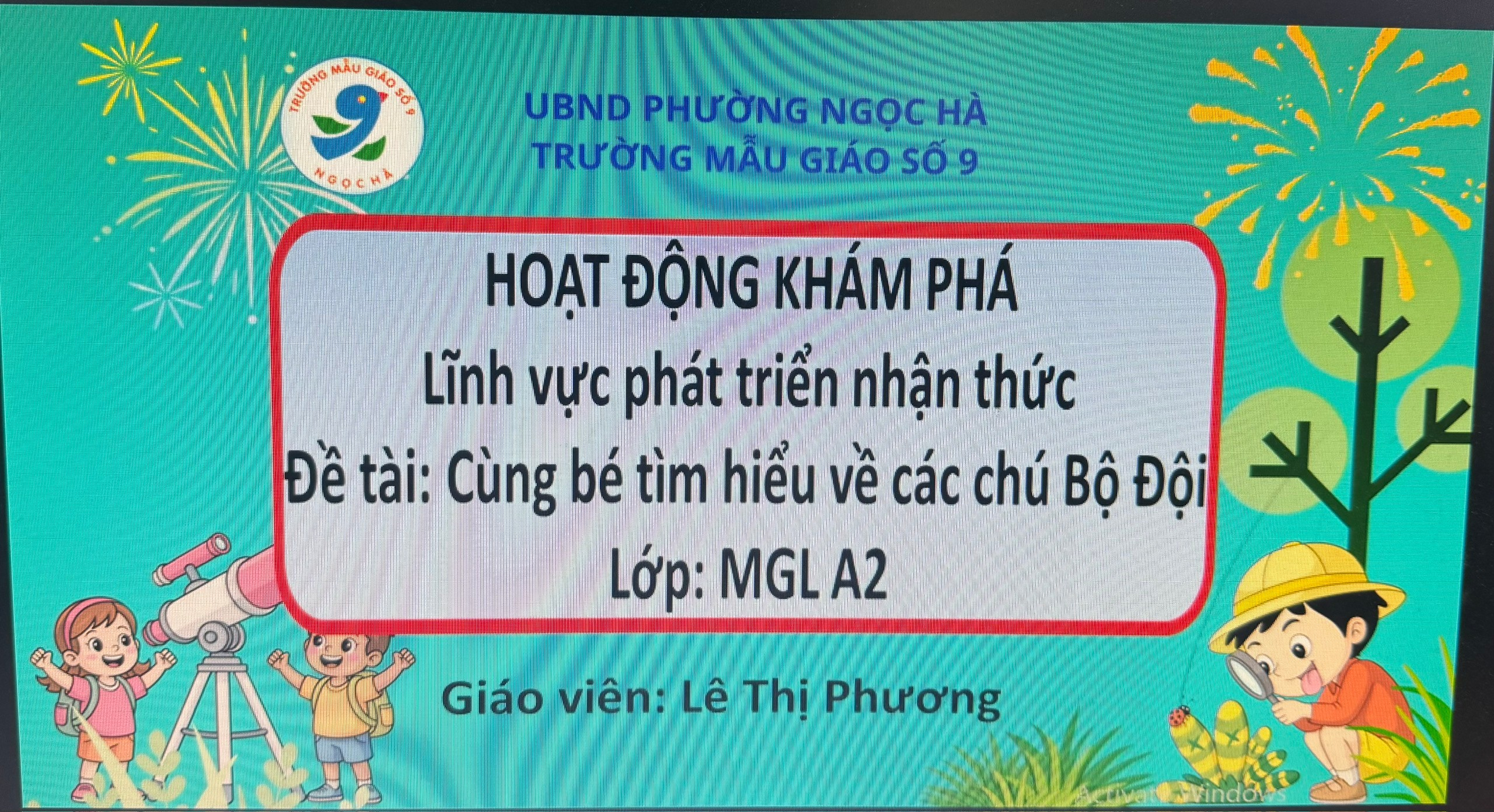 Thông qua các hoạt động như trò chuyện, xem tranh ảnh, video về hình ảnh người lính, các cô giáo lớp A2 đã giúp các con hiểu được công việc, nhiệm vụ của các chú bộ đội trong việc bảo vệ Tổ quốc, giữ gìn bình yên cho nhân dân. Những câu chuyện giản dị, gần gũi đã khơi dậy trong trẻ sự kính trọng và tình cảm yêu mến đối với các chú Bộ Đội.