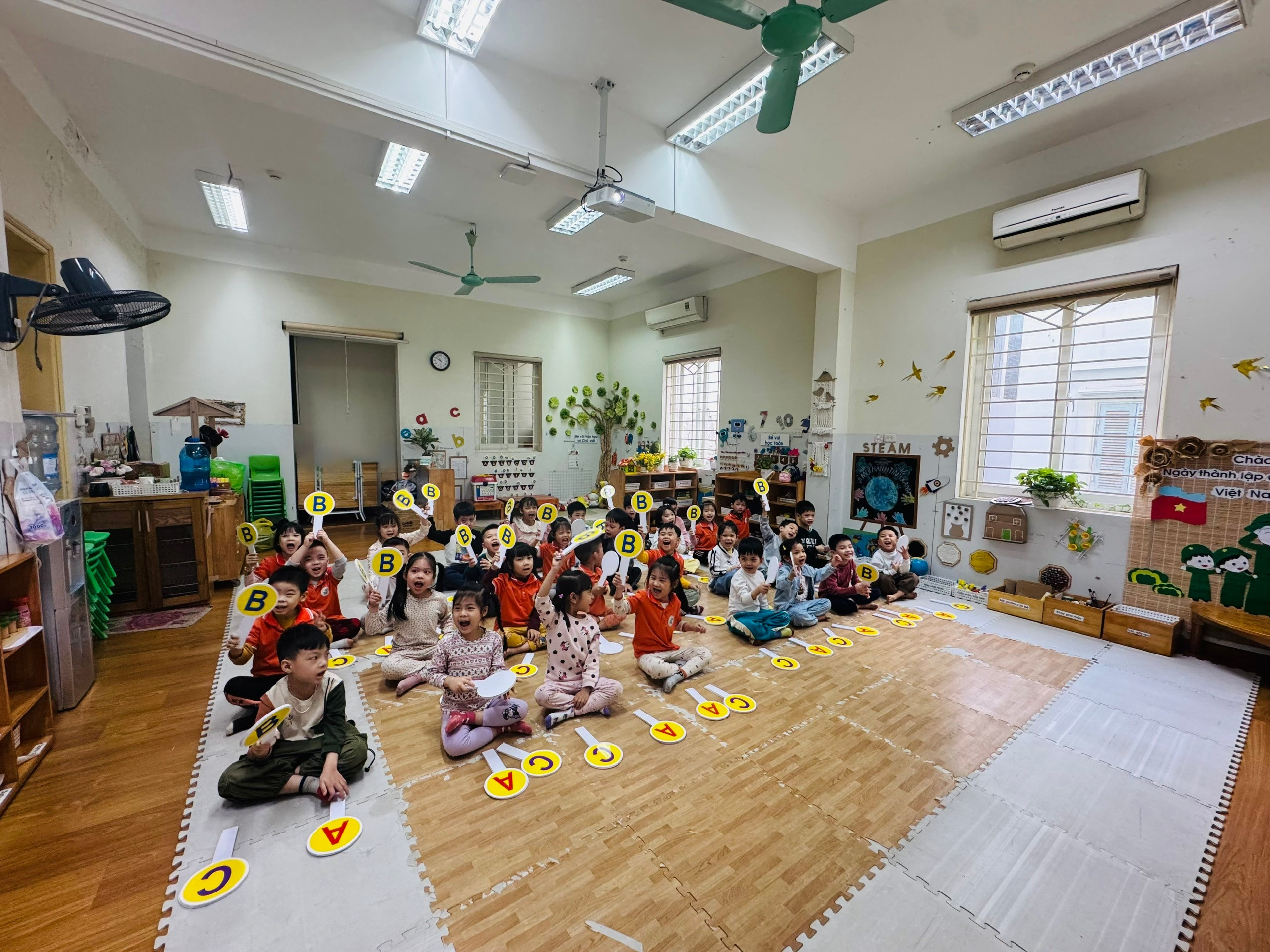 Các bạn nhỏ lớp MGL A2 hào hứng tham gia trò chơi tìm hiểu về các chú Bộ Đội.