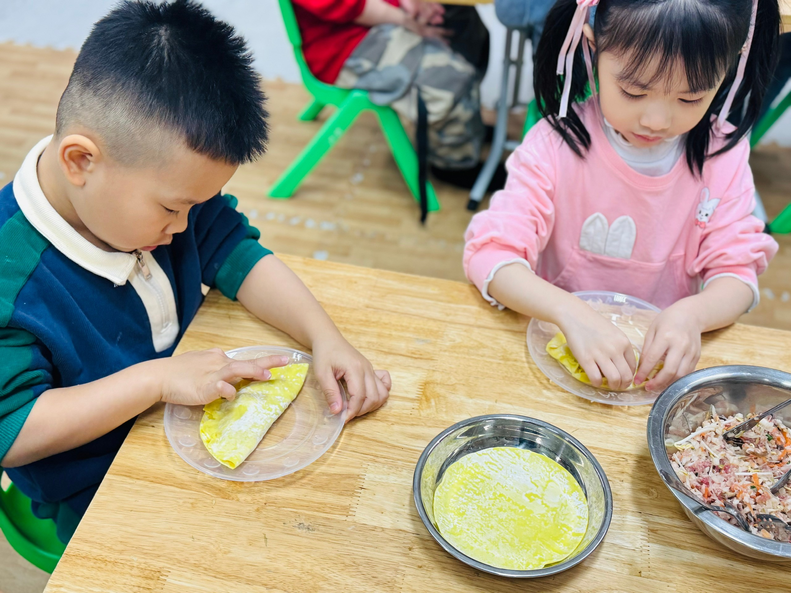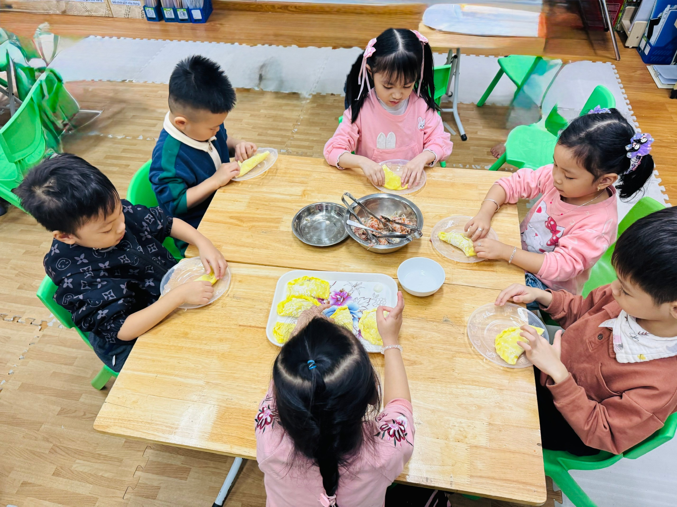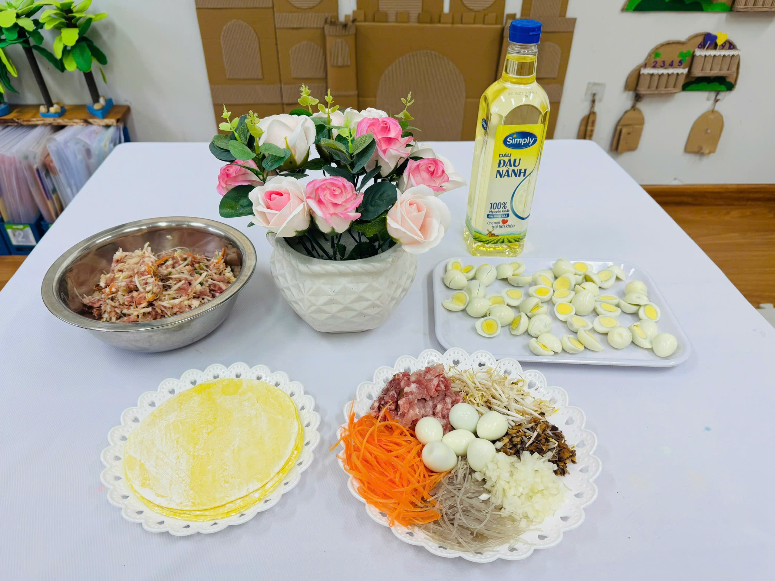 Hôm nay các cô giáo lớp MGL A2 đã cho các bé trải nghiệm, thực hành hoạt động bé tập làm nội trợ “Làm bánh gối". Các cô đã chuẩn bị cho chúng mình những nguyên liệu: Thịt nạc vai xay nhỏ, miến ngâm mềm, cắt ngắn, mộc nhĩ; nấm hương ngâm mềm thái nhỏ, trứng cút đã luộc và các bạn nỏ sẽ bóc vỏ, Hành Tây…Và không thể thiếu là vỏ bánh gối màu vàng đã được xếp ngay ngắn, sẵn sàng để các bé trổ tài.