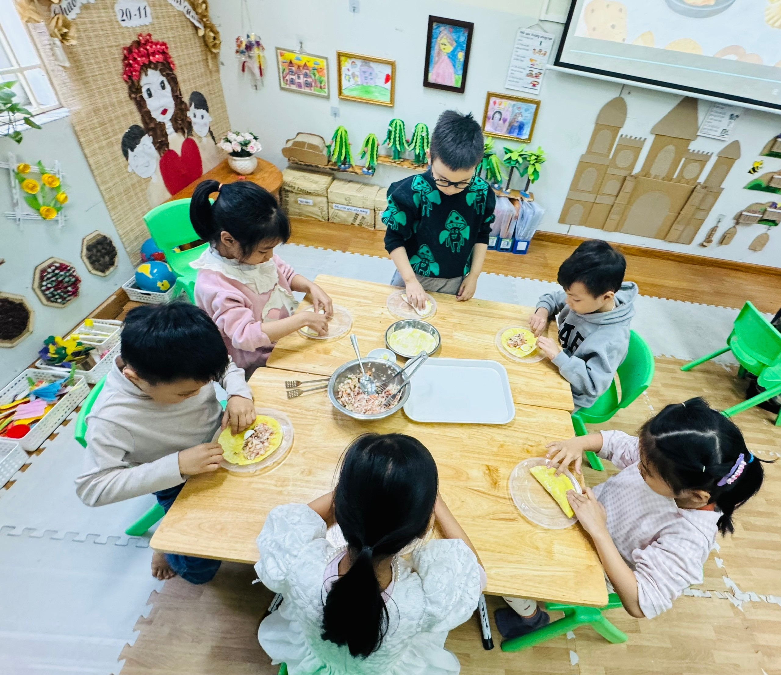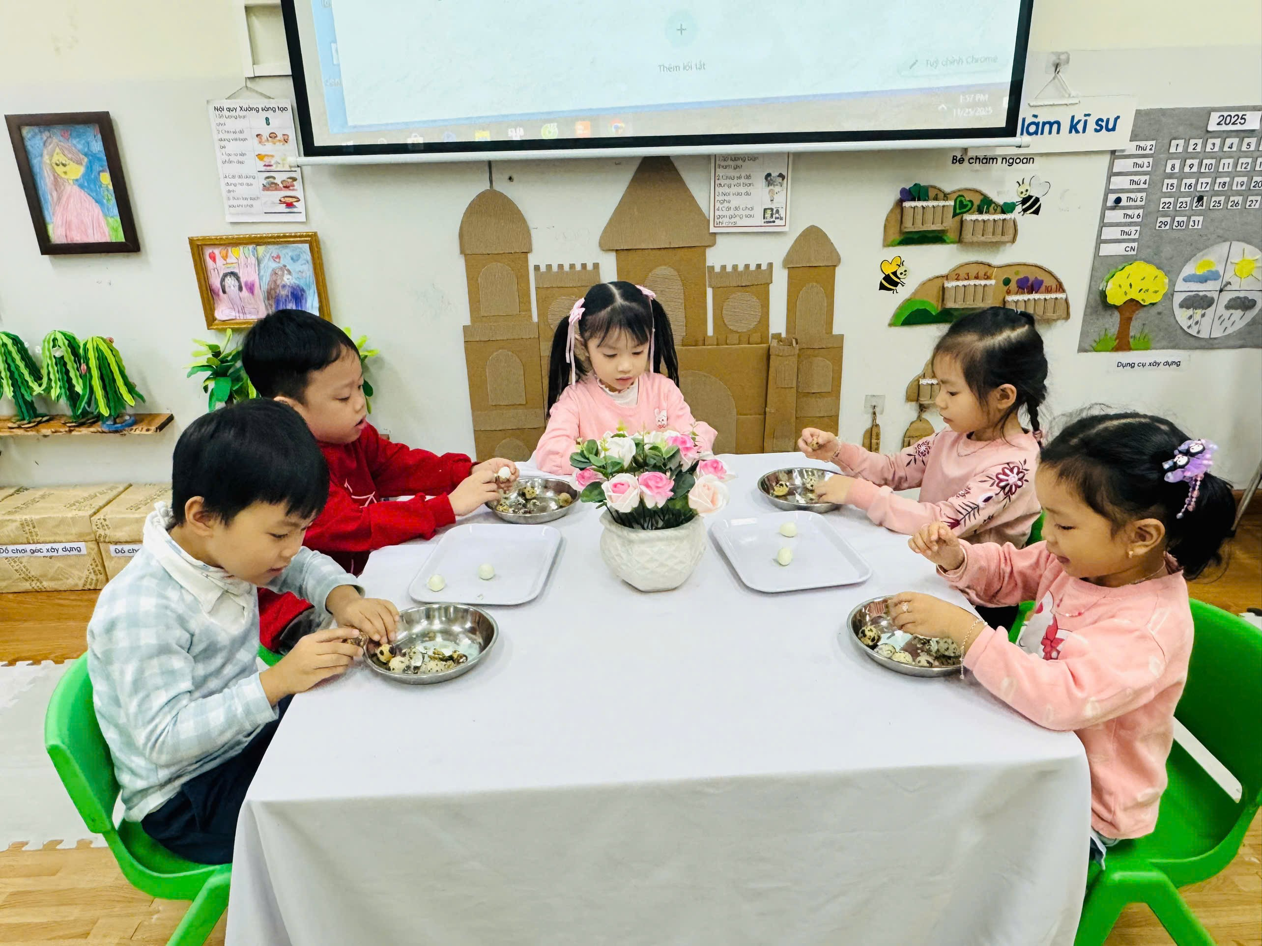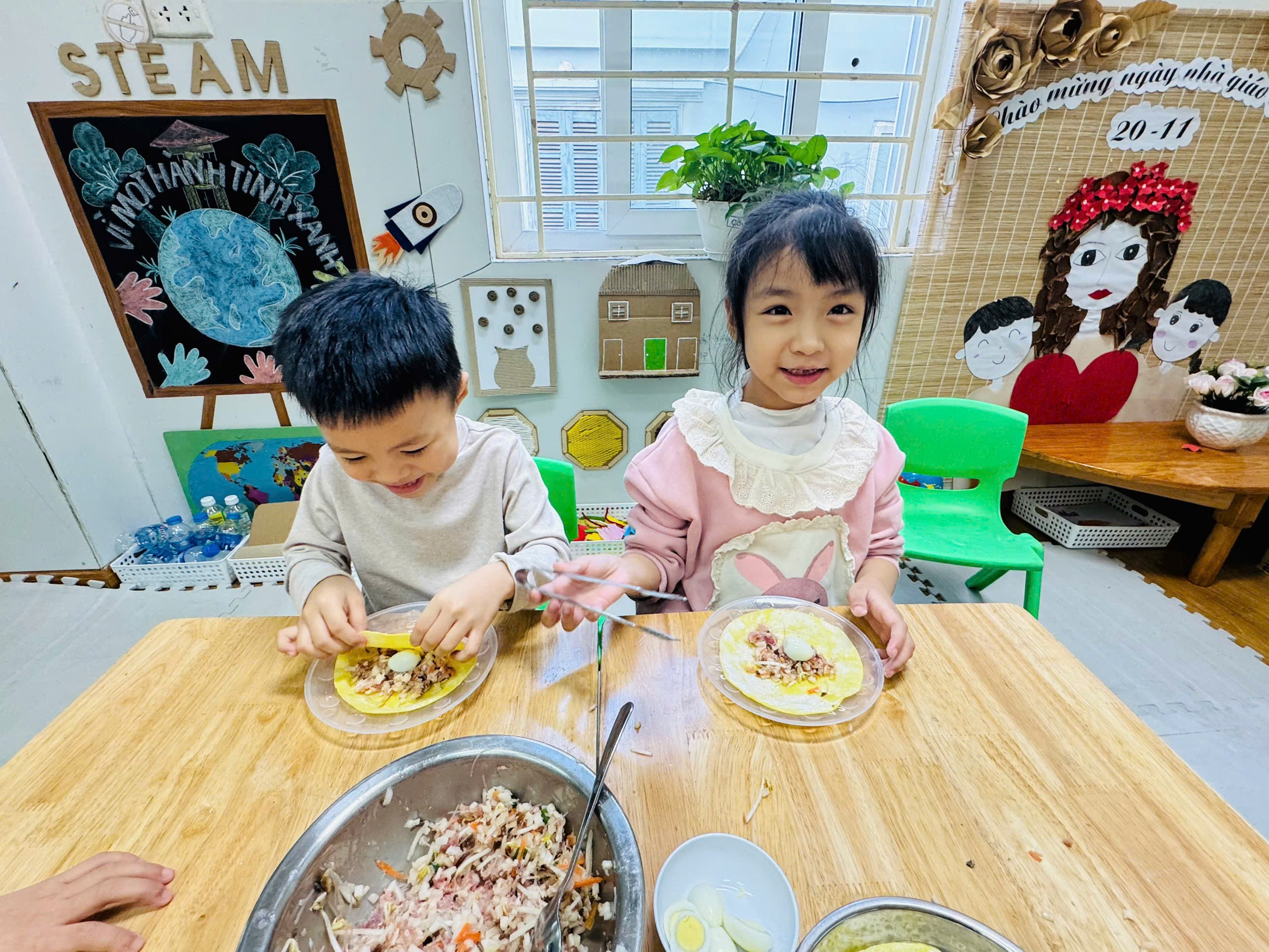 Hôm nay các cô giáo lớp MGL A2 đã cho các bé trải nghiệm, thực hành hoạt động bé tập làm nội trợ “Làm bánh gối". Các cô đã chuẩn bị cho chúng mình những nguyên liệu: Thịt nạc vai xay nhỏ, miến ngâm mềm, cắt ngắn, mộc nhĩ; nấm hương ngâm mềm thái nhỏ, trứng cút đã luộc và các bạn nỏ sẽ bóc vỏ, Hành Tây…Và không thể thiếu là vỏ bánh gối màu vàng đã được xếp ngay ngắn, sẵn sàng để các bé trổ tài.