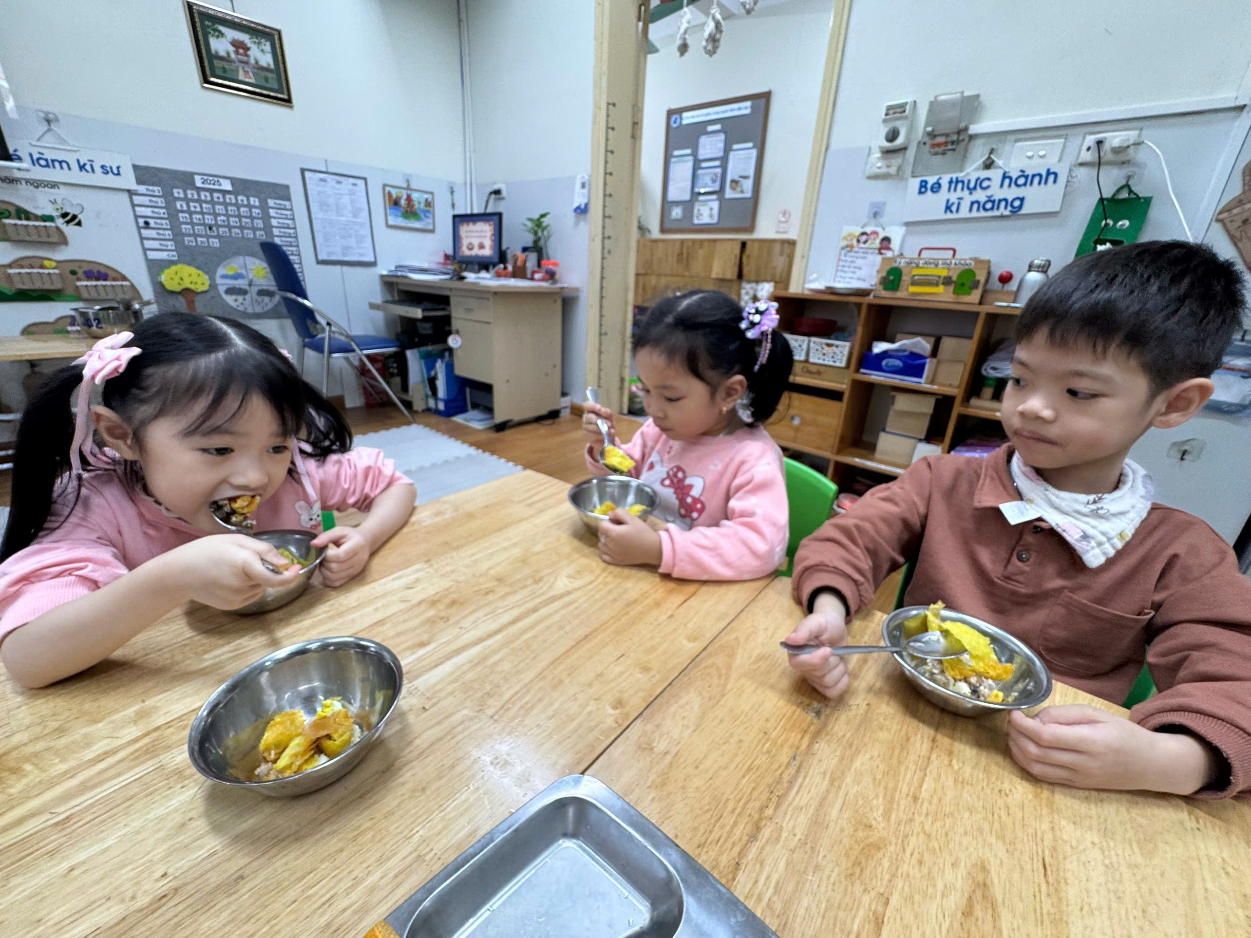 Các bạn nhỏ lớp MGL A2 rất vui khi được thưởng thức những chiếc bánh Gối. Qua hoạt động này các bé lớp MGL A2 không chỉ học được về việc tự chăm sóc bản thân mà còn phát triển kỹ năng xã hội và tinh thần tự lập đấy. Ngắm nhìn những nự cười vui vẻ của các con khi thưởng thúc những chiếc bánh Gối mình làm là niềm hạnh phúc của các cô, chúc các bé yêu A2 ngon miệng.