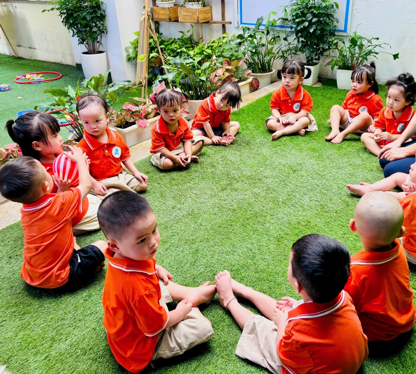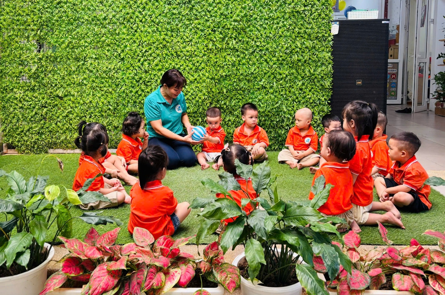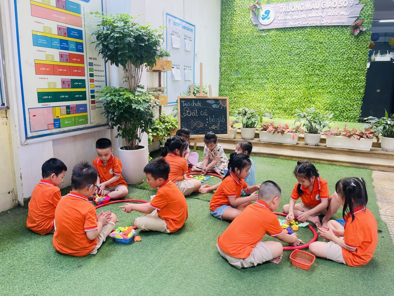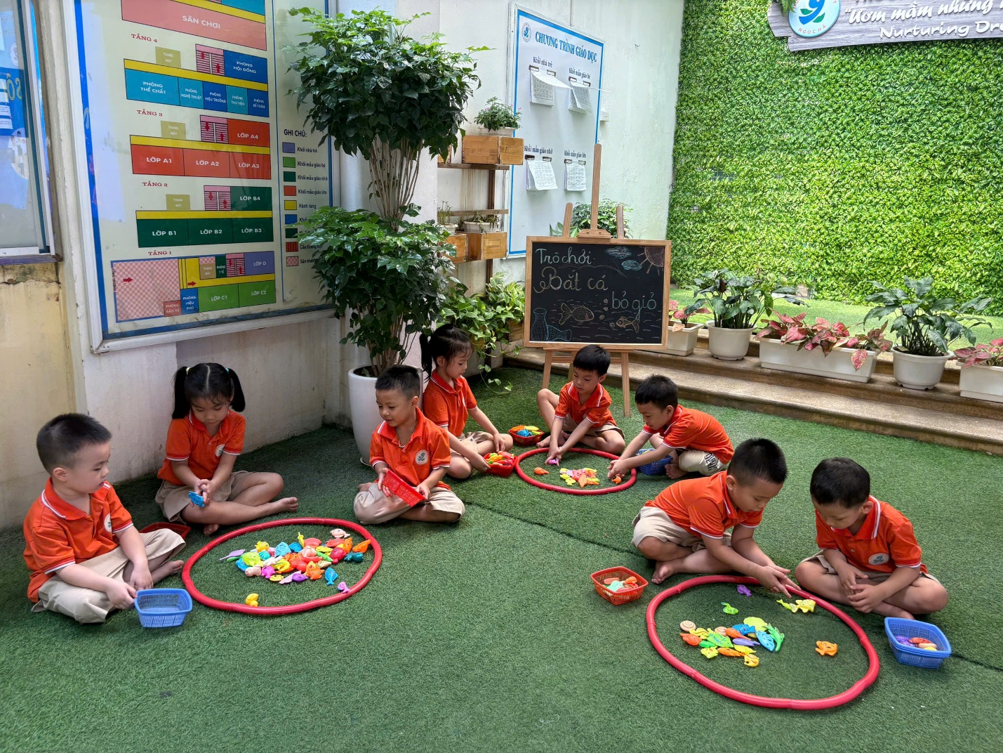 Các giáo viên luôn đồng hành, động viên từng bé, đảm bảo an toàn trong mọi hoạt động và khơi gợi tinh thần hứng khởi qua mỗi phần chơi.