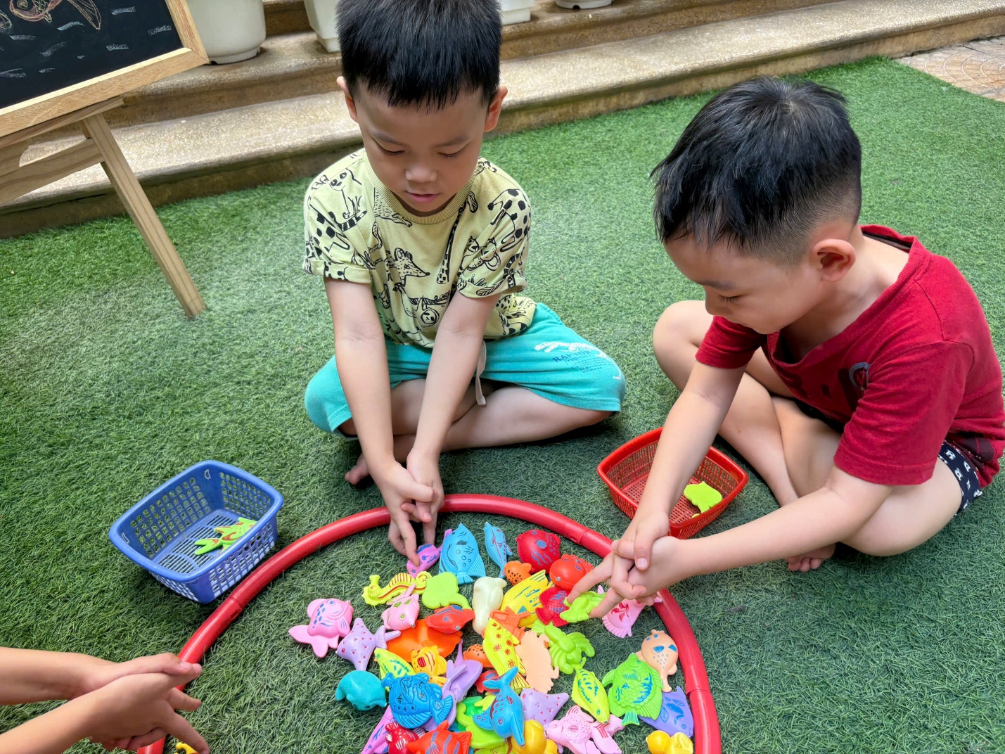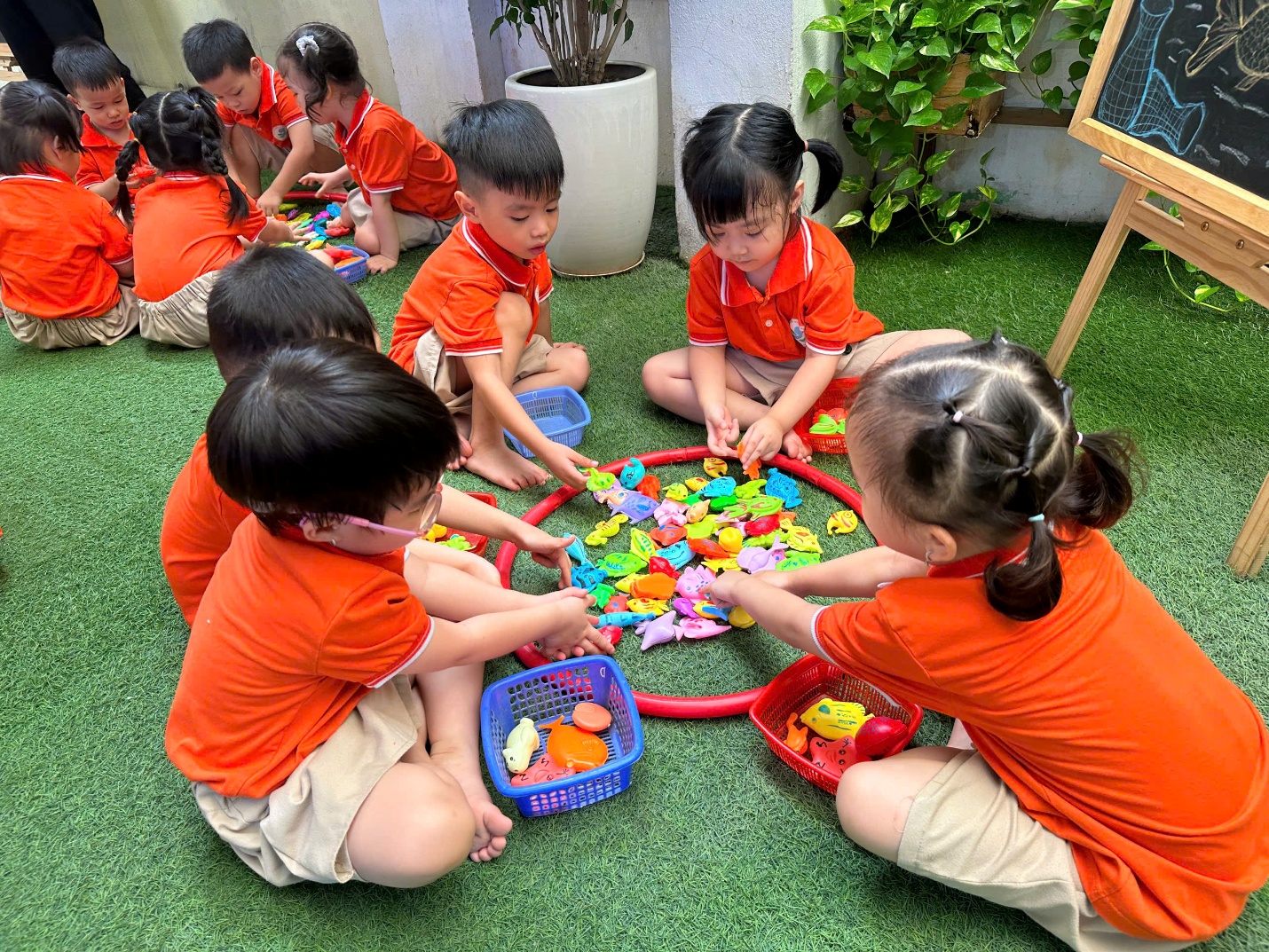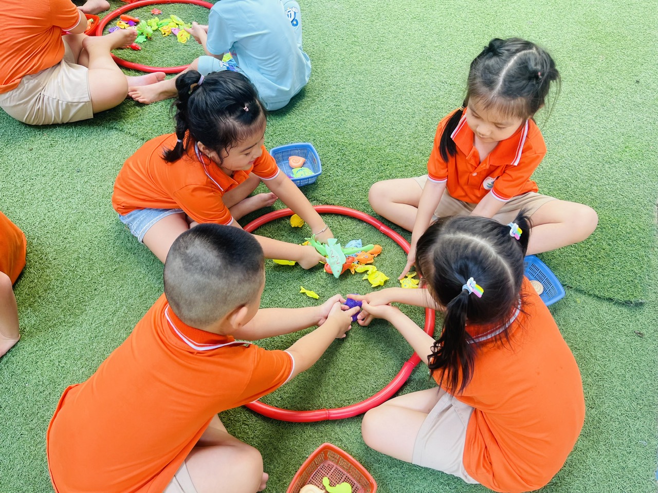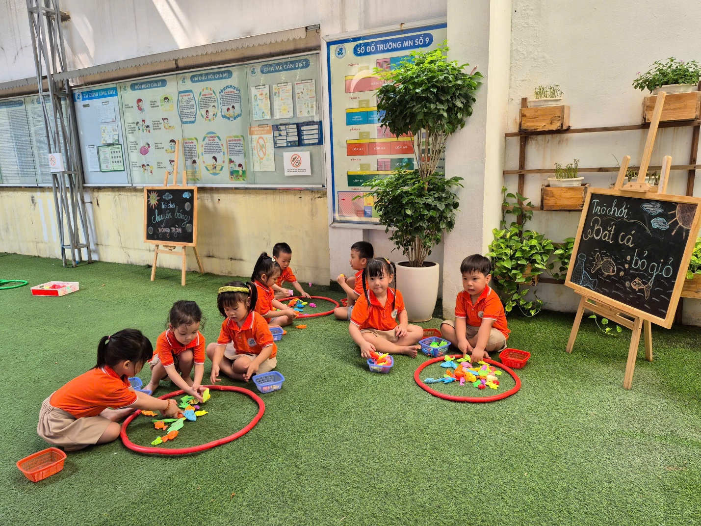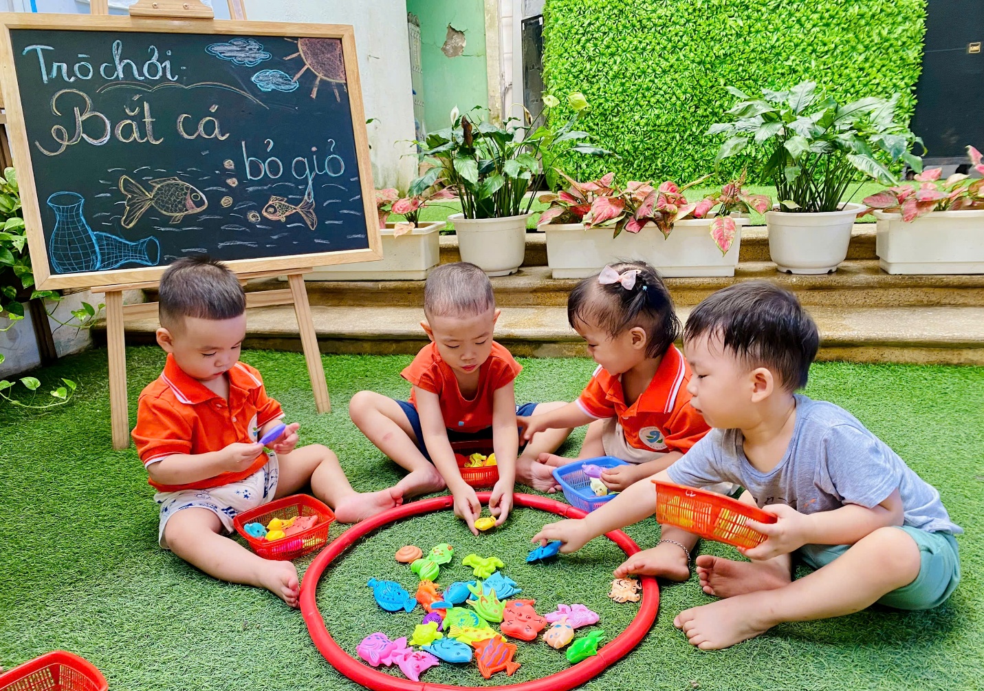 Trò chơi Bắt cá bỏ giỏ: vừa vui nhộn, vừa rèn cho trẻ sự nhanh nhẹn, tinh mắt và sự khéo léo, linh hoạt của đôi bàn tay.