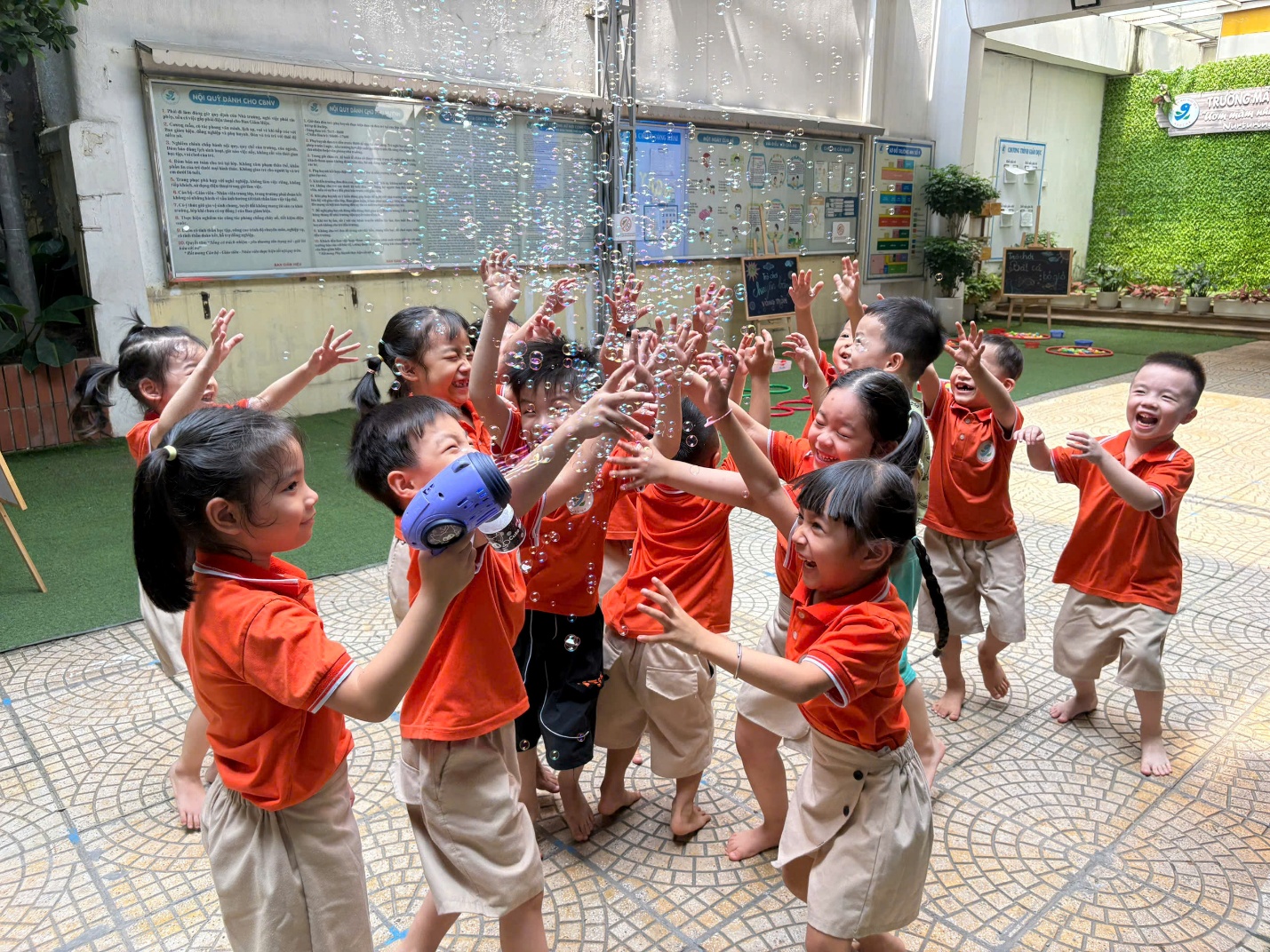 Bong bóng xà phòng nhẹ nhàng, lung linh và đầy kỳ ảo, khiến các bé thích thú chạy nhảy, thổi bong bóng và khám phá thế giới sắc màu.