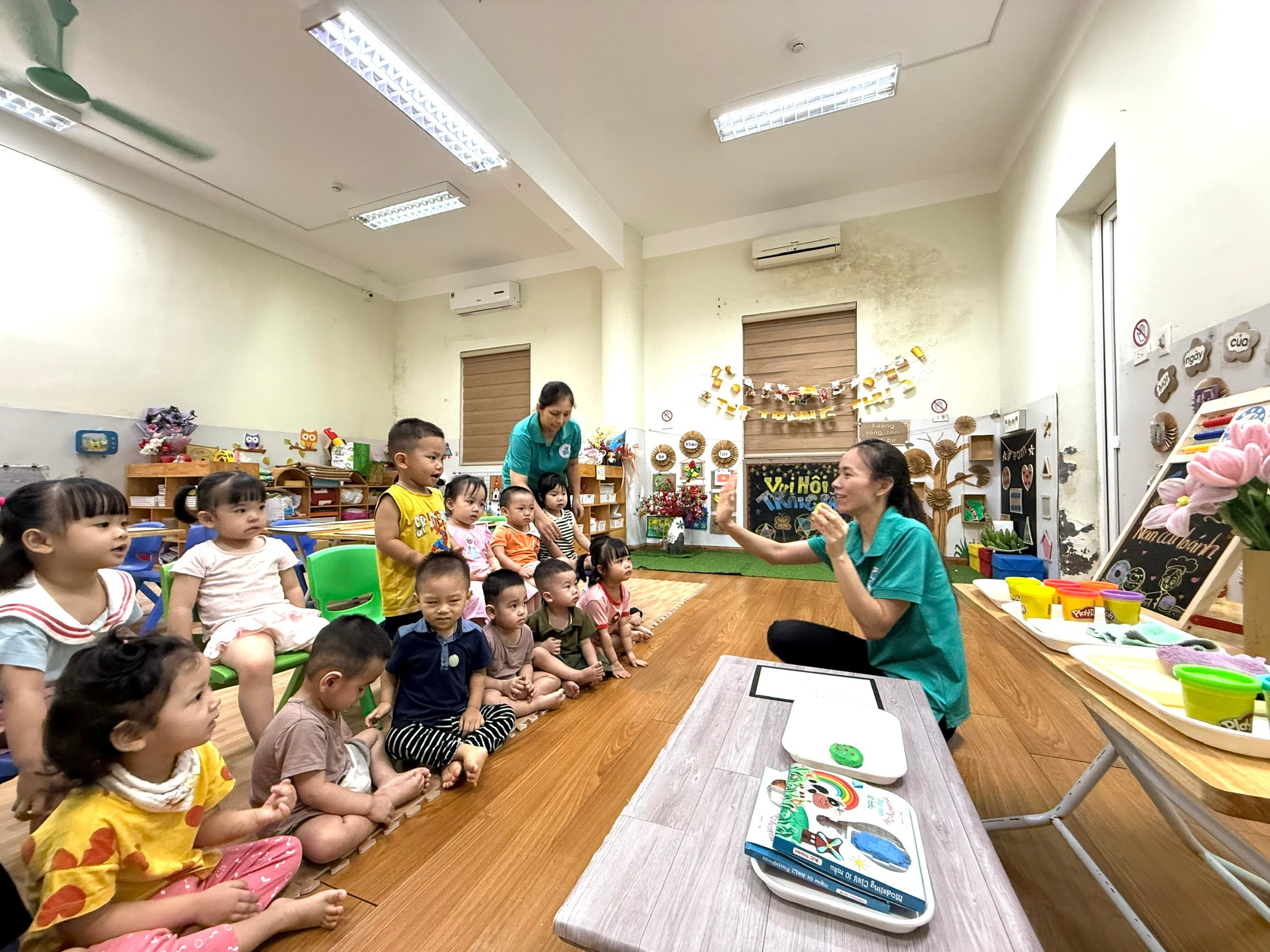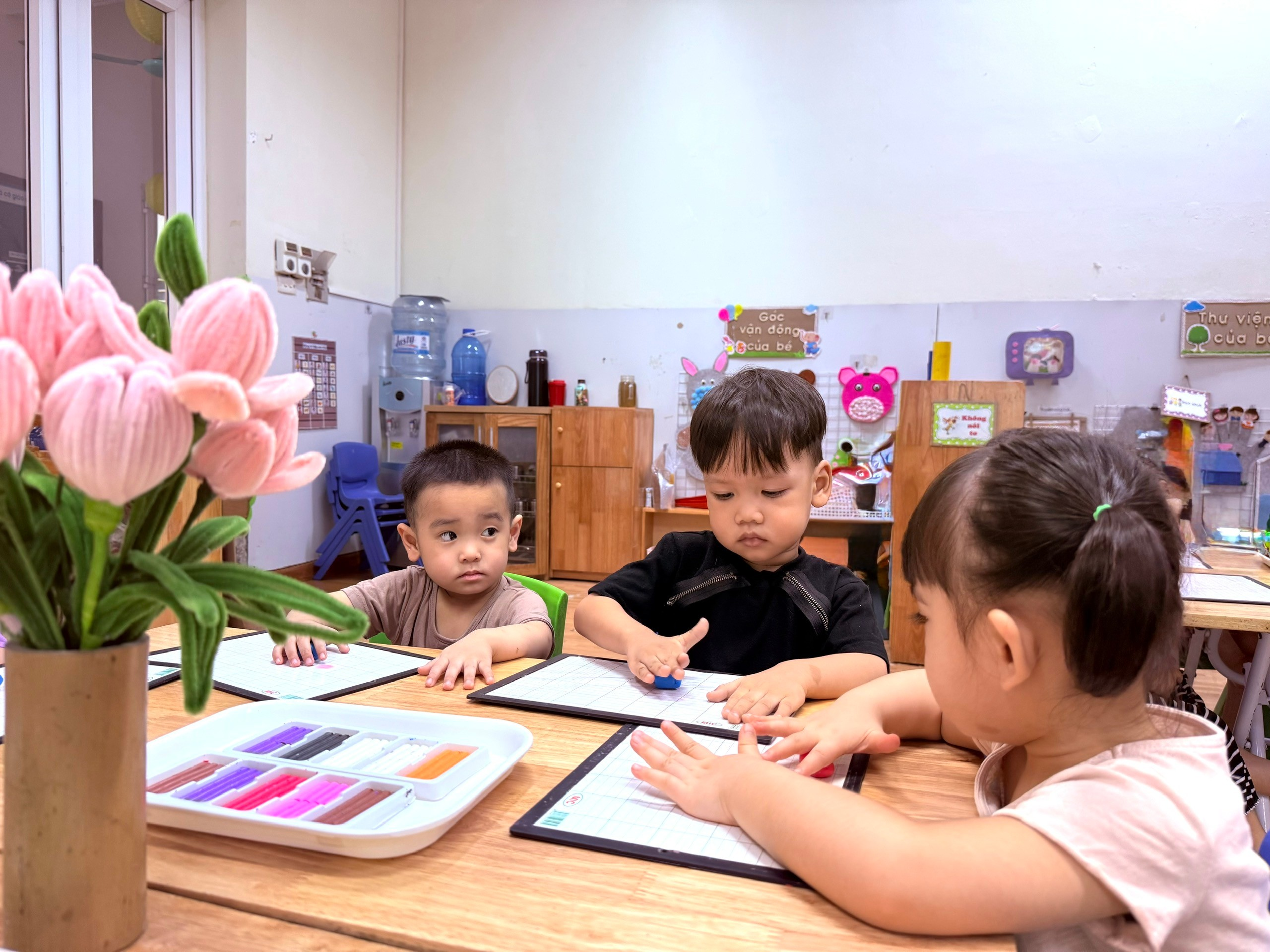 Các cô giáo của lớp D2 đã tạo cho trẻ môi trường học tập thân thiện, kích thích sự tò mò, hứng thú của trẻ, luôn hỗ trợ khi trẻ cần nhưng không làm thay trẻ.
