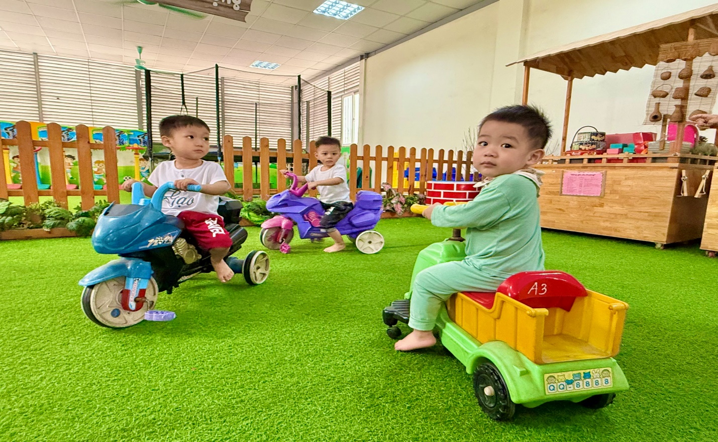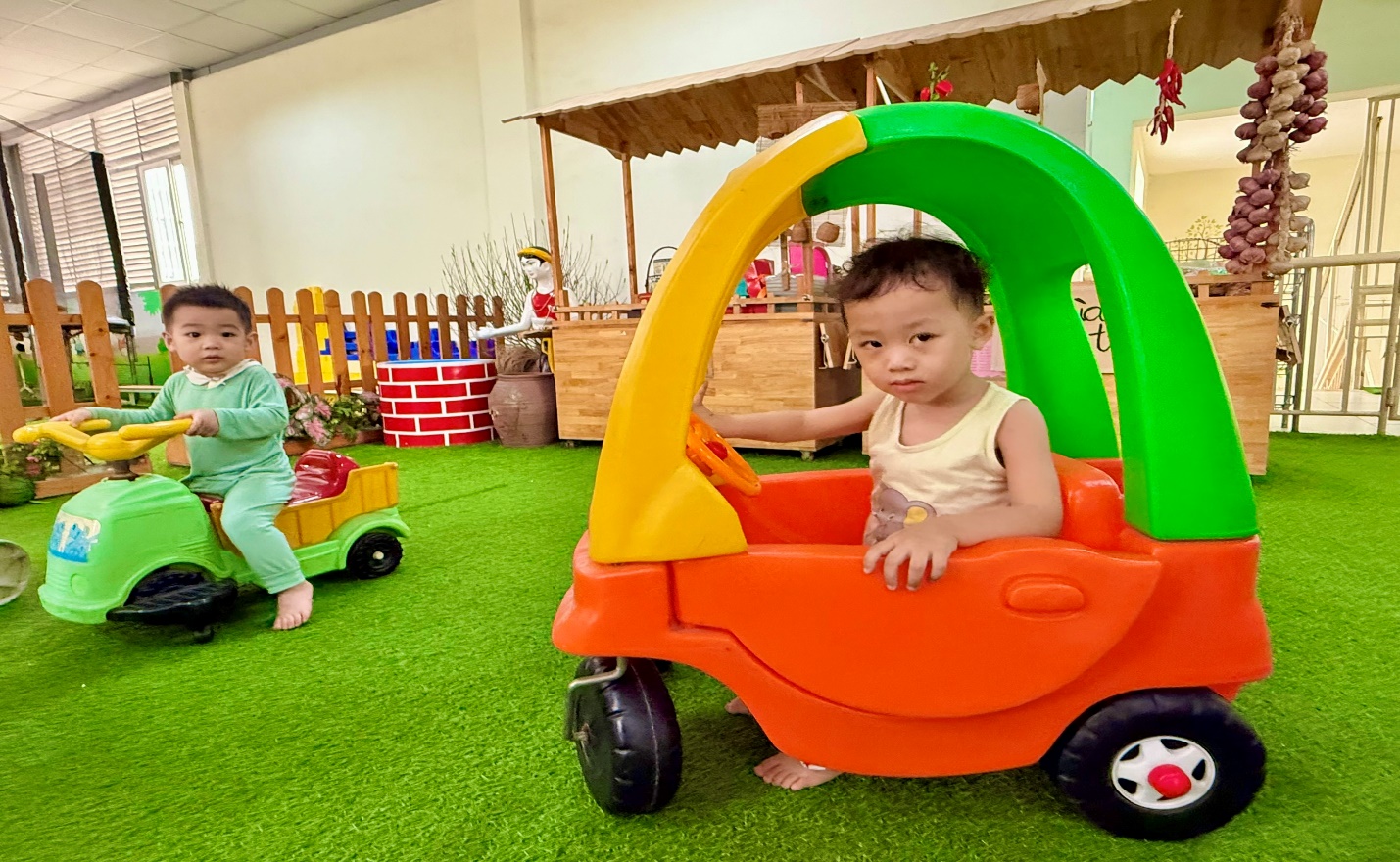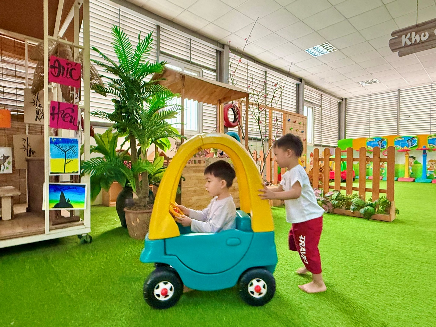 Có những bạn nhỏ lại thích thú cùng nhau đẩy xe ô tô, học cách phối hợp đồng đội và chia sẻ đồ chơi với bạn bè. Những tiếng cười giòn tan vang vọng khắp khu vườn trải nghiệm, xua tan mọi mệt mỏi và chỉ còn lại niềm hạnh phúc thuần khiết.