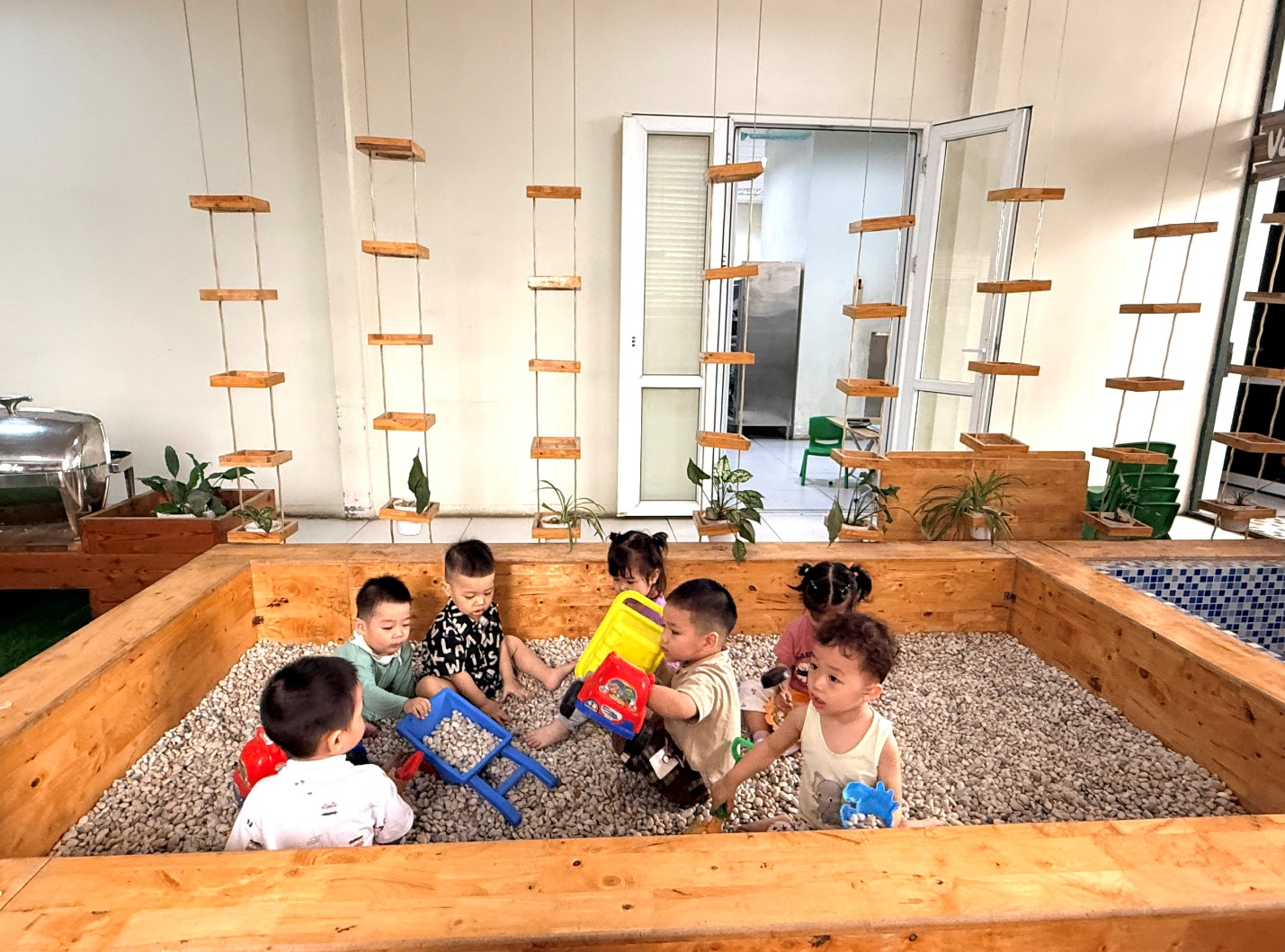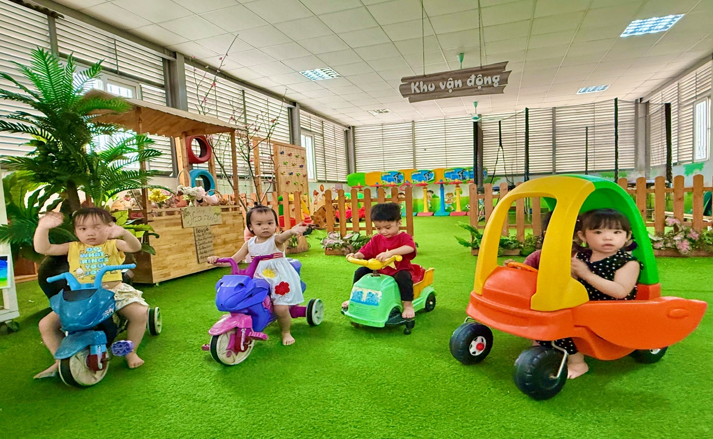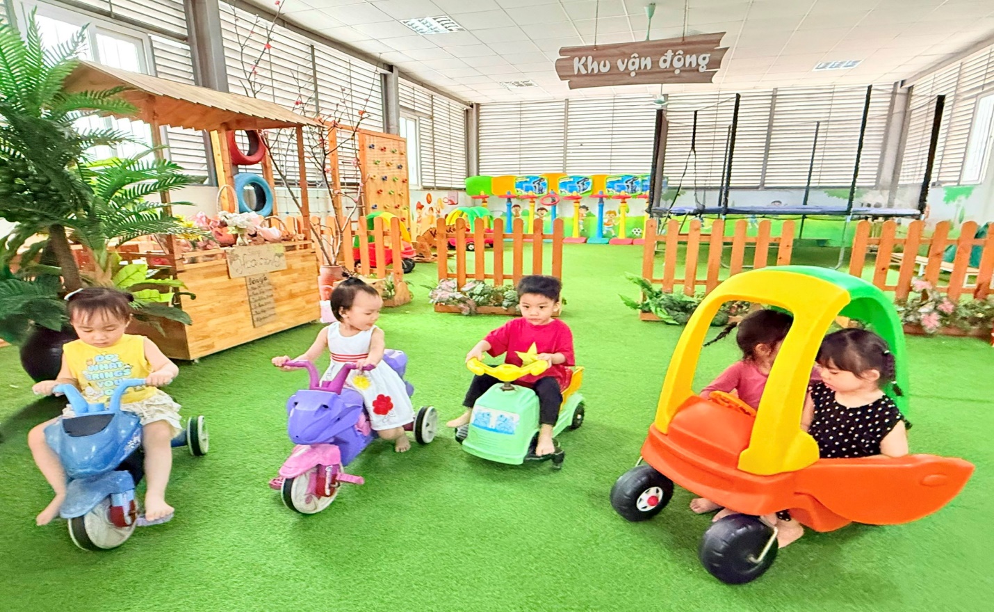Có những bạn nhỏ lại thích thú cùng nhau đẩy xe ô tô, học cách phối hợp đồng đội và chia sẻ đồ chơi với bạn bè. Những tiếng cười giòn tan vang vọng khắp khu vườn trải nghiệm, xua tan mọi mệt mỏi và chỉ còn lại niềm hạnh phúc thuần khiết.