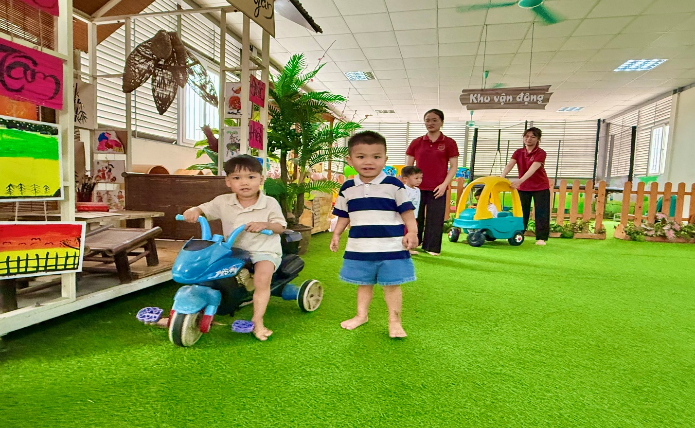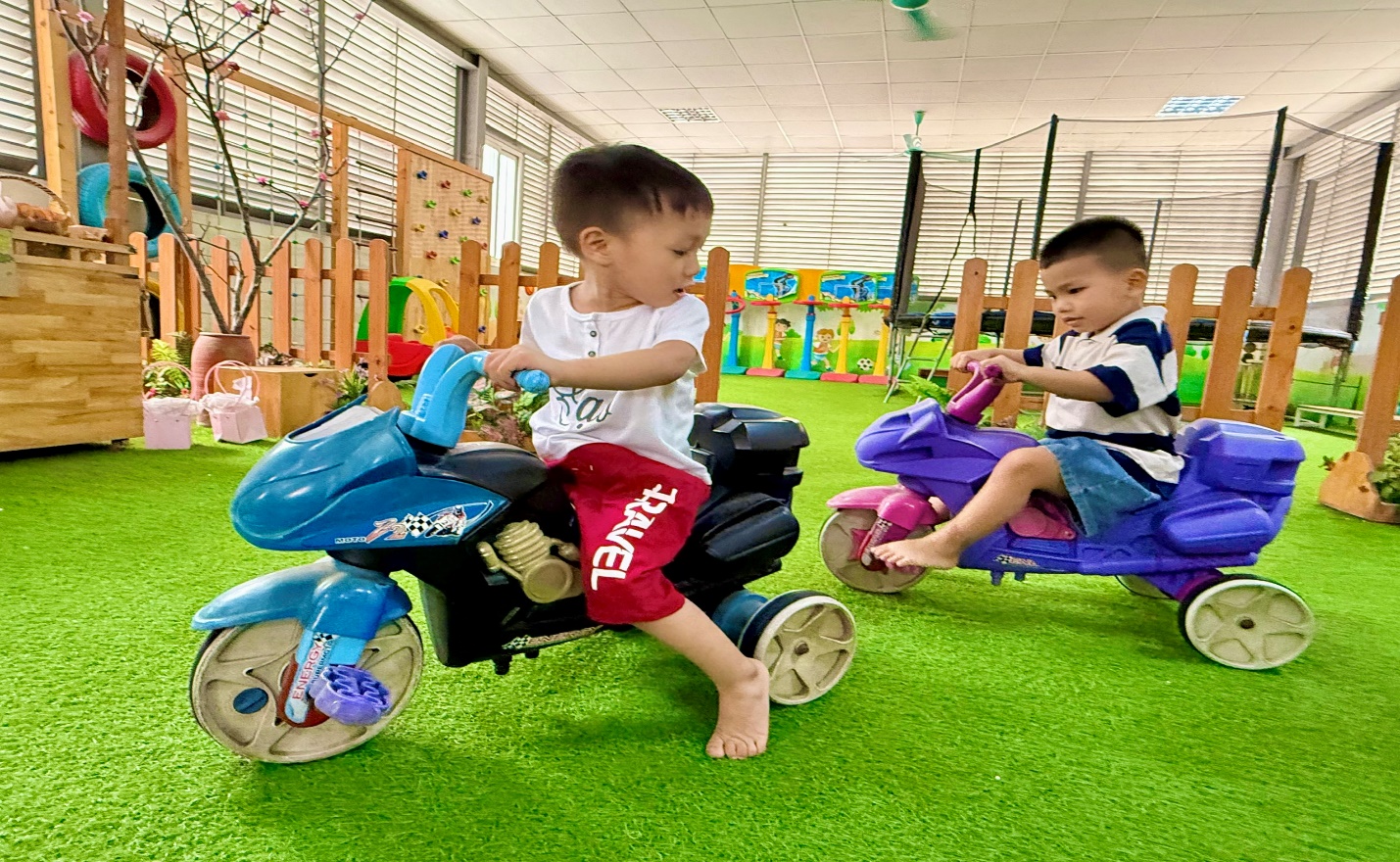 Đằng sau mỗi hoạt động vui chơi của các bé là sự quan sát tỉ mỉ và đồng hành tận tâm của các cô giáo lớp D2. Cô không chỉ là người hướng dẫn mà còn là người bạn lớn, cùng các con xây lâu đài cát, cùng cổ vũ khi con vững vàng trên chiếc xe đạp đầu tiên. Nhìn những gương mặt rạng rỡ, những đôi chân chạy nhảy tung tăng, chúng ta càng hiểu thêm giá trị của việc "Học qua chơi". Tại lớp D2, mỗi ngày đến trường không chỉ là một trang vở mới, mà thực sự là một ngày hội của niềm vui, nơi các con được tự do là chính mình và lớn khôn trong hạnh phúc.