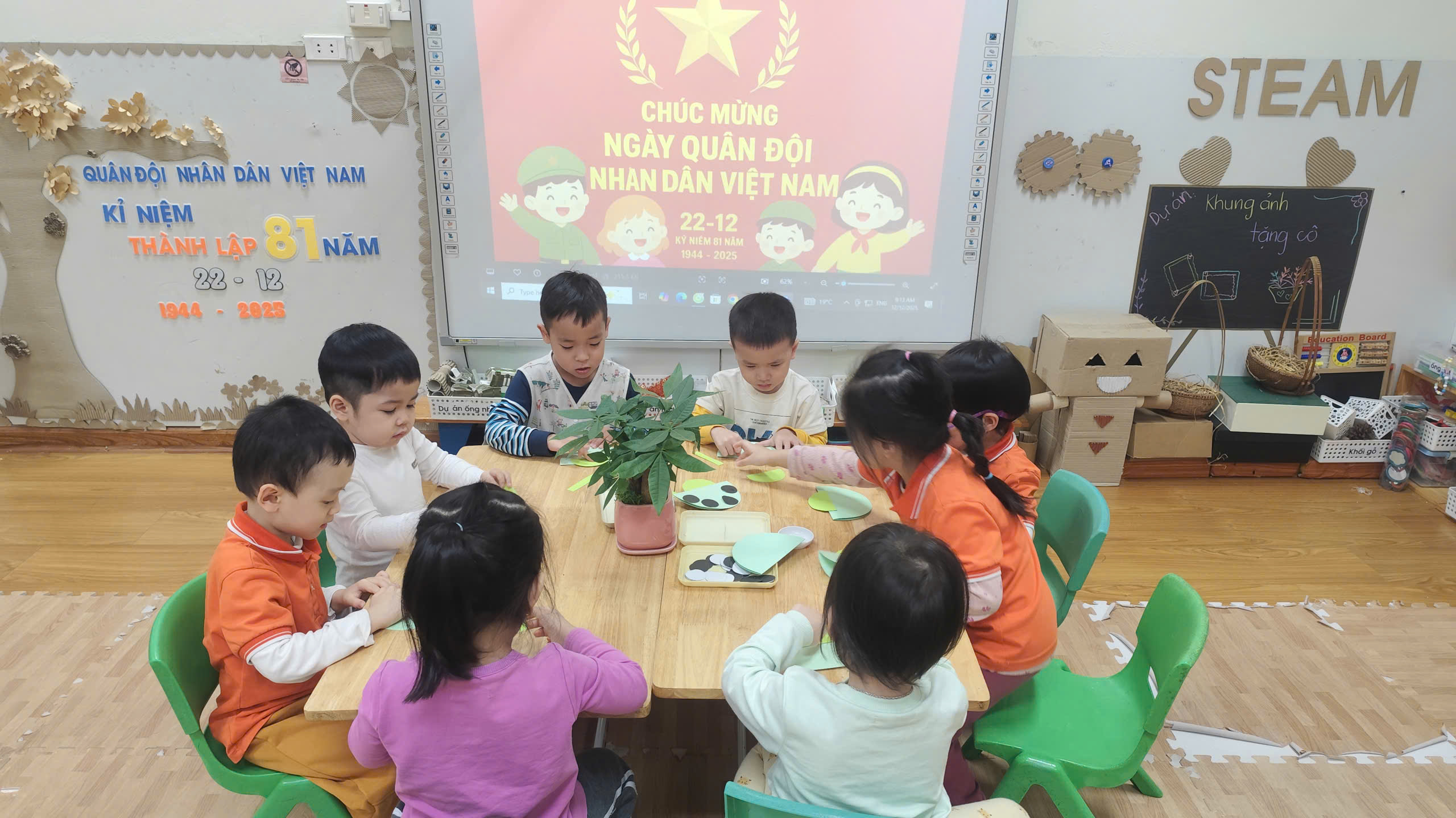 Tỉ mỉ cắt dán để tạo hình thân xe. Khéo léo dán những bánh xe tròn xoe. Tự hào khi cầm trên tay "chiến mã" do chính mình tạo ra. Mỗi chiếc xe tăng không chỉ mang màu xanh hy vọng mà còn chứa đựng sự tập trung, đôi mắt sáng ngời và niềm vui sướng khi hoàn thành sản phẩm. Nhìn những nụ cười rạng rỡ của các con bên tác phẩm của mình, các cô biết rằng các con đã có một kỷ niệm thật đẹp về ngày lễ truyền thống của dân tộc.