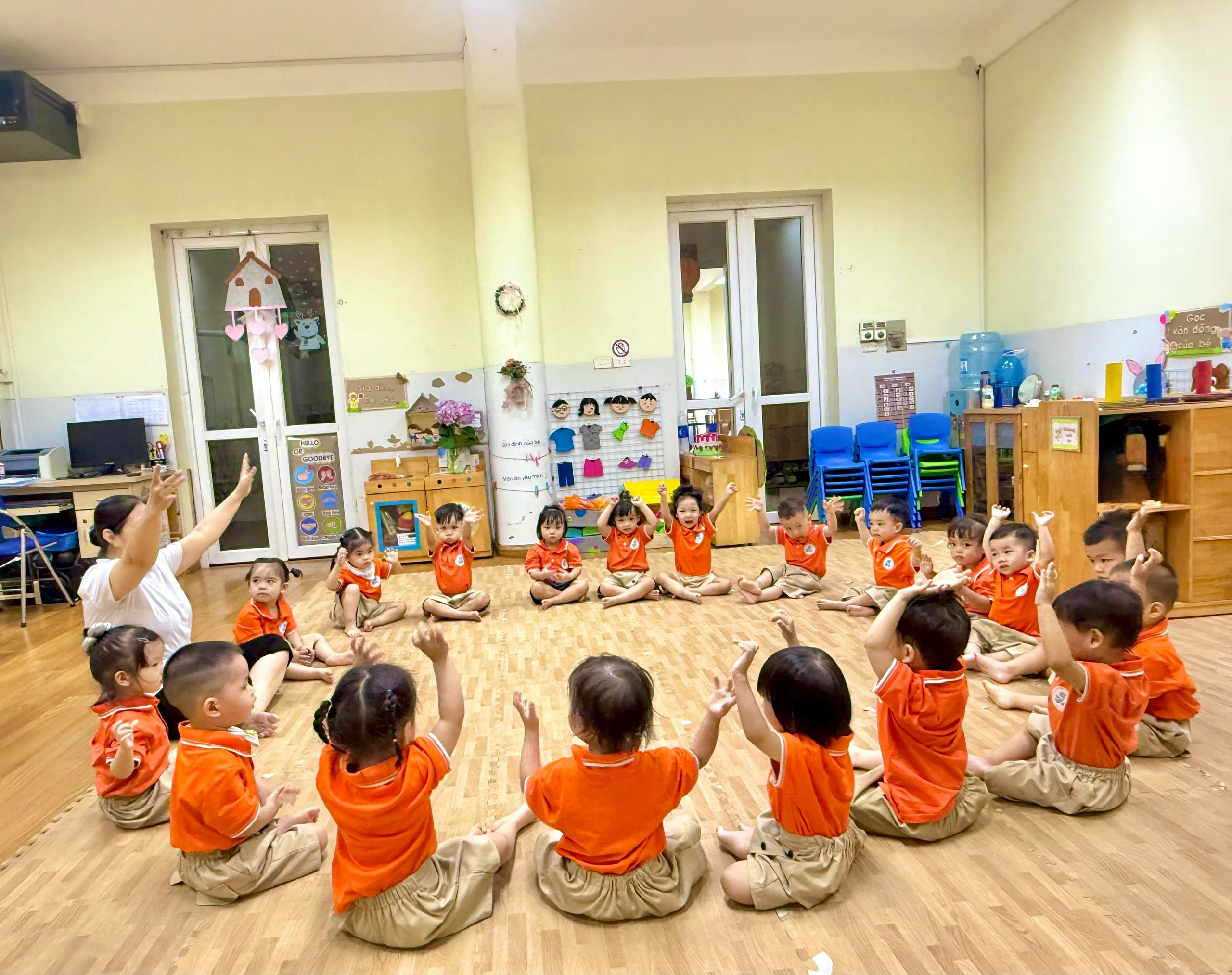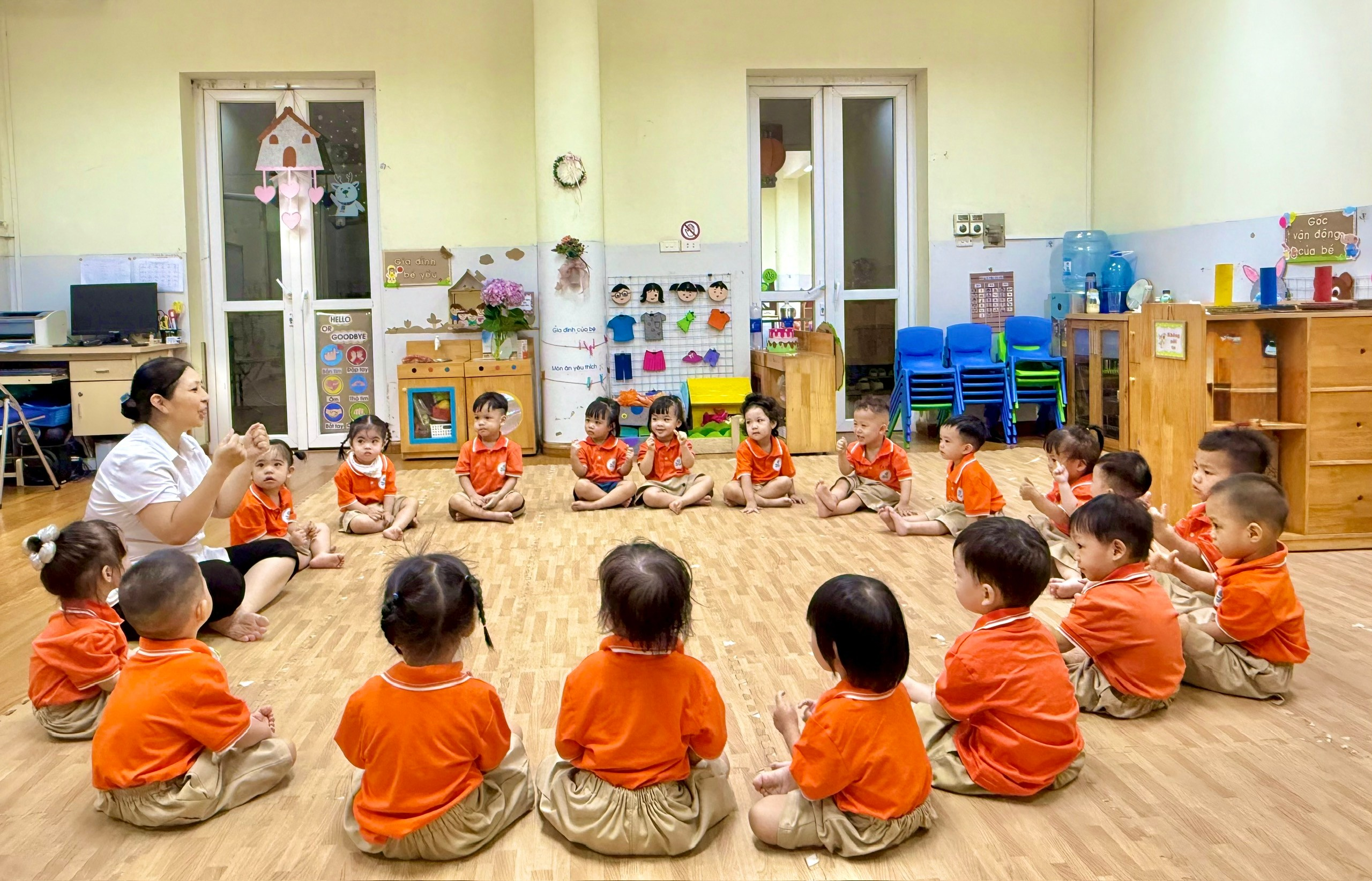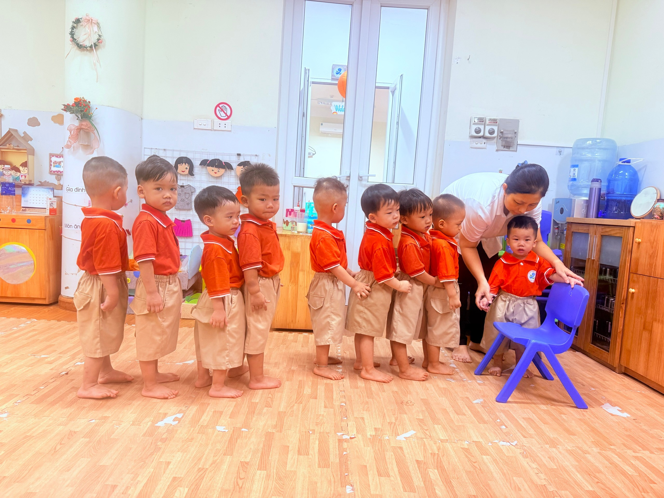 Tại lớp Nhà trẻ D2, các cô đã và đang tạo ra một "ngôi nhà" thứ hai, nơi tràn ngập sự ấm áp, bao dung và an toàn. Mỗi cái ôm vỗ về, mỗi lời thủ thỉ yêu thương, mỗi trò chơi ngộ nghĩnh đều là cách các cô giúp con dần làm quen, xoa dịu nỗi nhớ nhà và khám phá thế giới xung quanh. Đây là giai đoạn các bé bắt đầu làm quen với môi trường mới ngoài gia đình - nơi có cô giáo, bạn bè, và những thói quen sinh hoạt tập thể. Vì vậy, việc rèn nề nếp cho trẻ ngay từ đầu năm học đóng vai trò hết sức quan trọng, giúp trẻ phát triển tốt về thể chất, tinh thần và hình thành kỹ năng sống cơ bản.