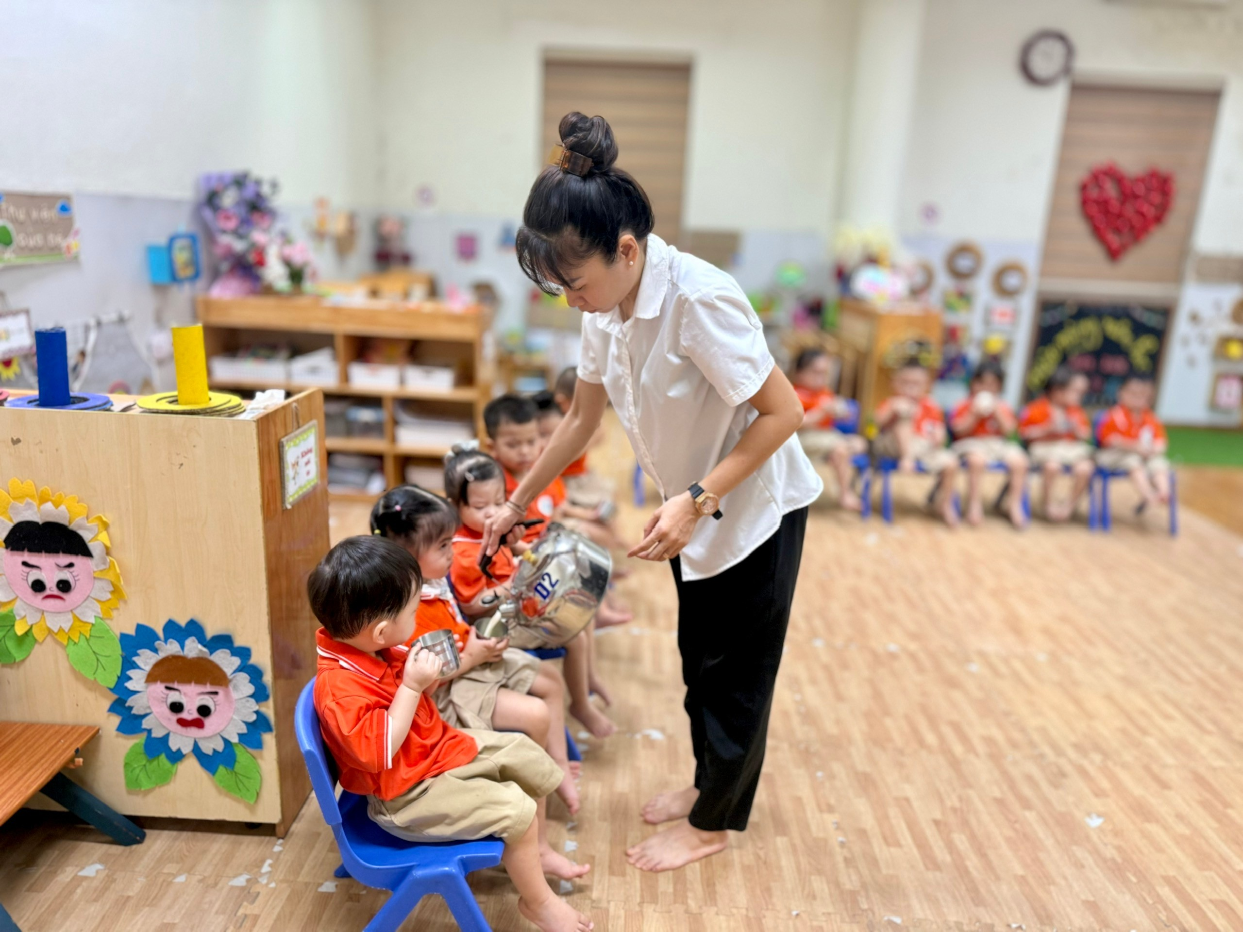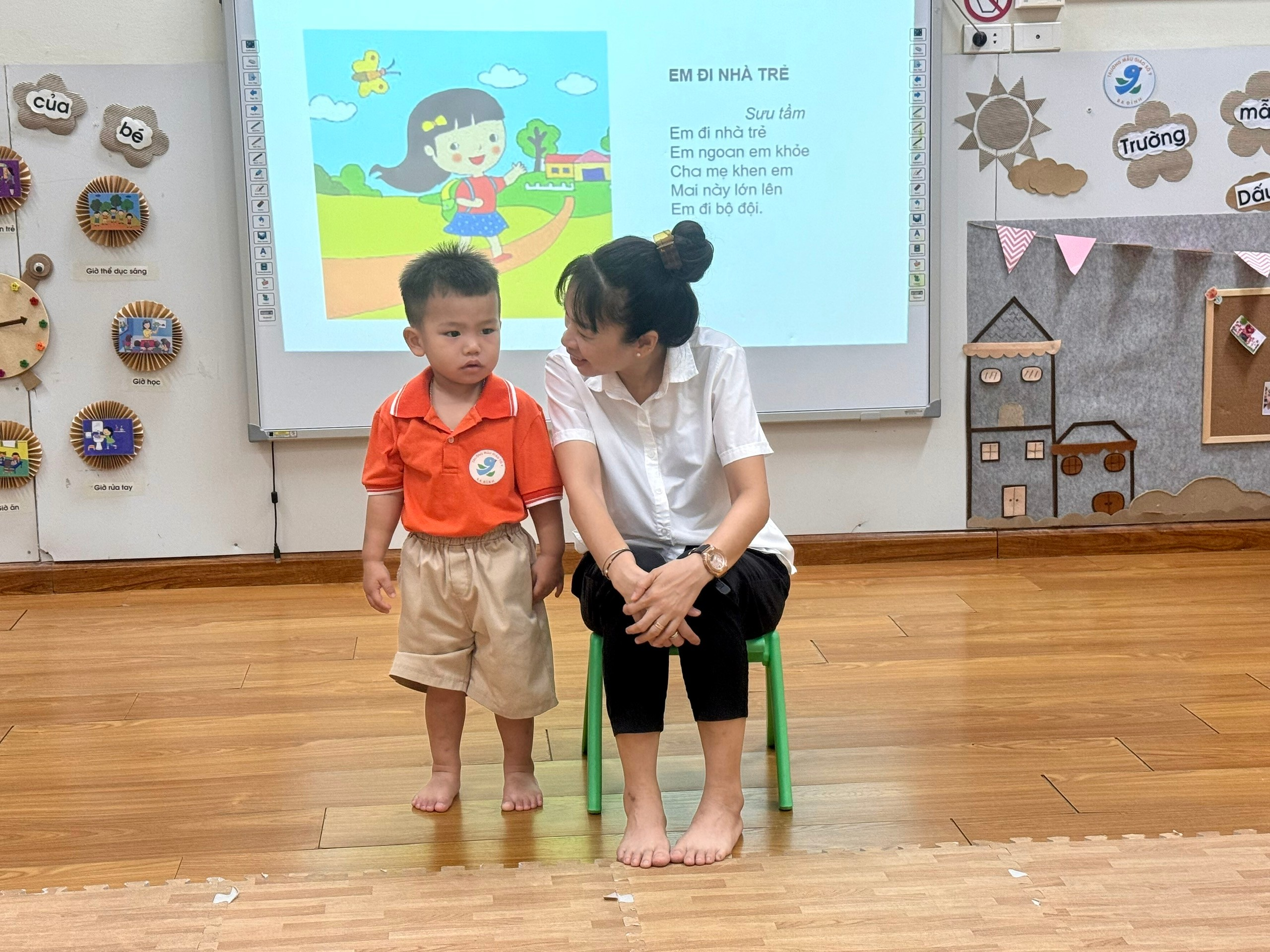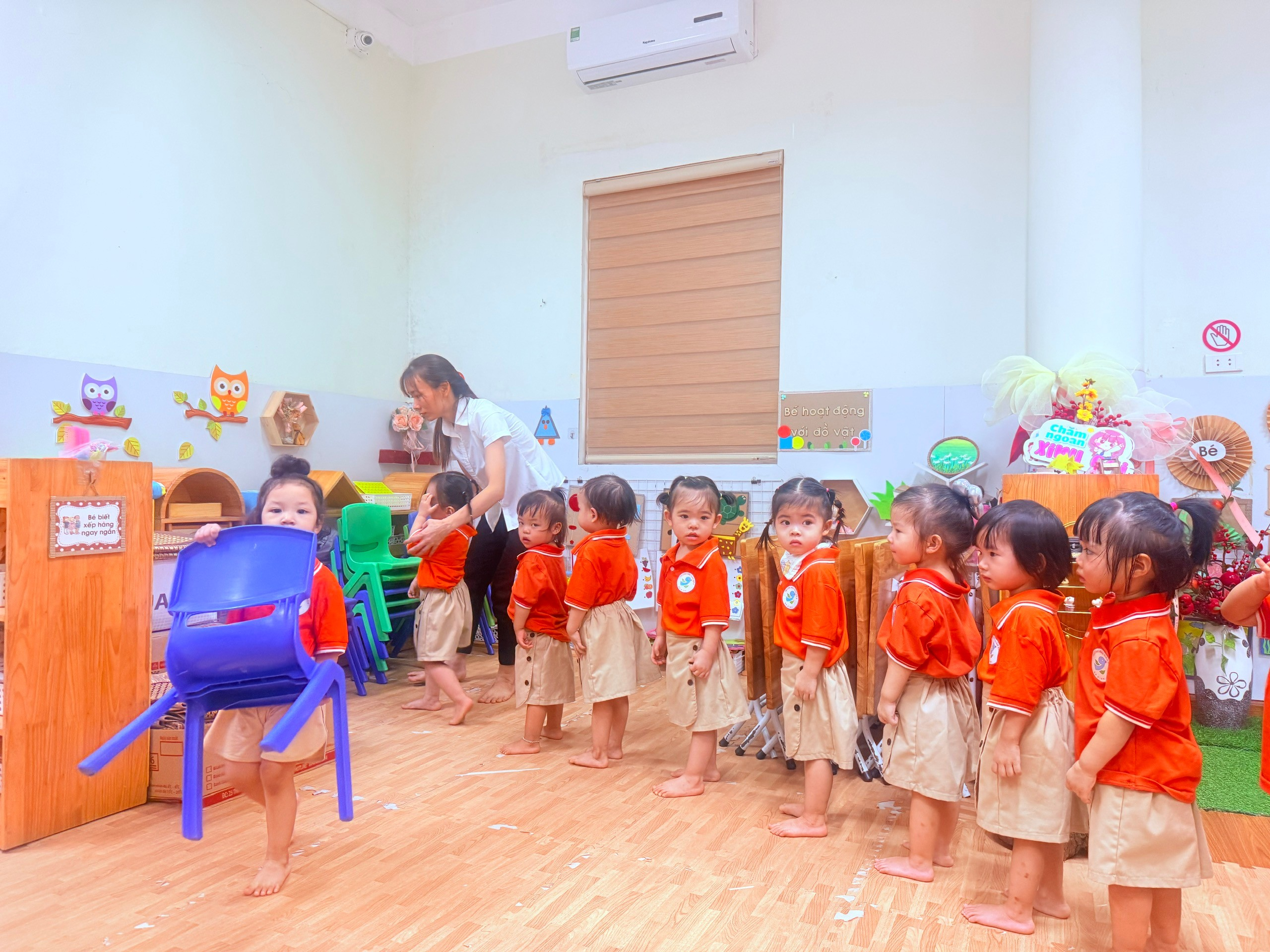 Tại lớp Nhà trẻ D2, các cô đã và đang tạo ra một "ngôi nhà" thứ hai, nơi tràn ngập sự ấm áp, bao dung và an toàn. Mỗi cái ôm vỗ về, mỗi lời thủ thỉ yêu thương, mỗi trò chơi ngộ nghĩnh đều là cách các cô giúp con dần làm quen, xoa dịu nỗi nhớ nhà và khám phá thế giới xung quanh. Đây là giai đoạn các bé bắt đầu làm quen với môi trường mới ngoài gia đình - nơi có cô giáo, bạn bè, và những thói quen sinh hoạt tập thể. Vì vậy, việc rèn nề nếp cho trẻ ngay từ đầu năm học đóng vai trò hết sức quan trọng, giúp trẻ phát triển tốt về thể chất, tinh thần và hình thành kỹ năng sống cơ bản.