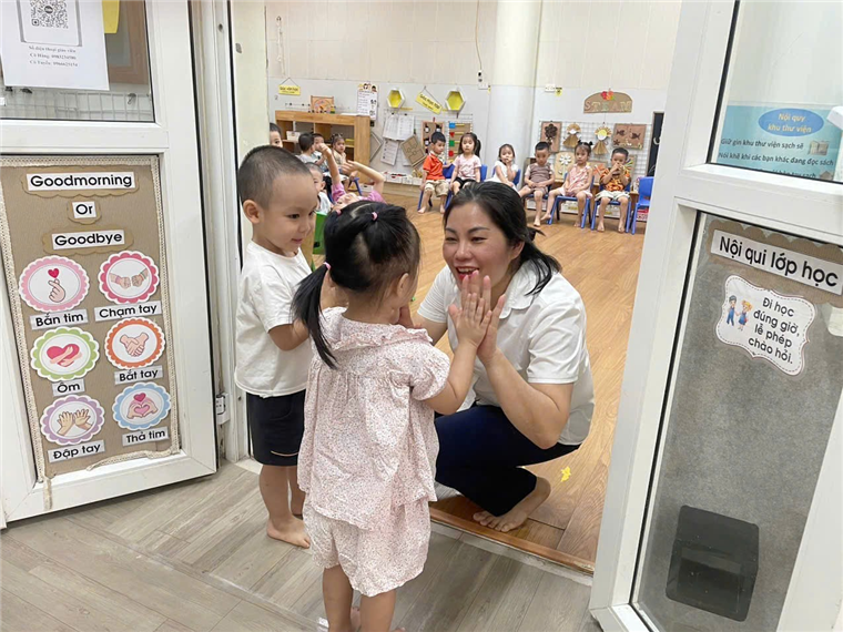 Các con đến lớp chào các cô