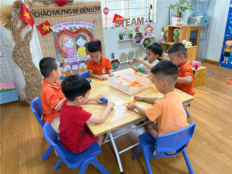 Sau những phút đầu làm quen nề nếp, các bé nhanh chóng bước vào giờ chơi tự do với các góc hoạt động: chơi góc, vui chơi trò chơi, chụp ảnh cùng cô và các bạn… Trẻ hào hứng chia sẻ với cô giáo và các bạn những kỉ niệm của kì nghỉ hè, được cùng nhau vui chơi, tham gia các hoạt động ở lớp. Bạn nào cùng vui vẻ, hào hứng .
