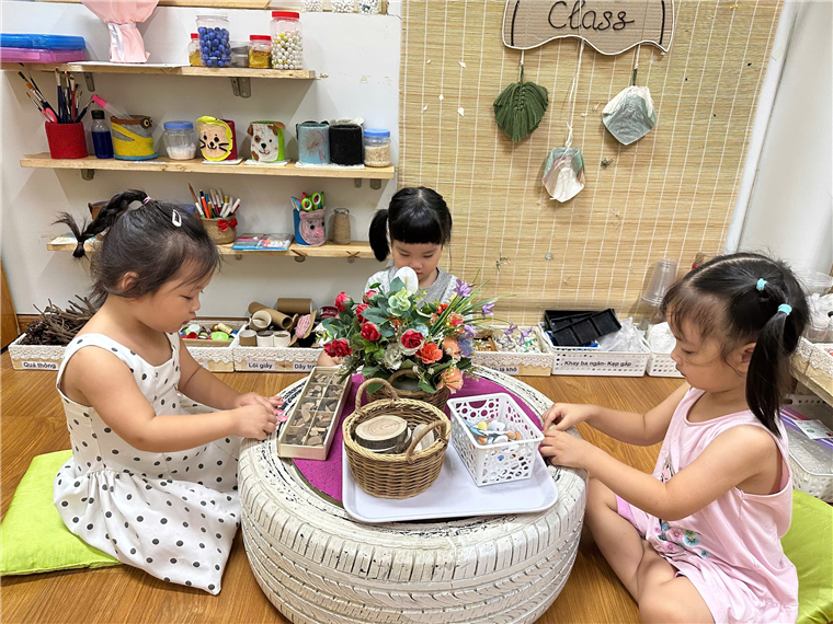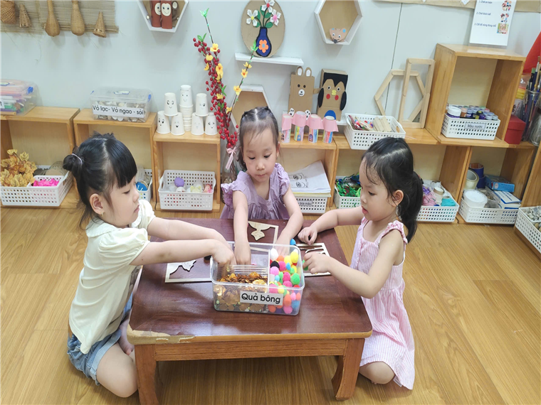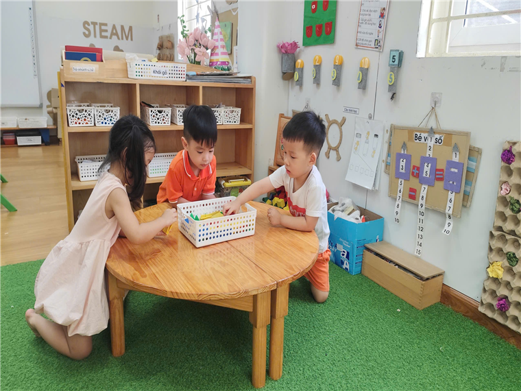 Hình ảnh các con được học tập, vui chơi bên các cô và các bạn