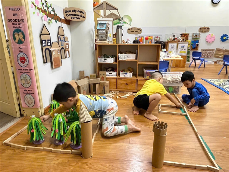 Các kỹ sư nhí lớp B2 đang hăng say xây dựng.