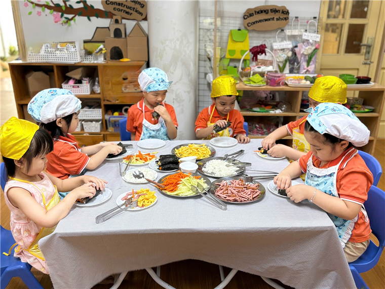 Ở góc nhà hàng các bé hóa thân thành bác những đầu bếp tài ba để chế biến những món ăn hấp dẫn. Đây là nơi trẻ học cách giao tiếp, thể hiện cảm xúc, giải quyết tình huống và hiểu hơn về các mối quan hệ xã hội.