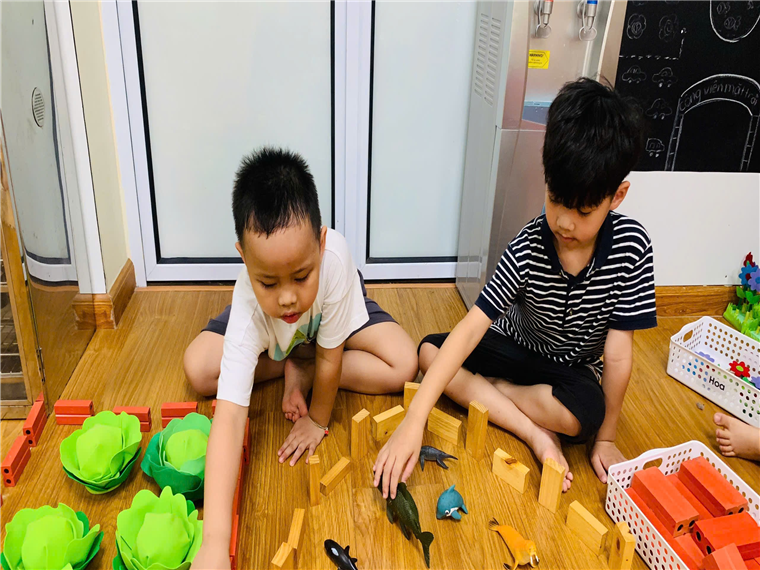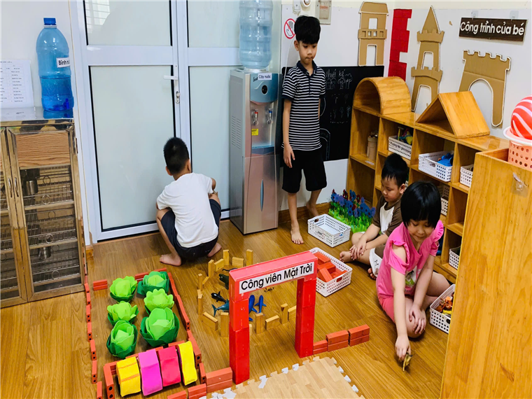 Tại góc Xây dựng, những kỹ sư tí hon đang miệt mài lắp ghép những viên gạch đủ hình dạng và kích thước, tạo nên những ngôi nhà cao tầng, những cây cầu vững chãi hay thậm chí cả một khu vườn cổ tích. Đôi bàn tay nhỏ xíu thoăn thoắt, đôi mắt sáng ngời thể hiện sự tập trung cao độ và niềm tự hào khi công trình dần hoàn thiện. Qua hoạt động này, các bé không chỉ rèn luyện sự khéo léo của đôi tay, phát triển tư duy không gian mà còn học được cách làm việc nhóm, chia sẻ ý tưởng và tôn trọng sản phẩm của bạn.