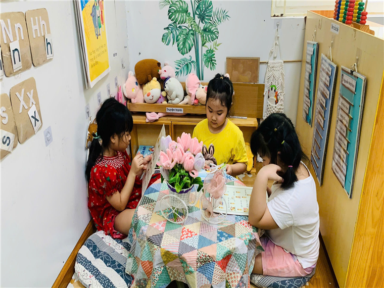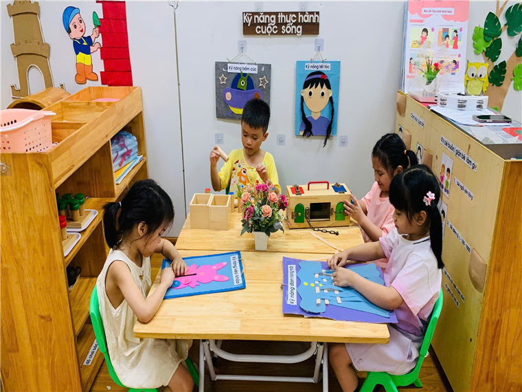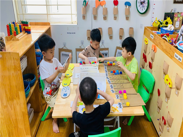 Không kém phần hấp dẫn là góc Học tập - Khám phá. Tại đây, các bé được làm quen với những con số, chữ cái qua những trò chơi thú vị. Những thí nghiệm khoa học đơn giản, những câu đố vui nhộn khơi gợi sự tò mò và ham học hỏi của các bé. Qua đó, các bé dần hình thành những kiến thức cơ bản về thế giới xung quanh, phát triển tư duy logic và khả năng giải quyết vấn đề.