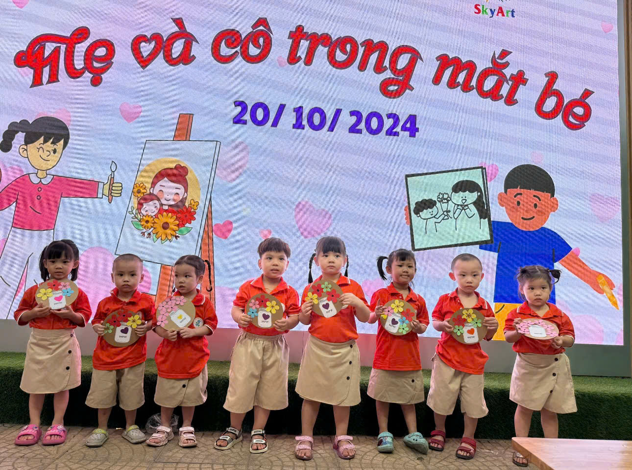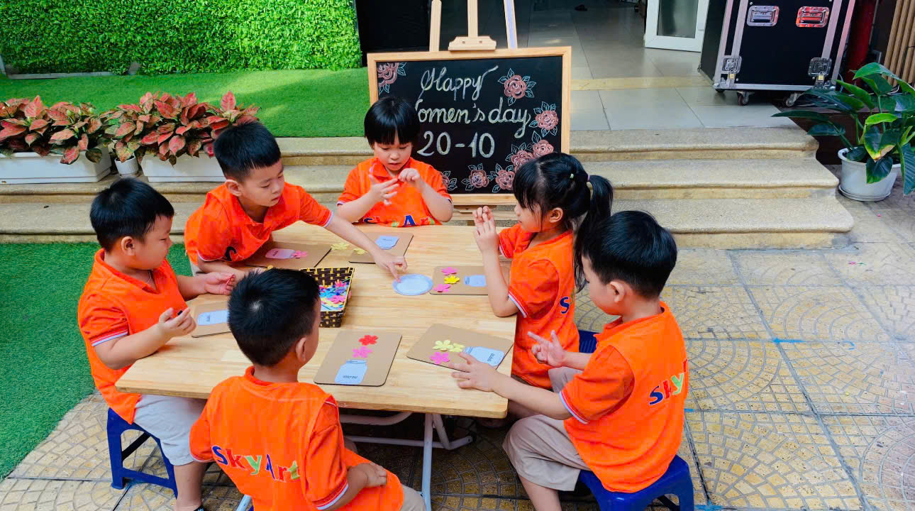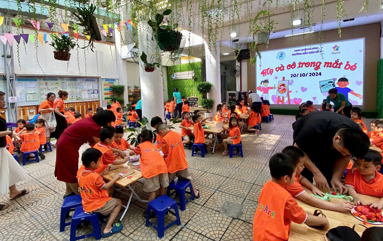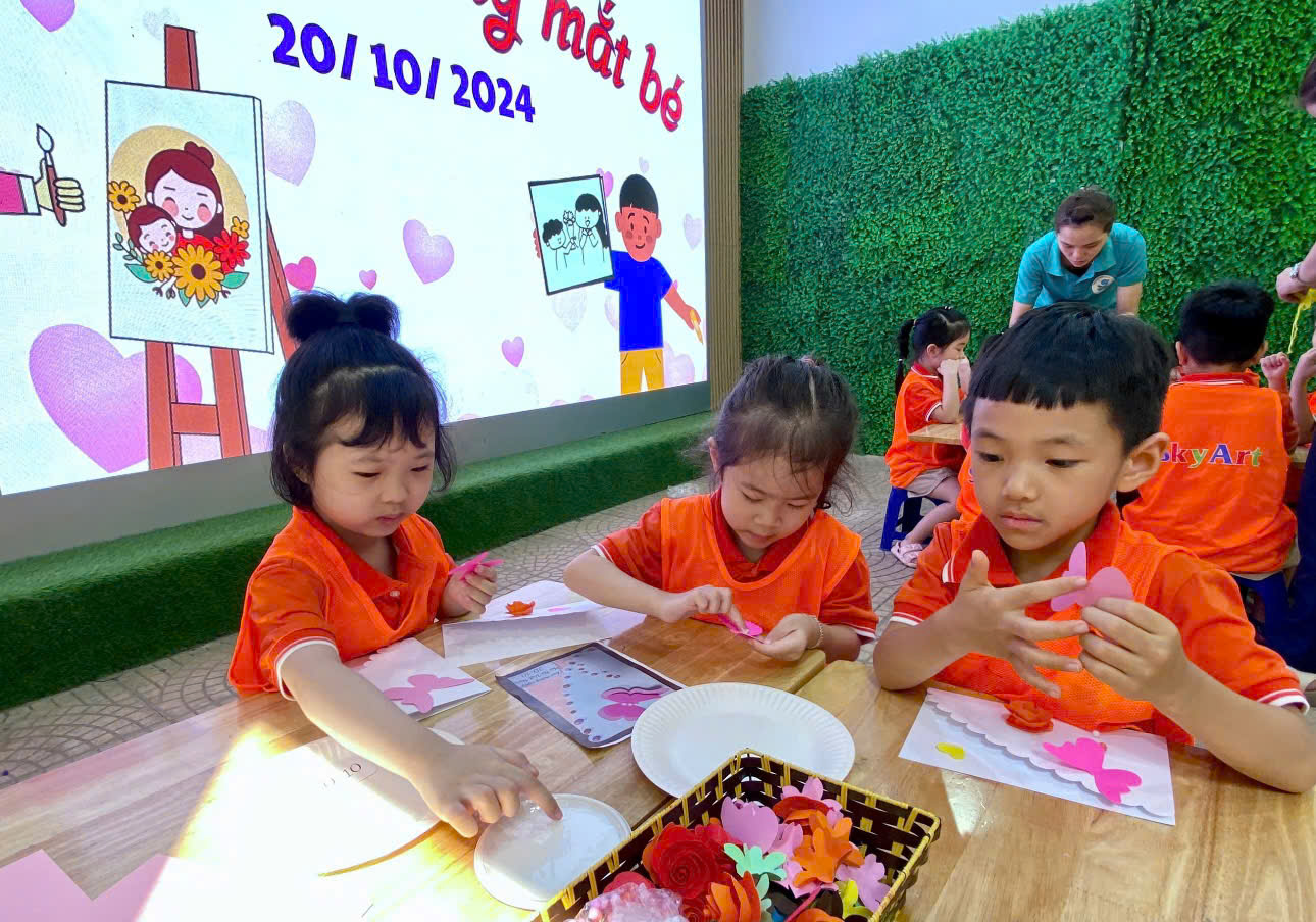 Trường Mẫu giáo số 9 kết hợp với trung tâm nghệ thuật Sky Art đã tạo ra một sân chơi giúp cho trẻ sáng tạo ra những món quà ý nghĩa chứa đựng tình yêu dành cho mẹ và cô.